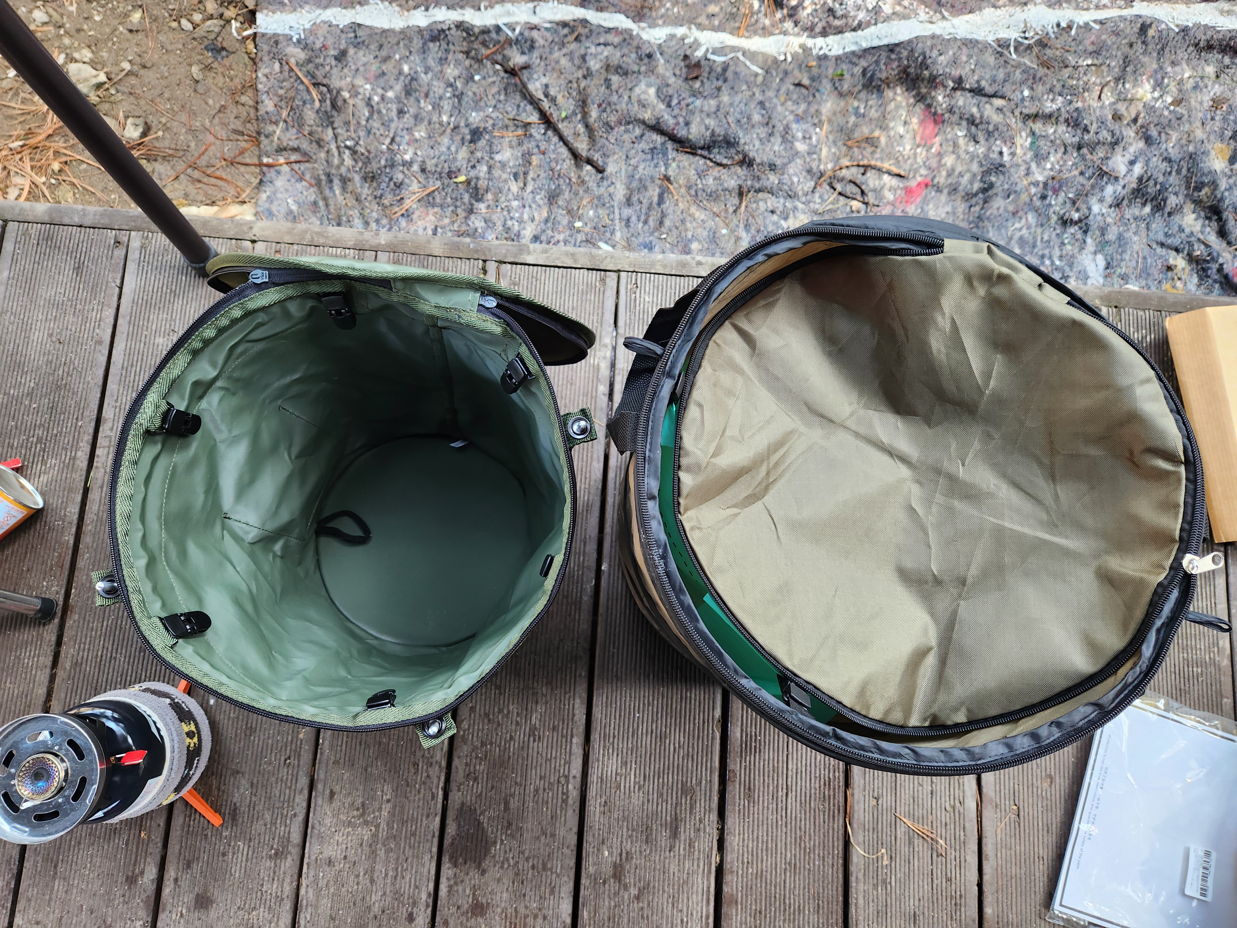 가장 궁금하실 수 있는 부분으로 다이소 캠핑용 쓰레기통과 비교샷입니다.