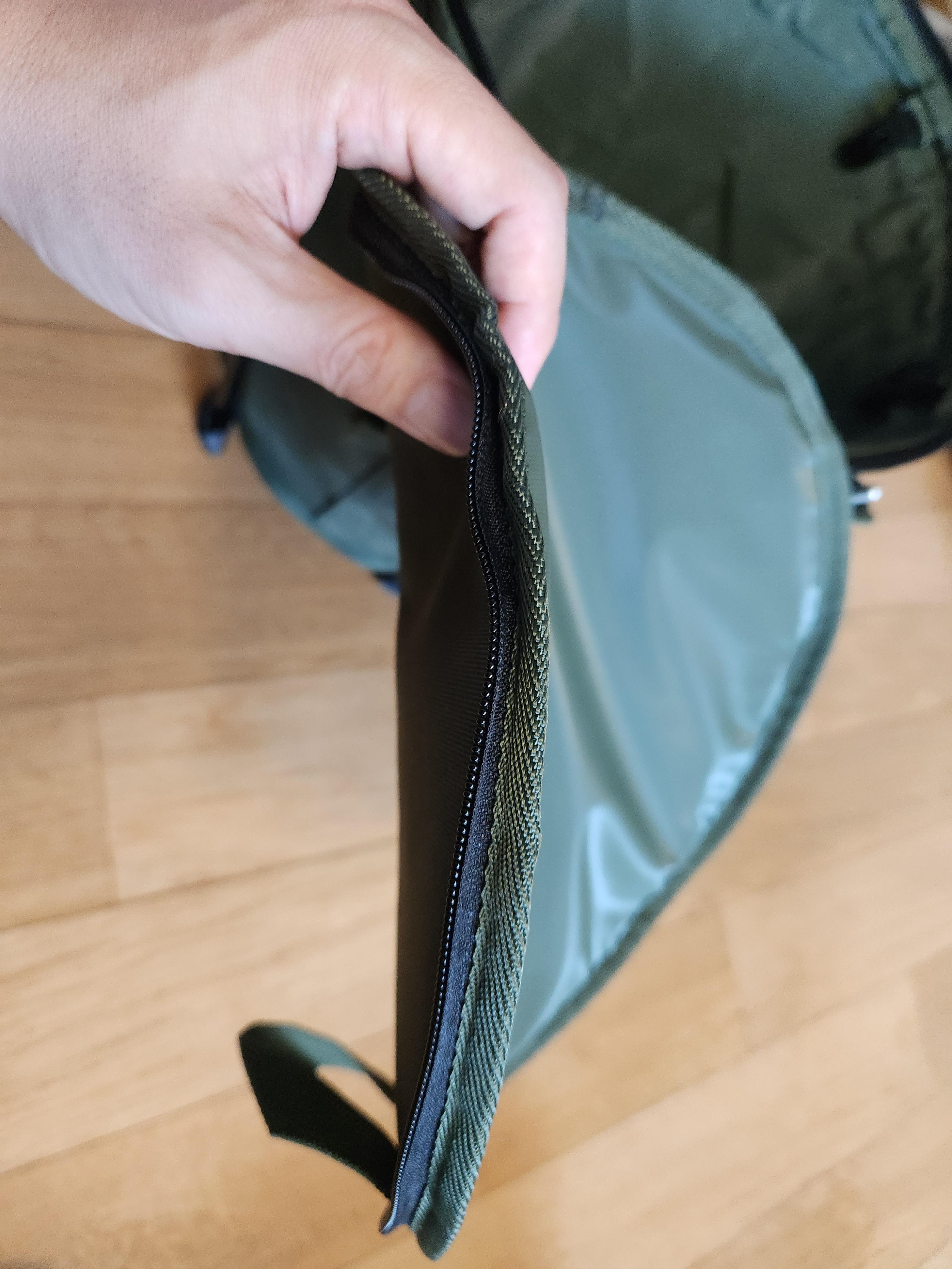 지퍼 부분은 별도의 고리가 달려있어 사용하기 편리하고 옆쪽에는 손잡이도 달려있어 이동이 좀 더 수월할 수 있습니다.