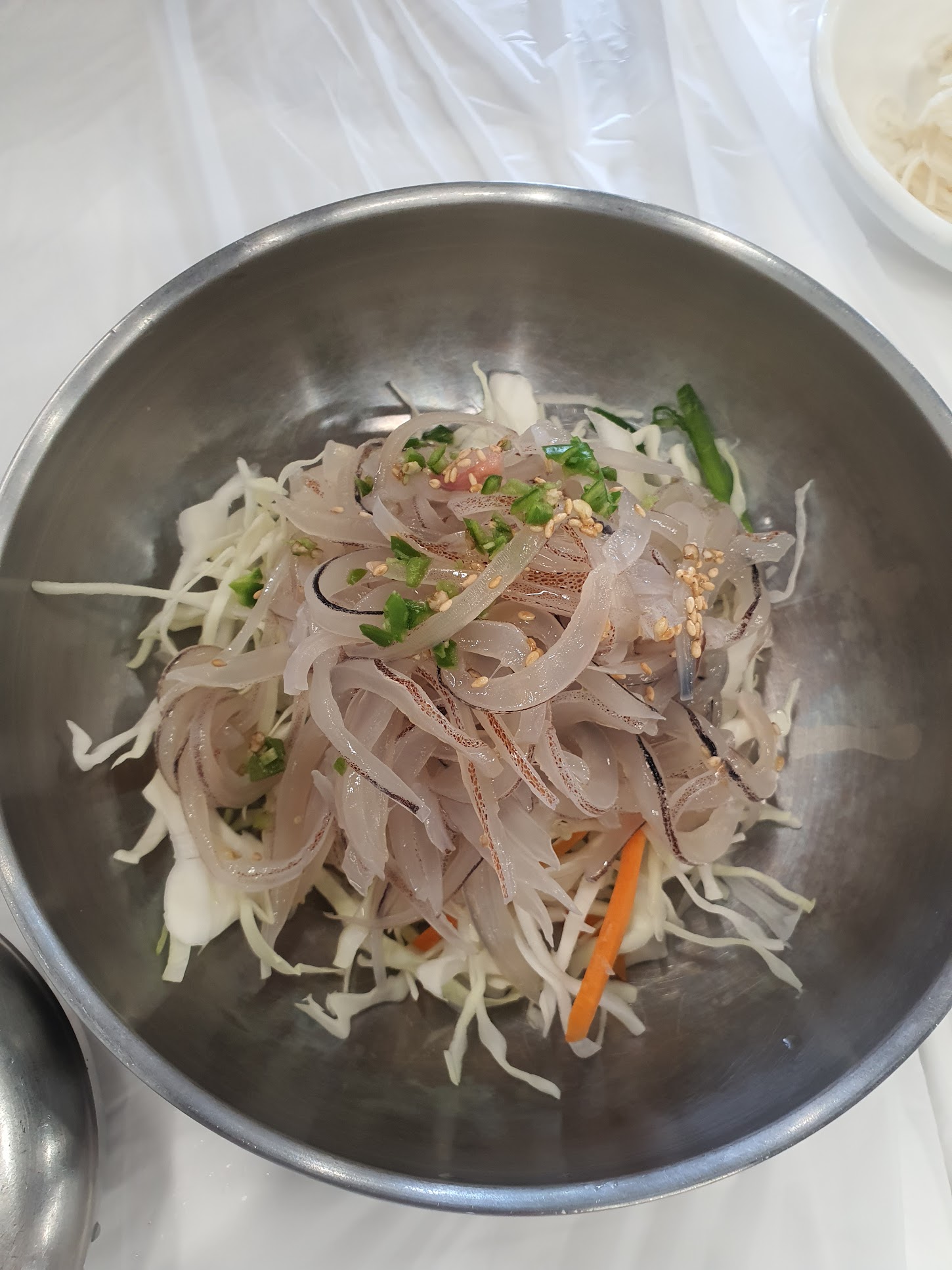 육수는 살얼음 상태로 가져다주시고 회에 부어서 드시면 됩니다. 물회 맛은 아주 괜찮습니다. 참고하세요.