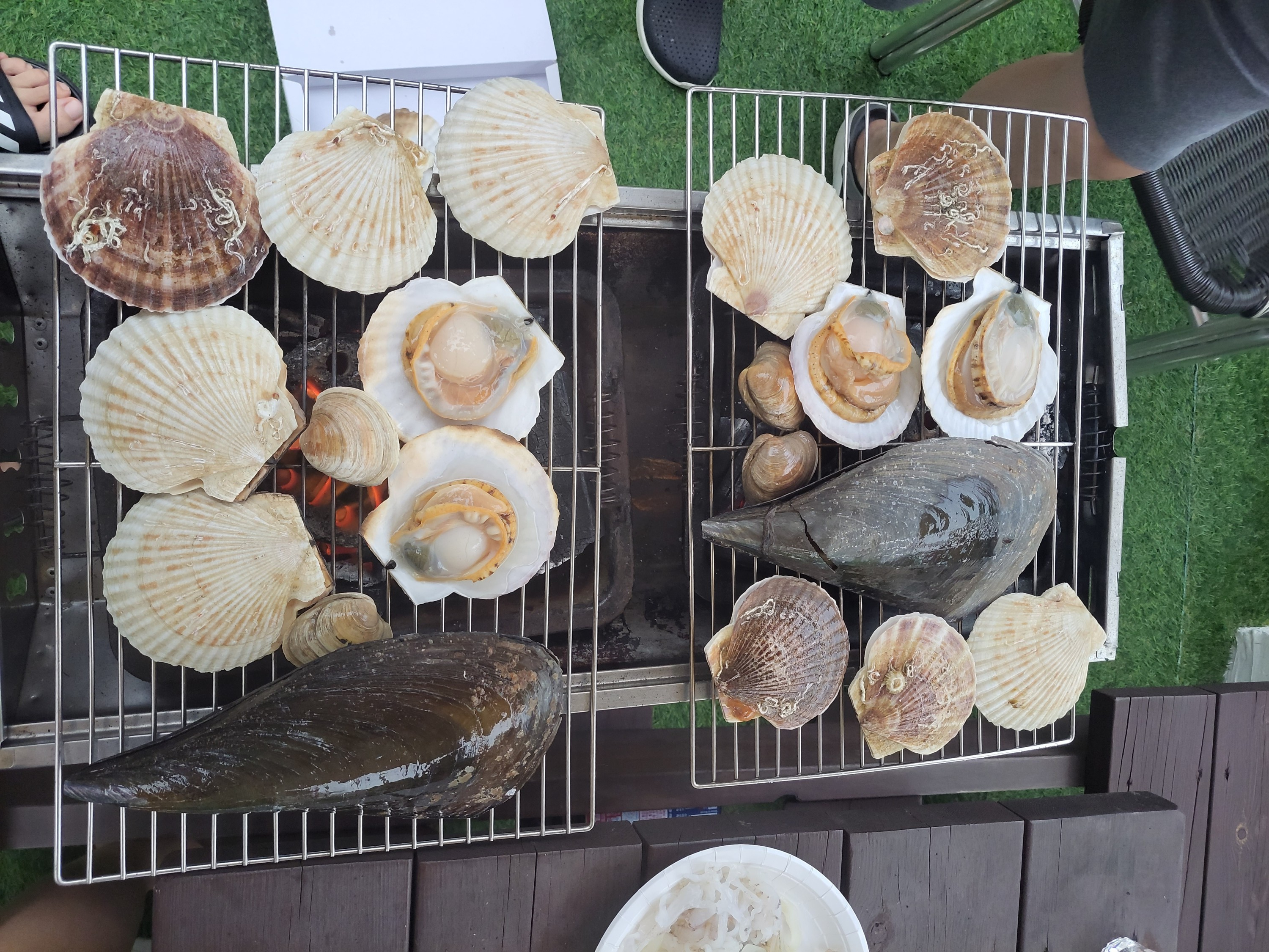 지내는 동안 키조개와 가리비도 구워 먹었습니다.