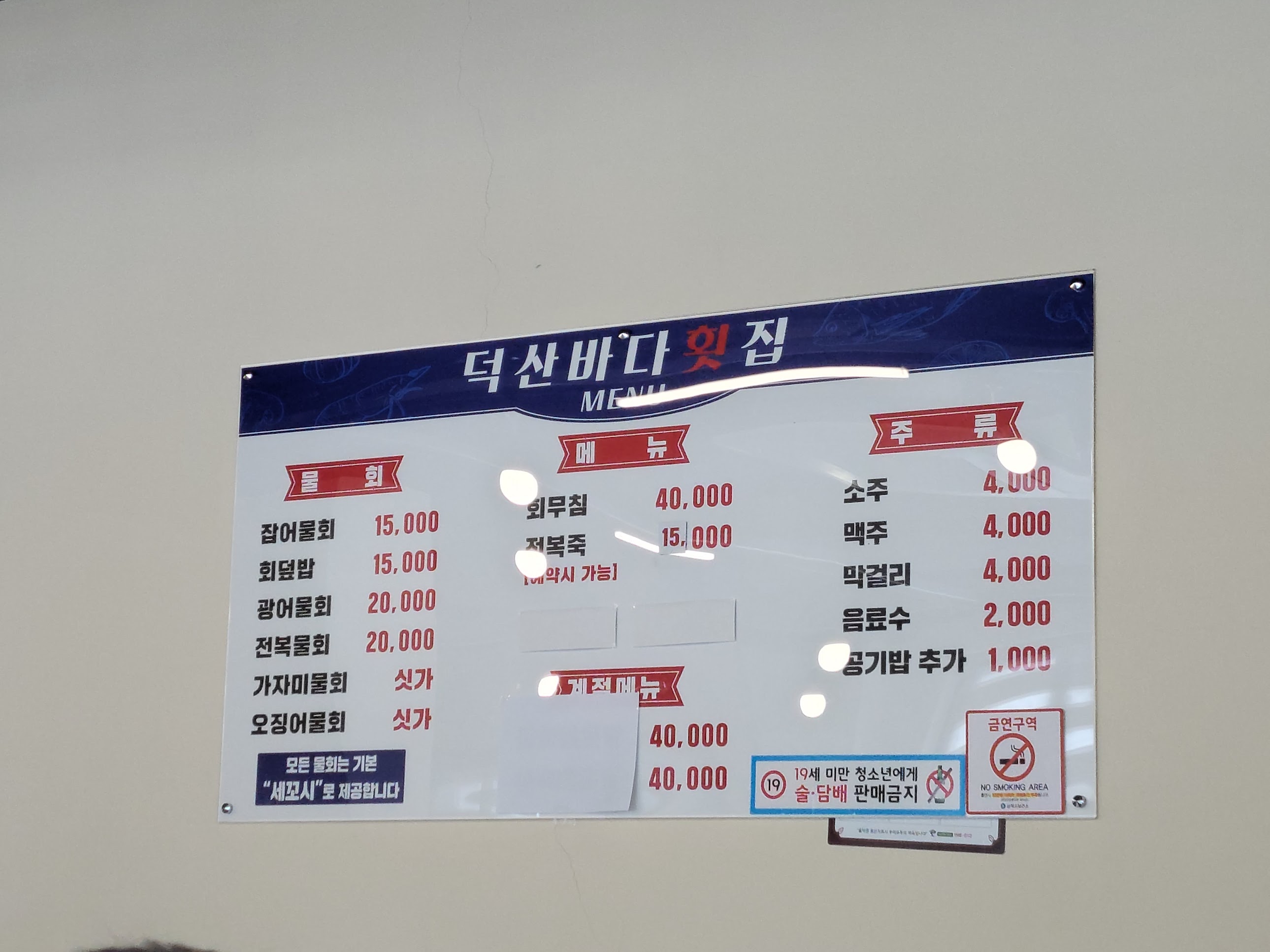 지내는 동안 방문했던 덕산 바다횟집입니다. 민박집에서는 10분정도 걸어서 가면 됩니다.