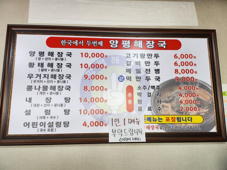 여러 메뉴들이 있지만 대부분 양평해장국을 드시고 계셨습니다.