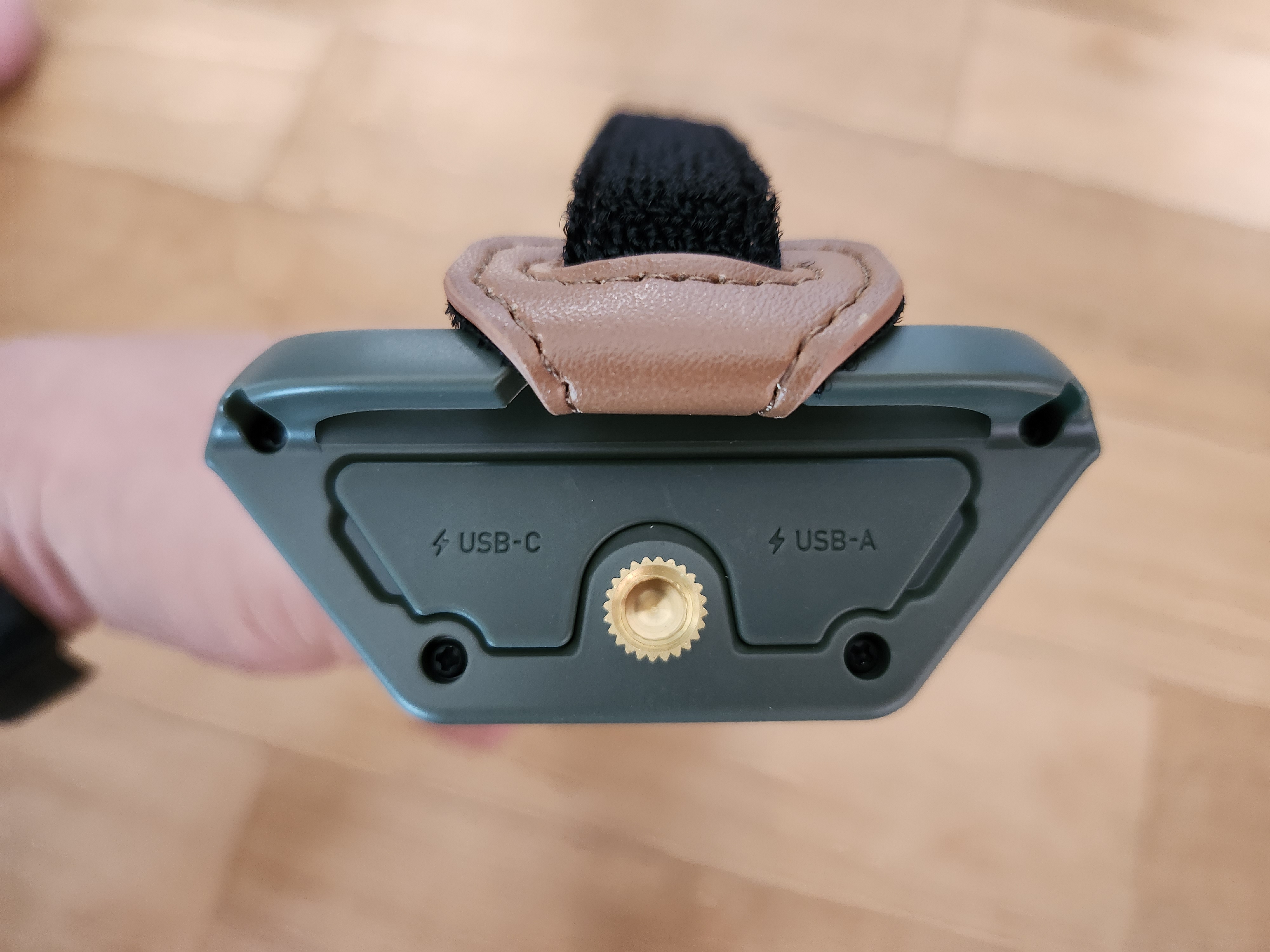 구성품으로는 렌턴가방, 렌턴 본체, 가죽 스트렙, 카라비너 2개, C타입 케이블을 제공하고 있습니다.