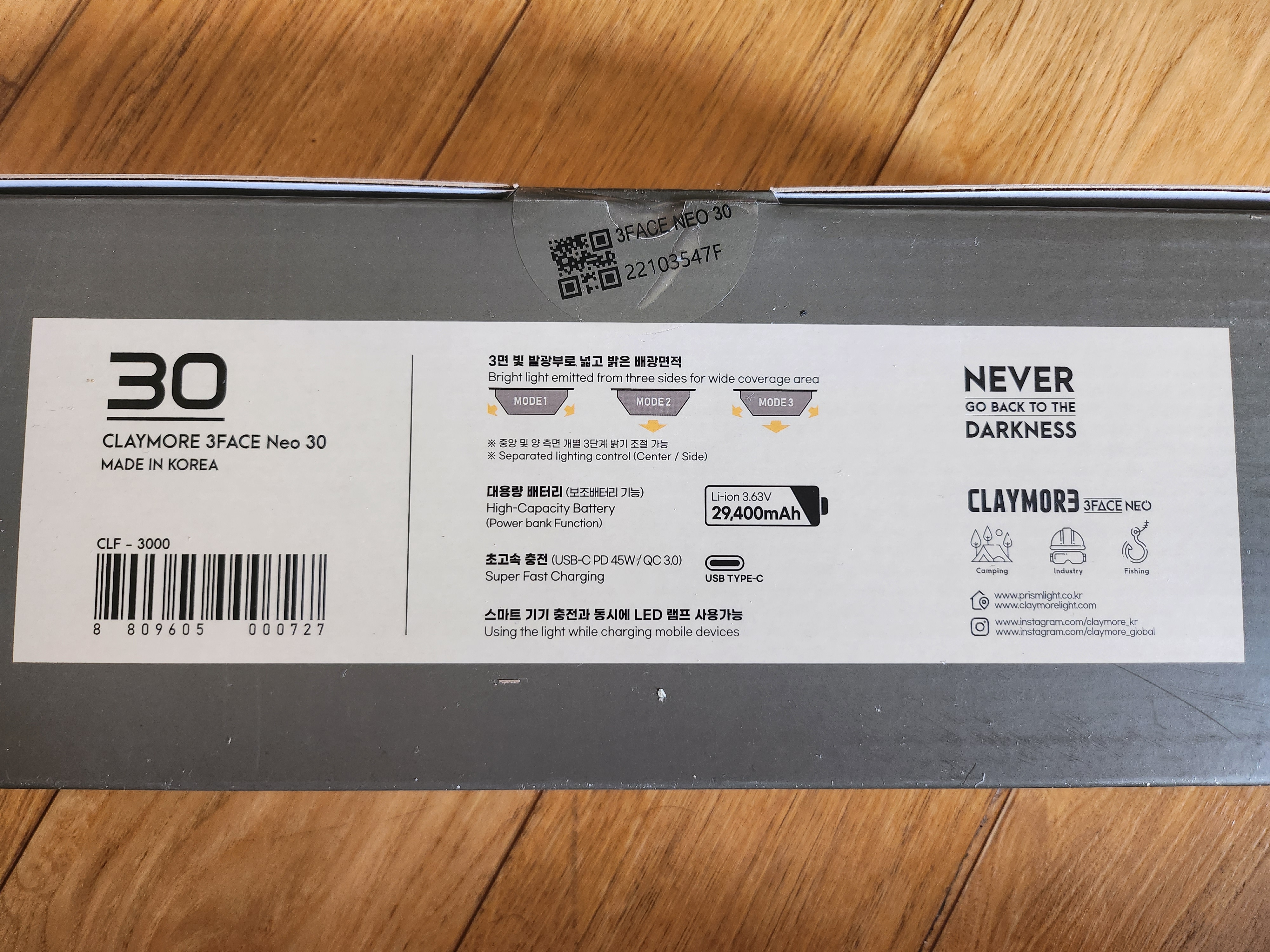 이번에는 얼마 전 구입한 캠핑 렌턴 크레모아 3 페이스 네오 30 제품을 리뷰해보도록 할게요.