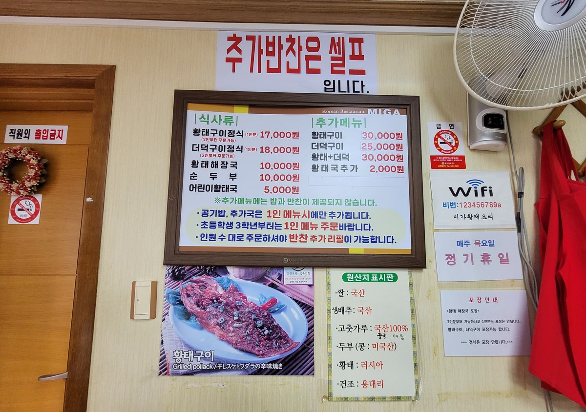 황태구이나 더덕구이는 2인분 부터 주문이 가능하다고 쓰여있는데 2인 이상 주문하면 황태구이1, 더덕구이 1로 주문이 가능했습니다.