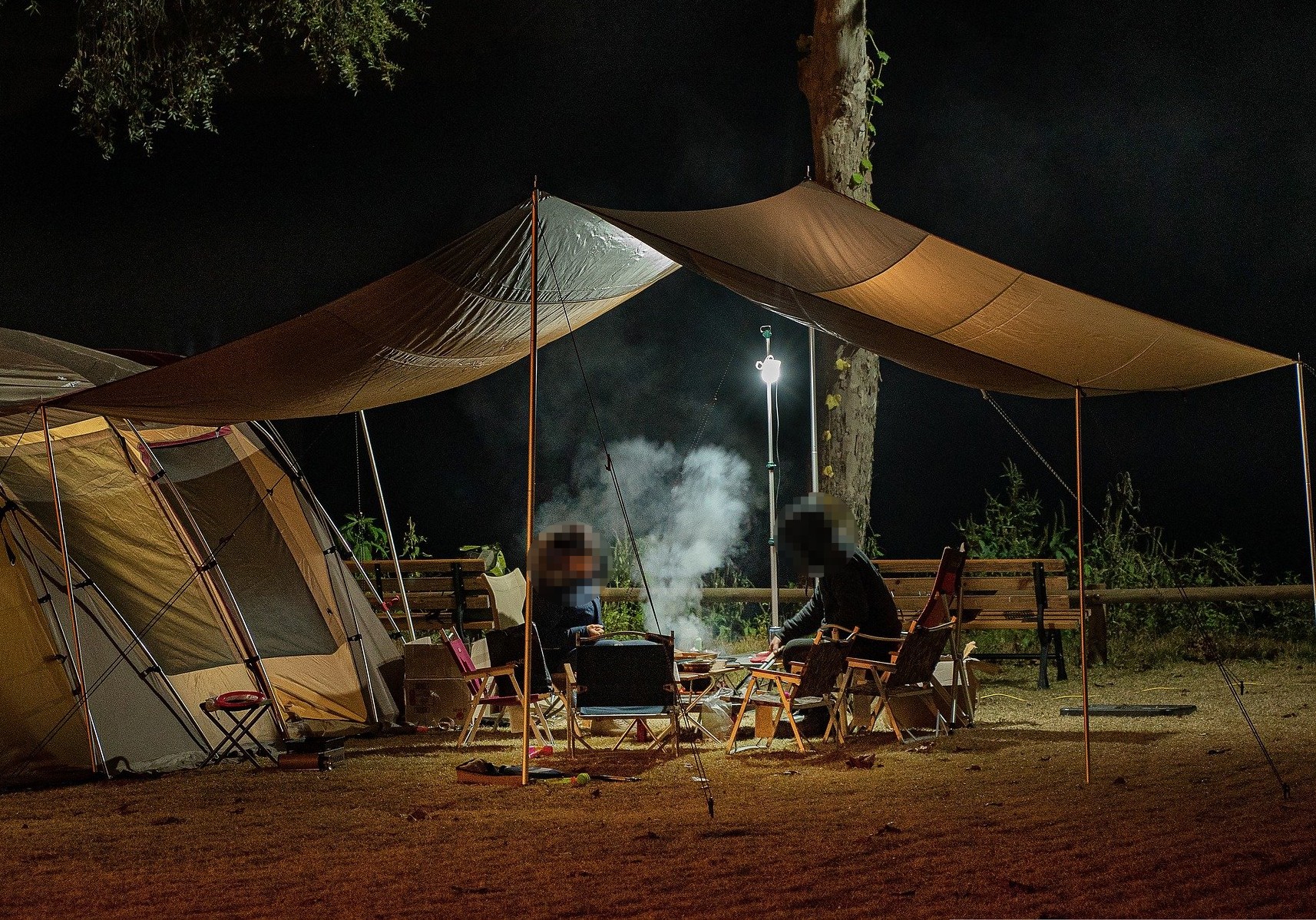 5. 야영장, 노지 또는 산 등지에서 비박 등을 즐기는 활동.