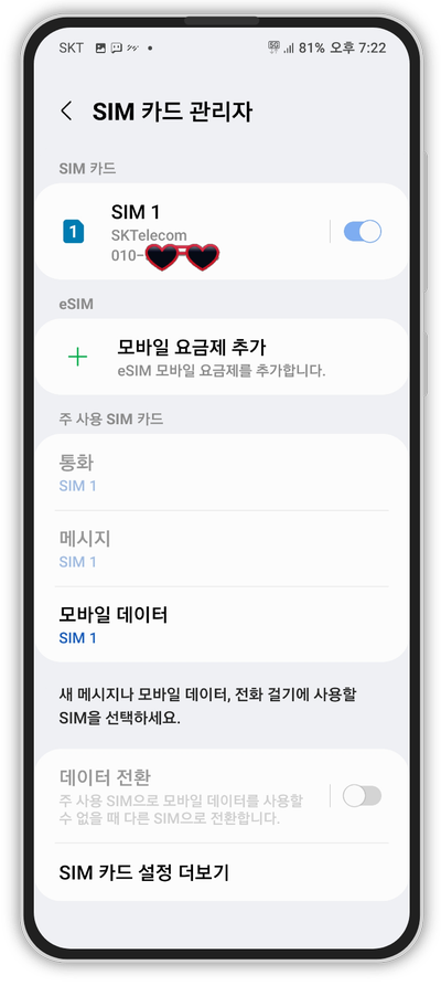 ② SIM 카드 관리자 클릭