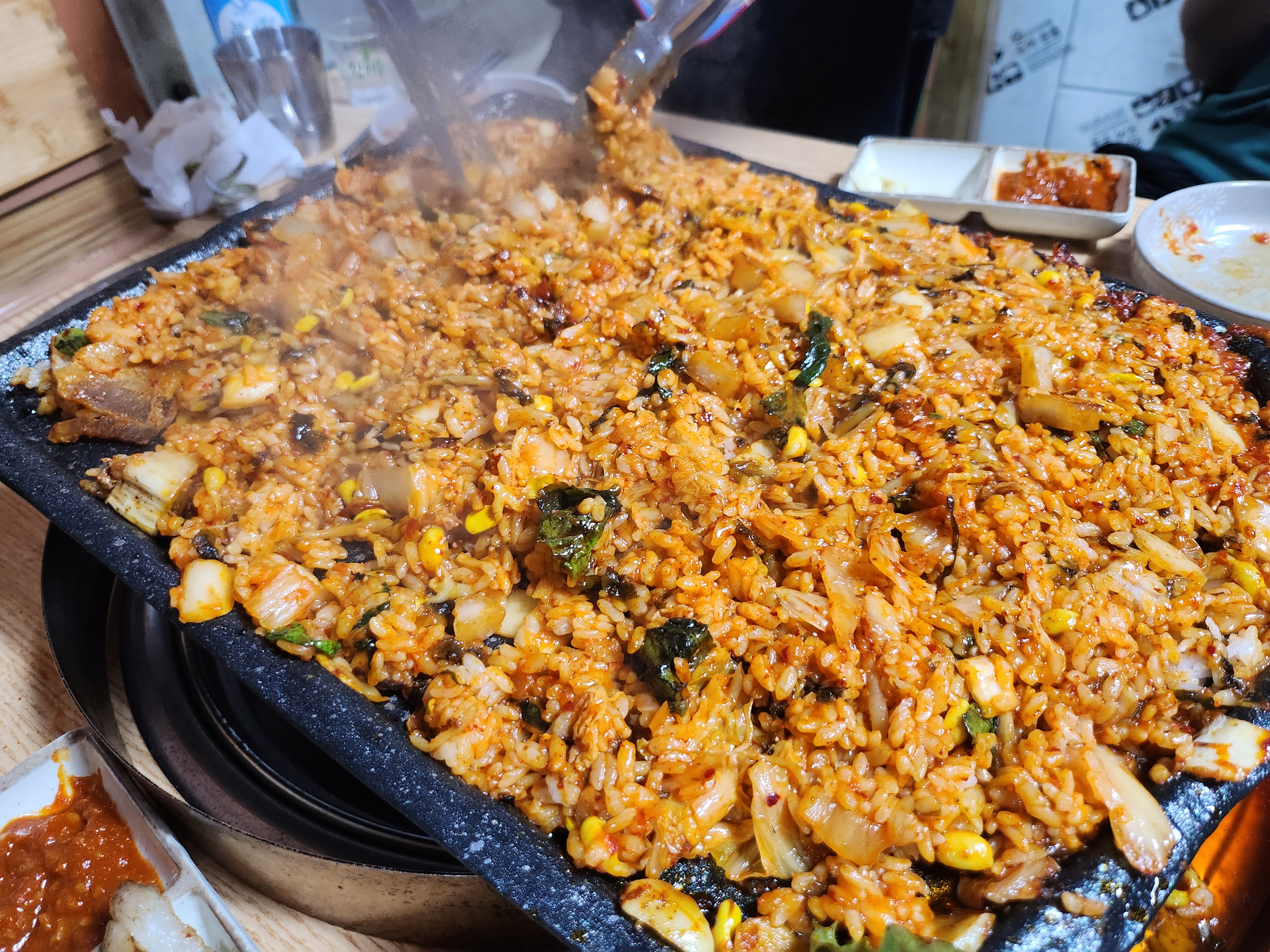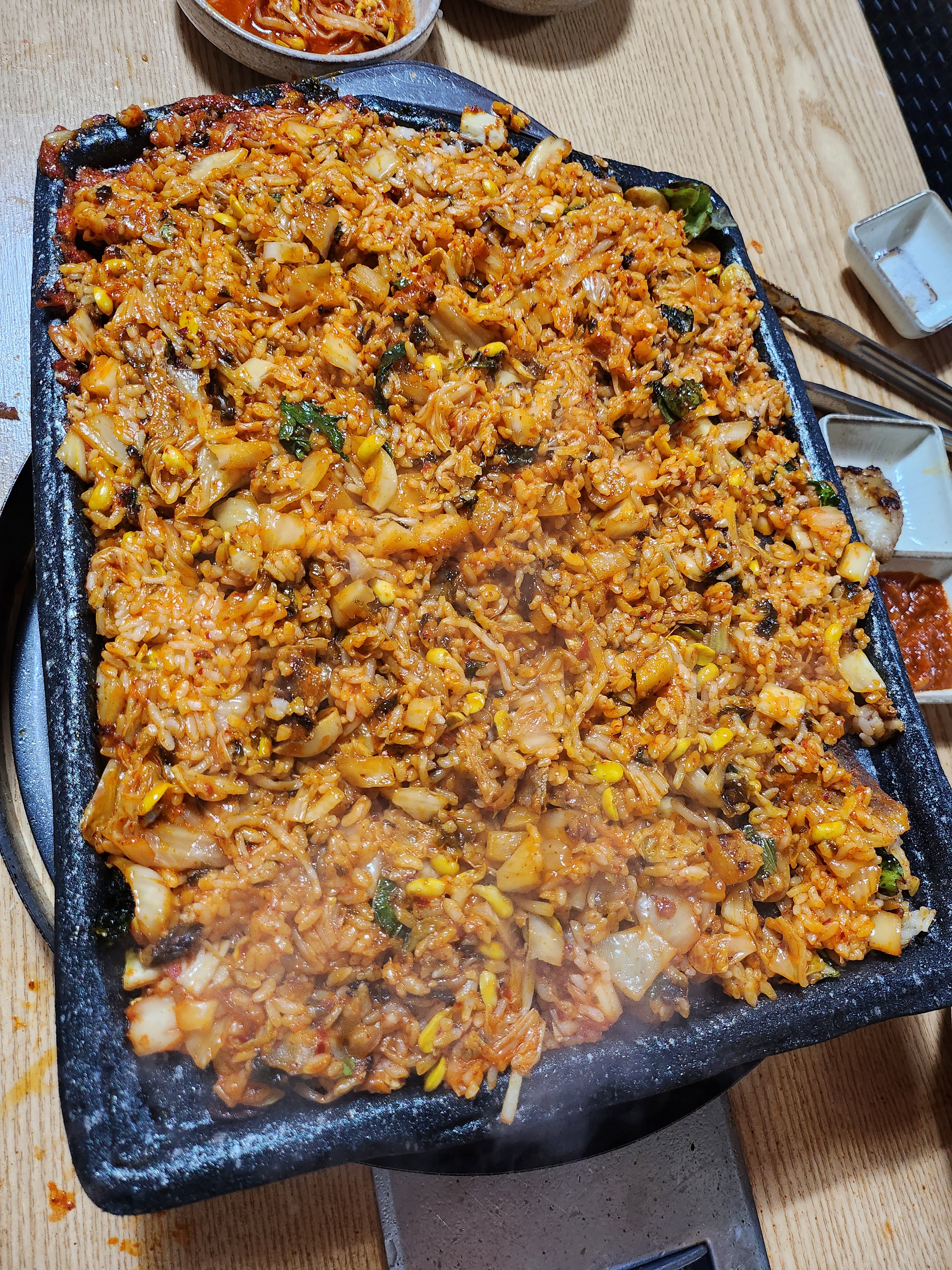 탄 음식이 몸에 안 좋다고는 하지만 불에 약간 눌린 밥의 식감과 맛은 환상적입니다.