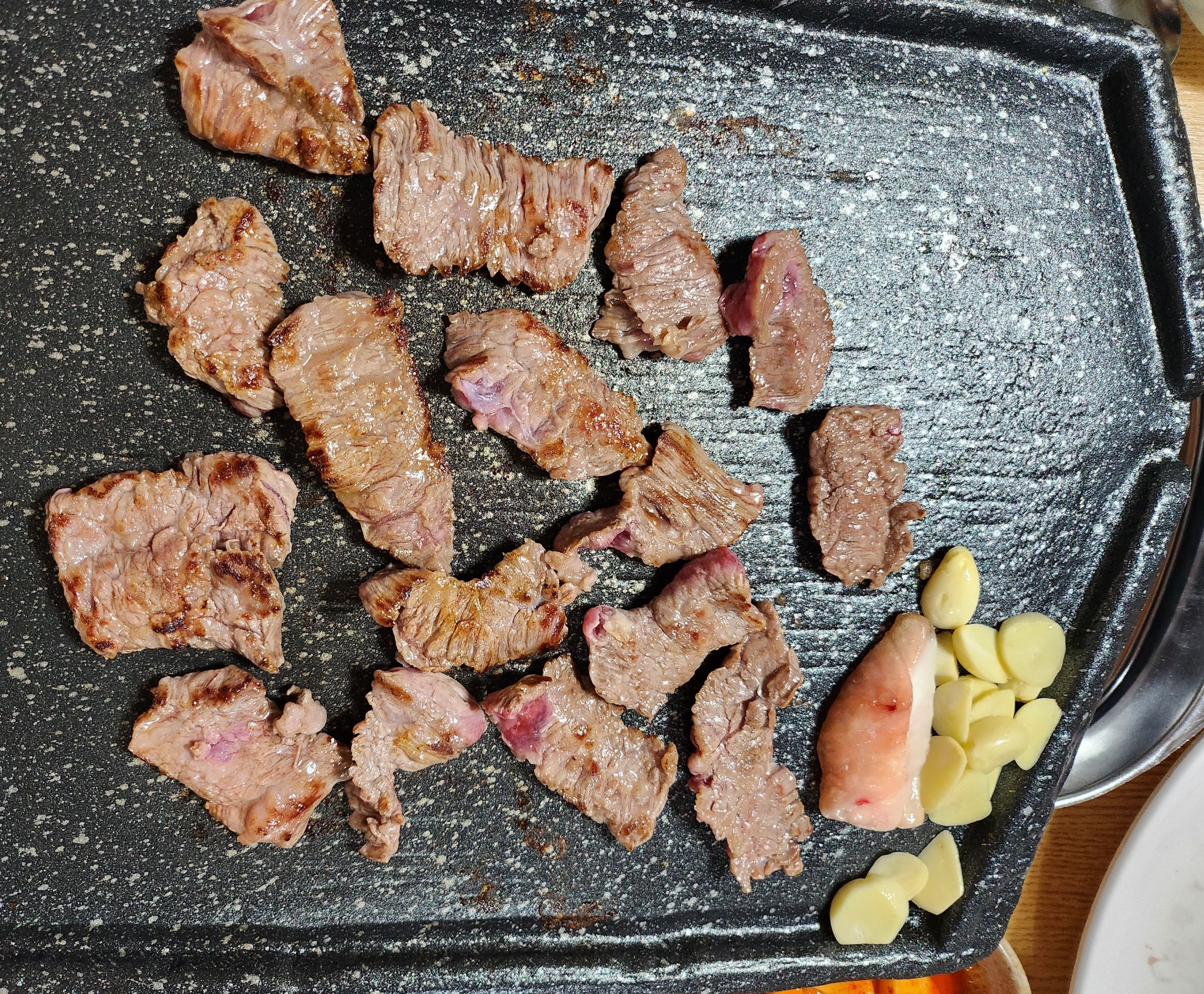 기름도 한 덩이 주시니 불판이 타면 닦아내서 구우시면 됩니다.