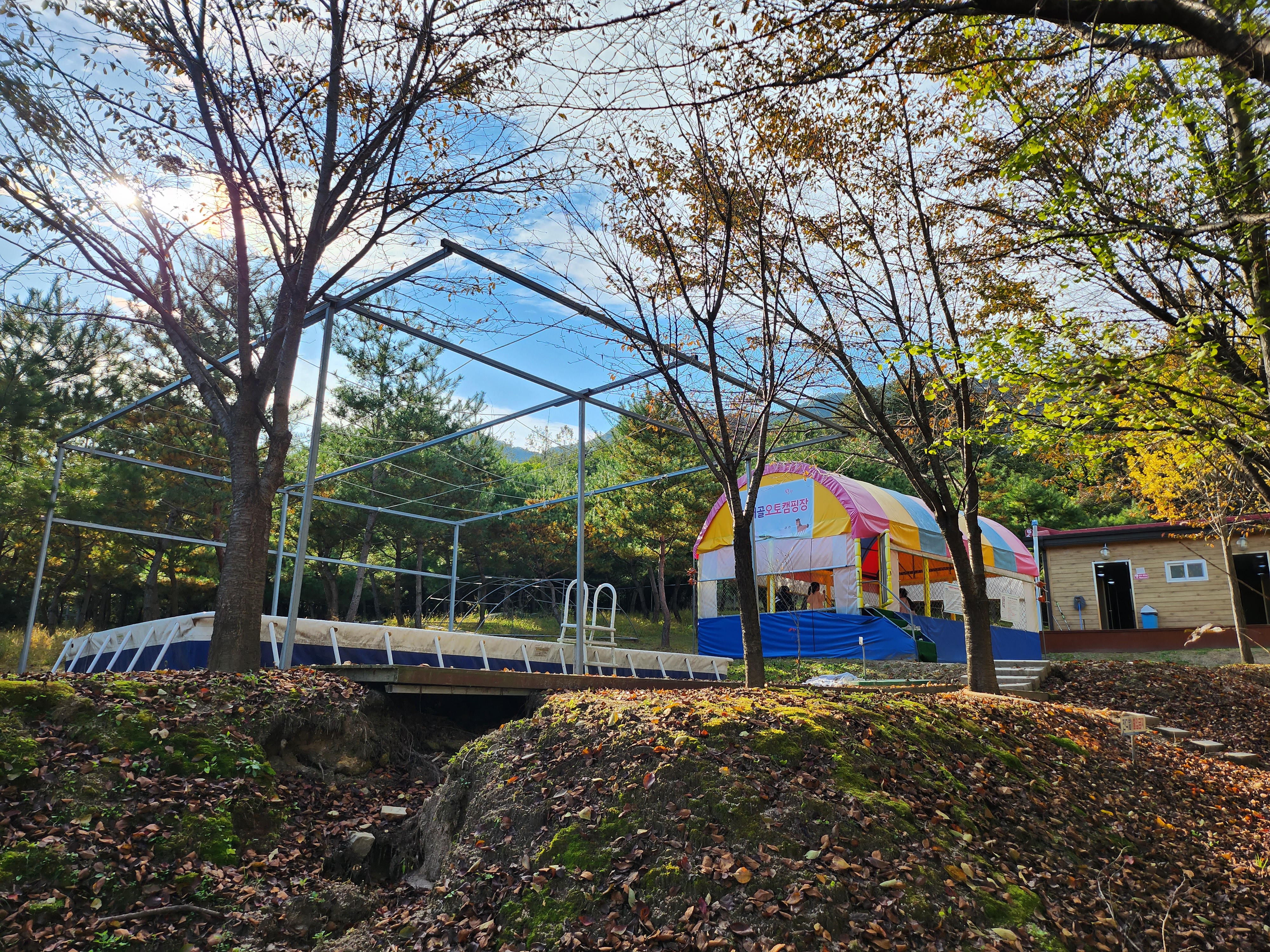 캠핑장 구역마다 수영장과 트램펄린이 기본으로 설치되어 있습니다.