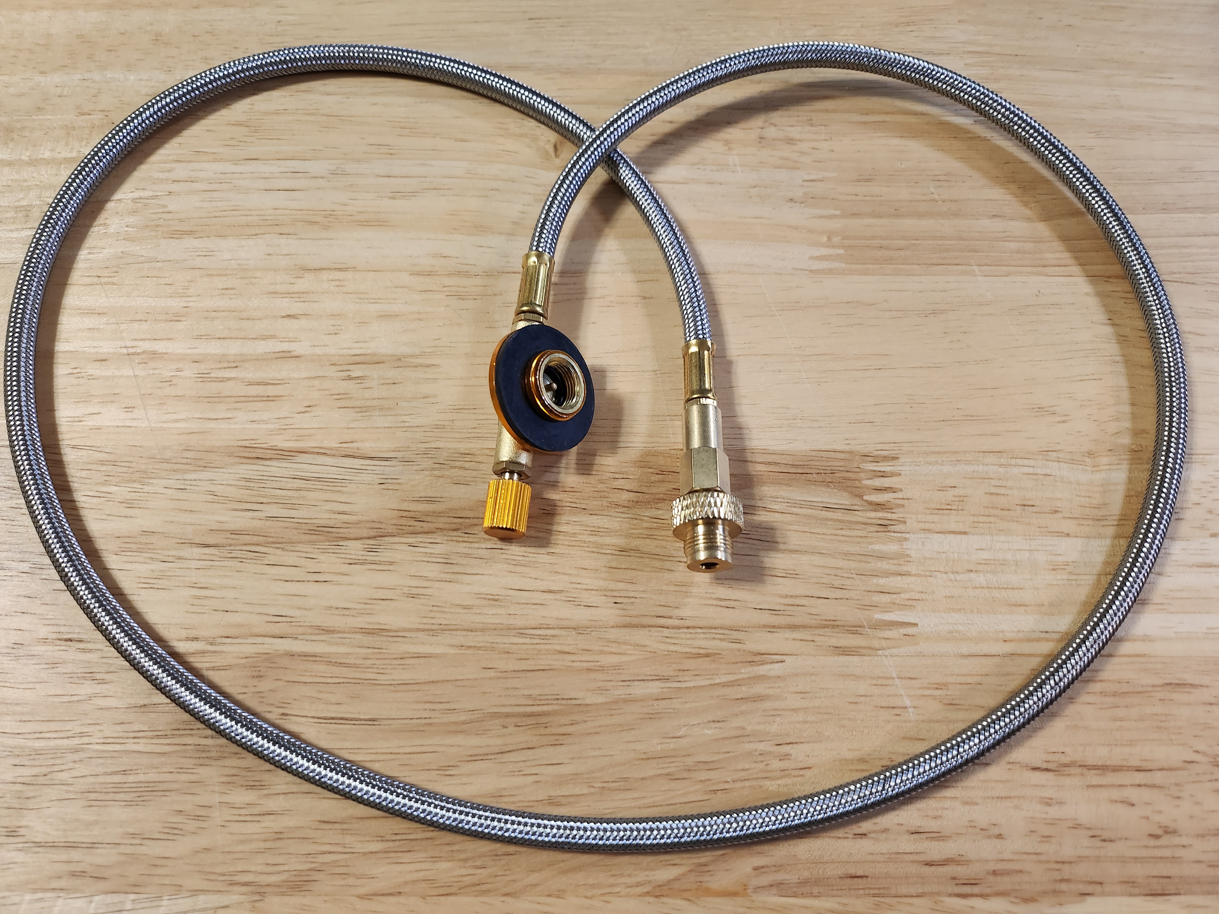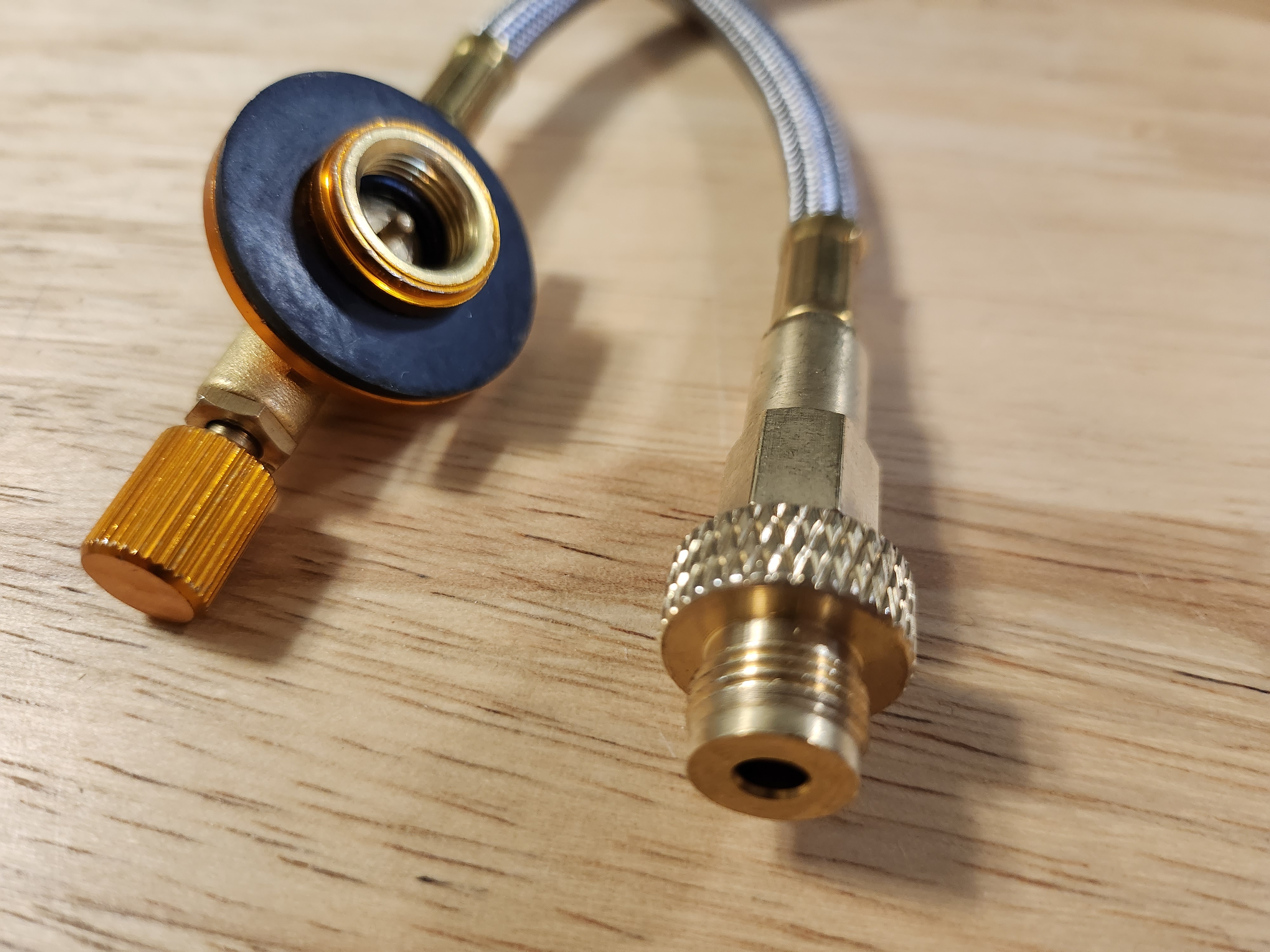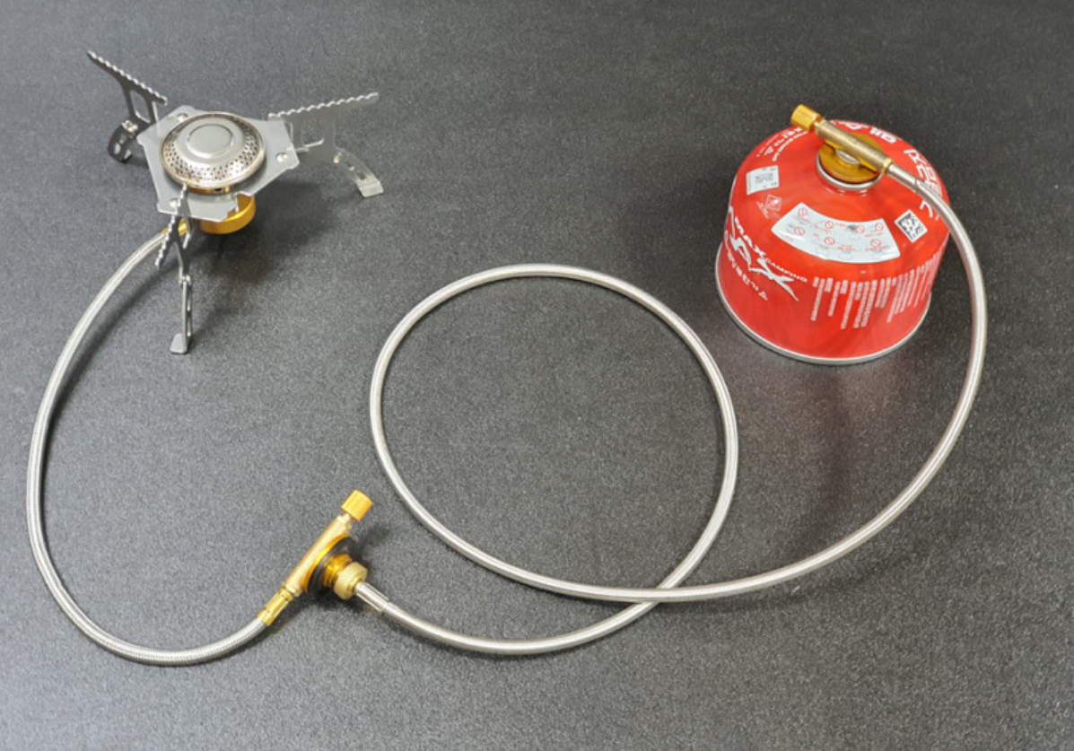 가스연장호스는 짧은 선을 길게 연장해주거나 버너에 직접 체결하지 않고 선을 길게 연장해서 사용할 수 있게 해주는 용품입니다.