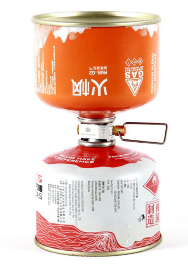 가스어댑터는 이소가스 대신 부탄가스를 연결하여 사용하거나 가스를 이동시킬 때 사용하는 용품입니다.