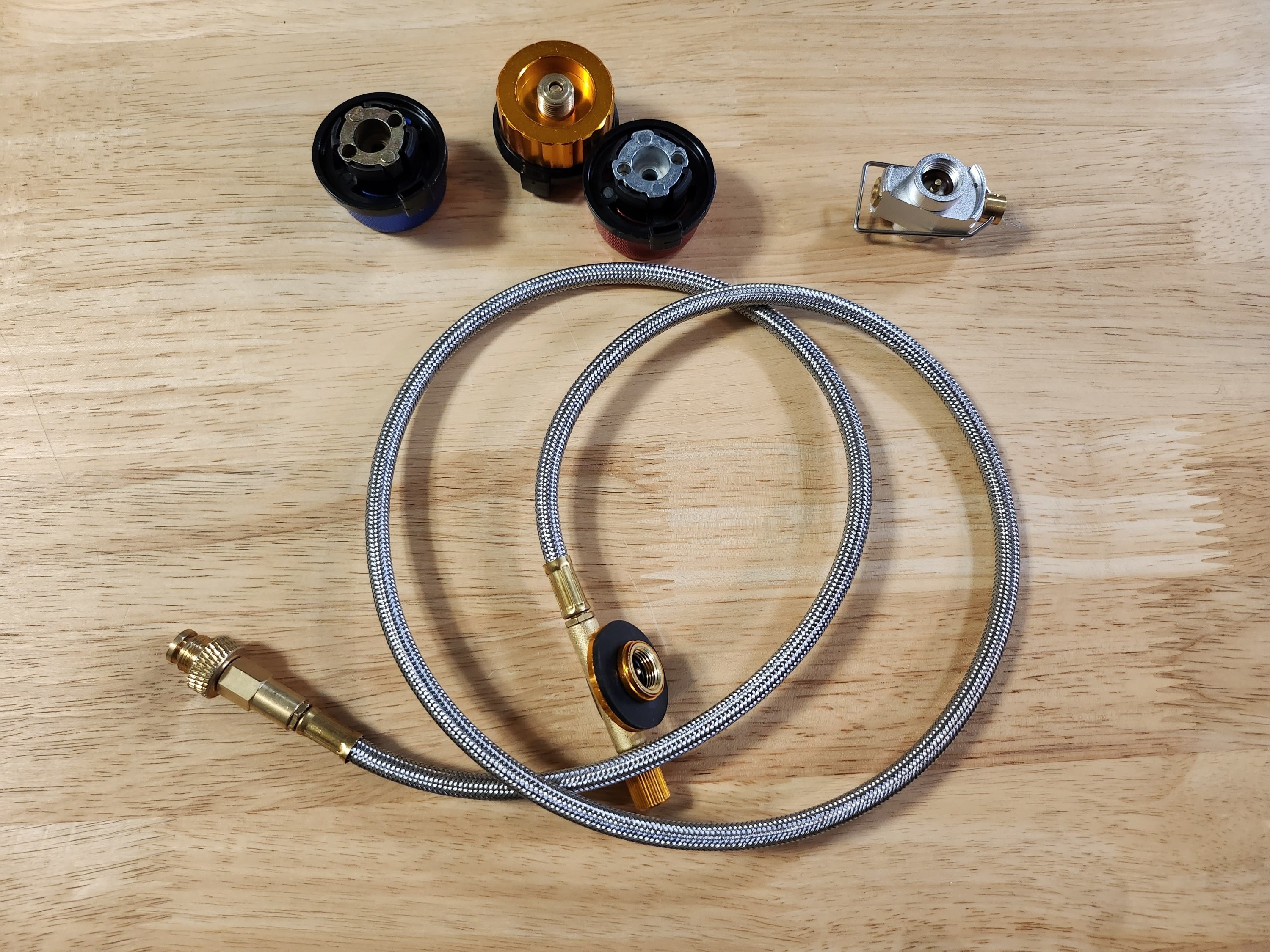 가스세이버, 가스어댑터, 연장호수는 꼭 필요한 캠핑 필수용품은 아니지만 좀 더 다양한 구성과 편리함이 제공될 수 있습니다.