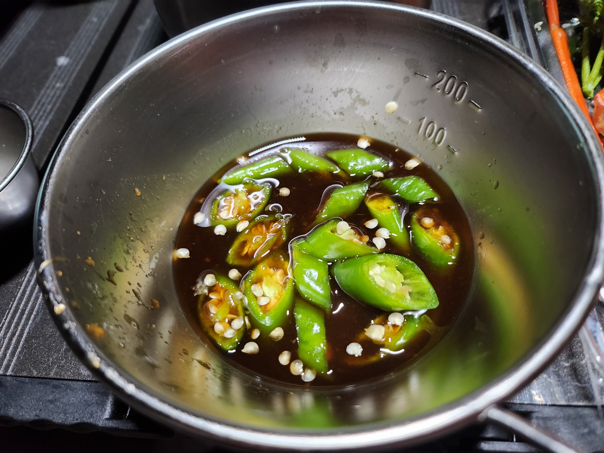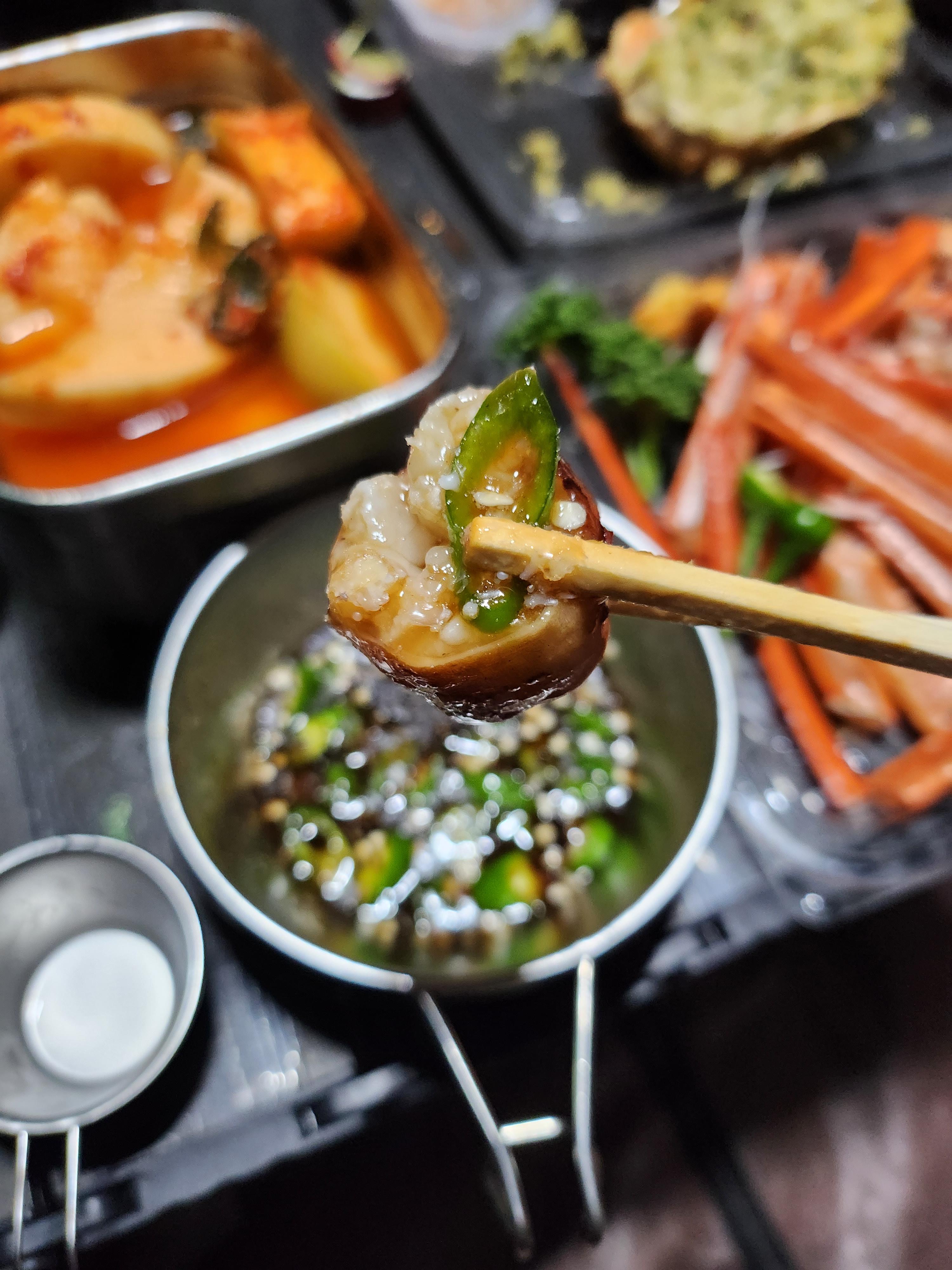 별도로 준비해 간 청양고추를 소팔 디핑소스와 함께 섞어서 먹었습니다.