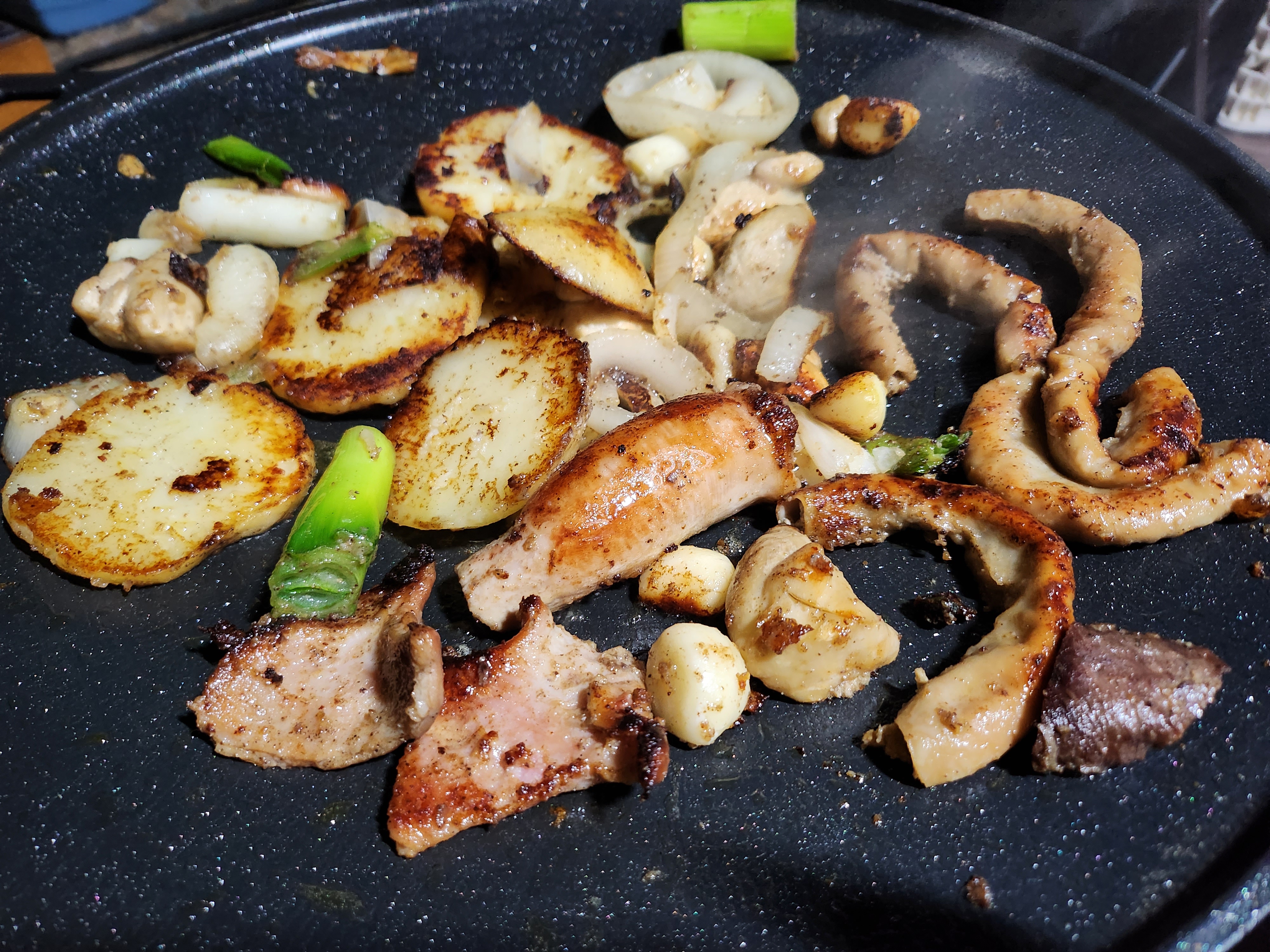 나중에 안 사실이지만 부속물 별로 굽는 시간이 조금씩 다르니 차례를 지켜 구워 먹는 게 제일 좋겠죠?