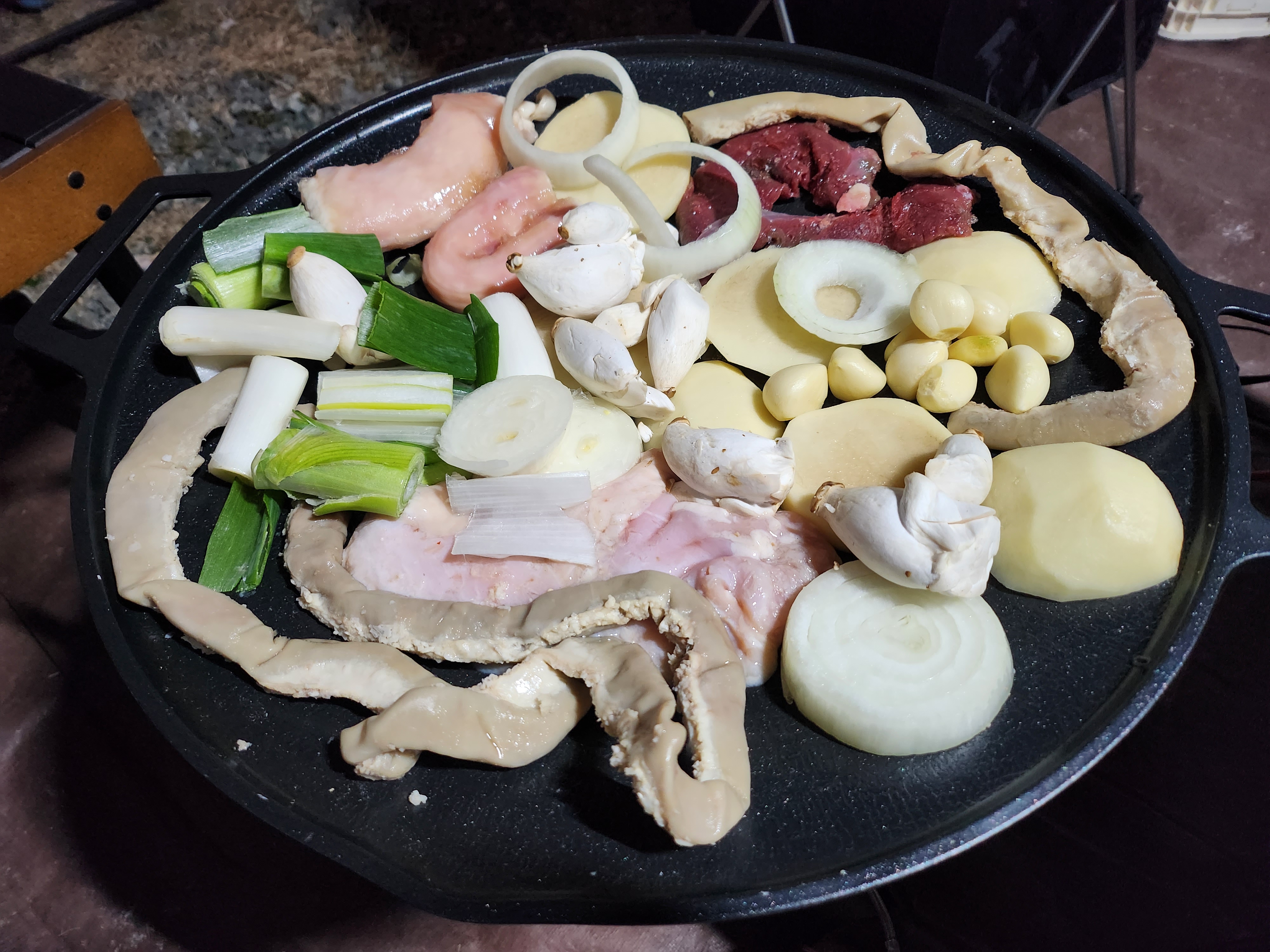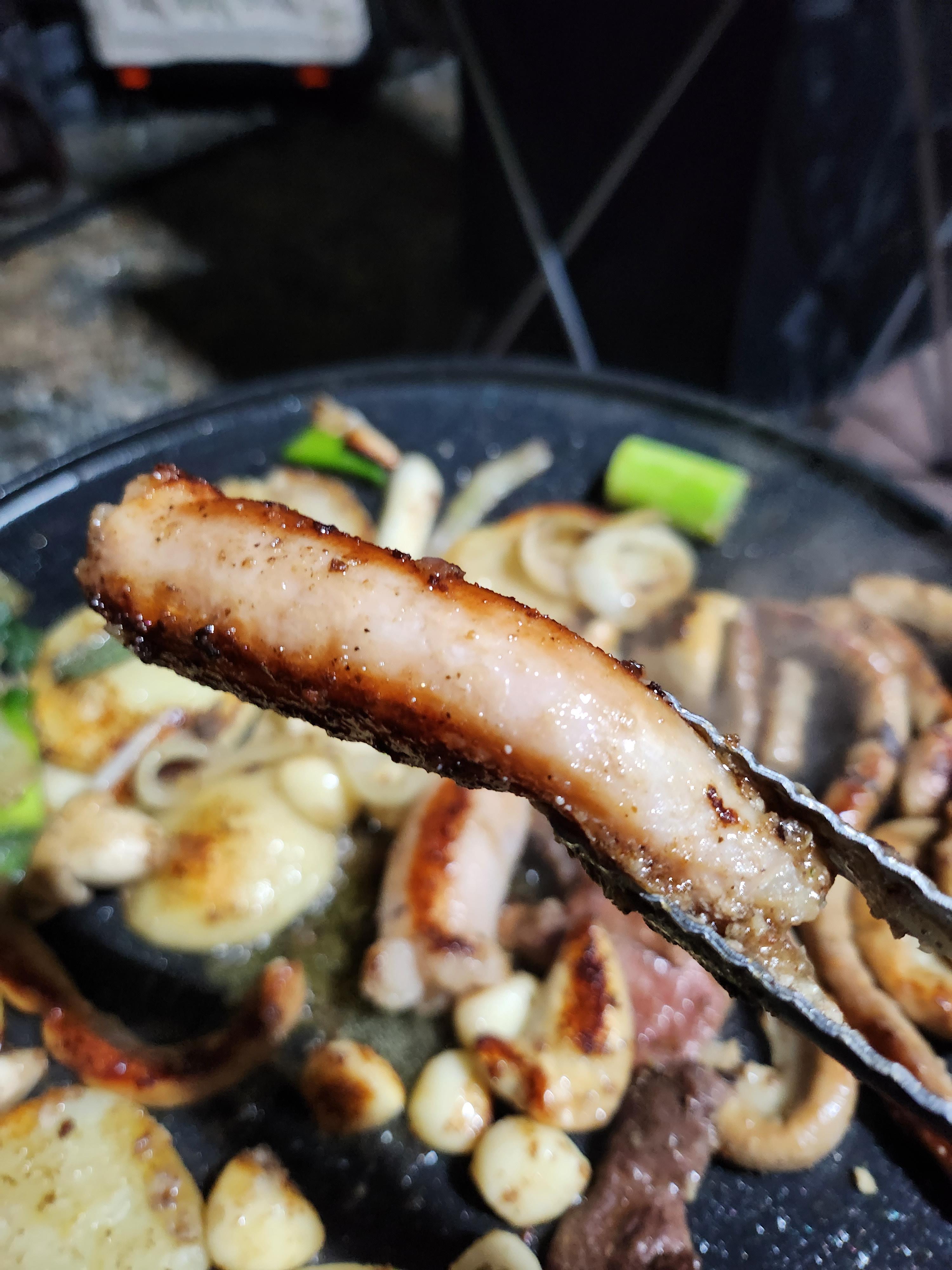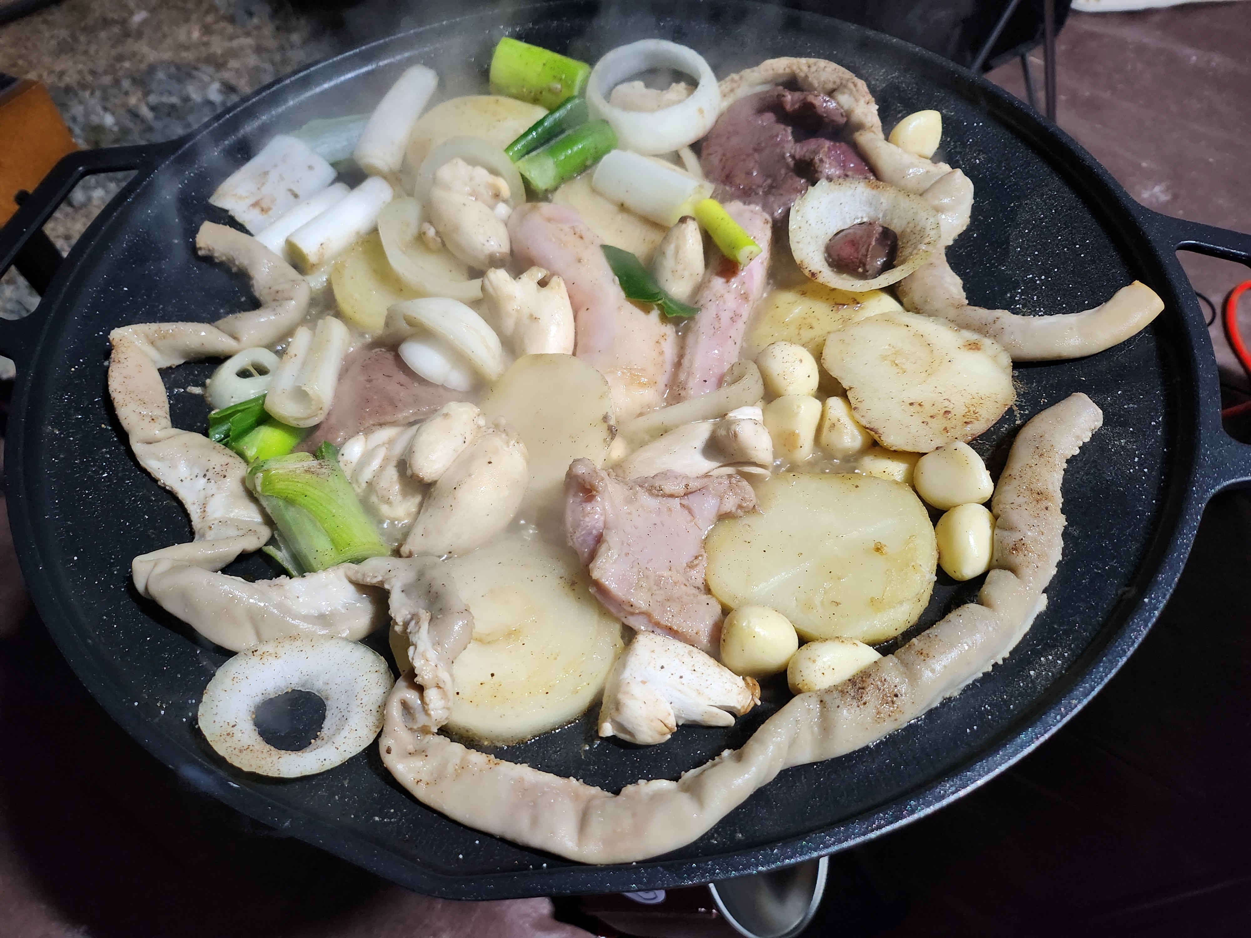 양양에 있는 캠핑장을 방문했고 저녁에 모듬곱창을 준비해서 먹었습니다.