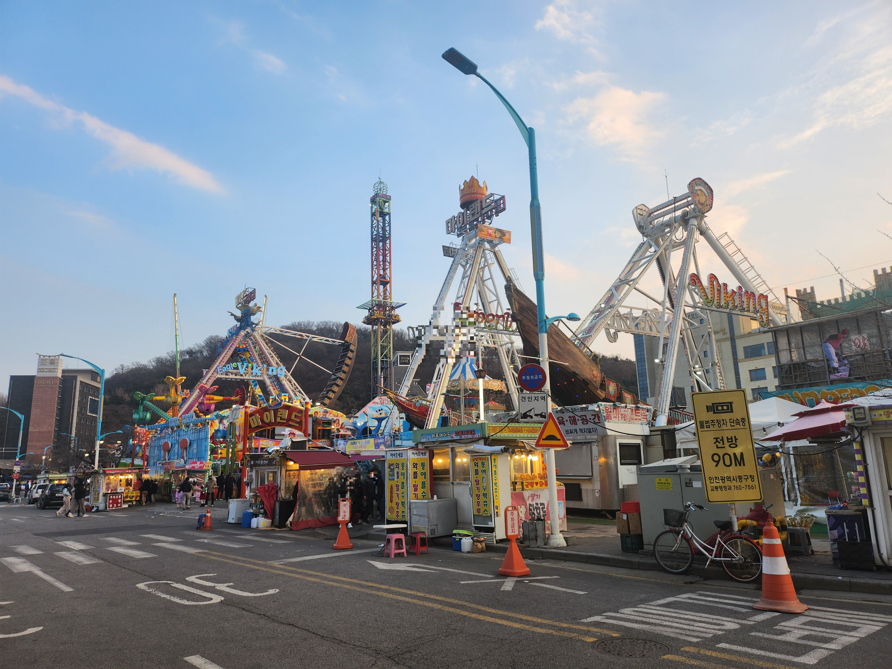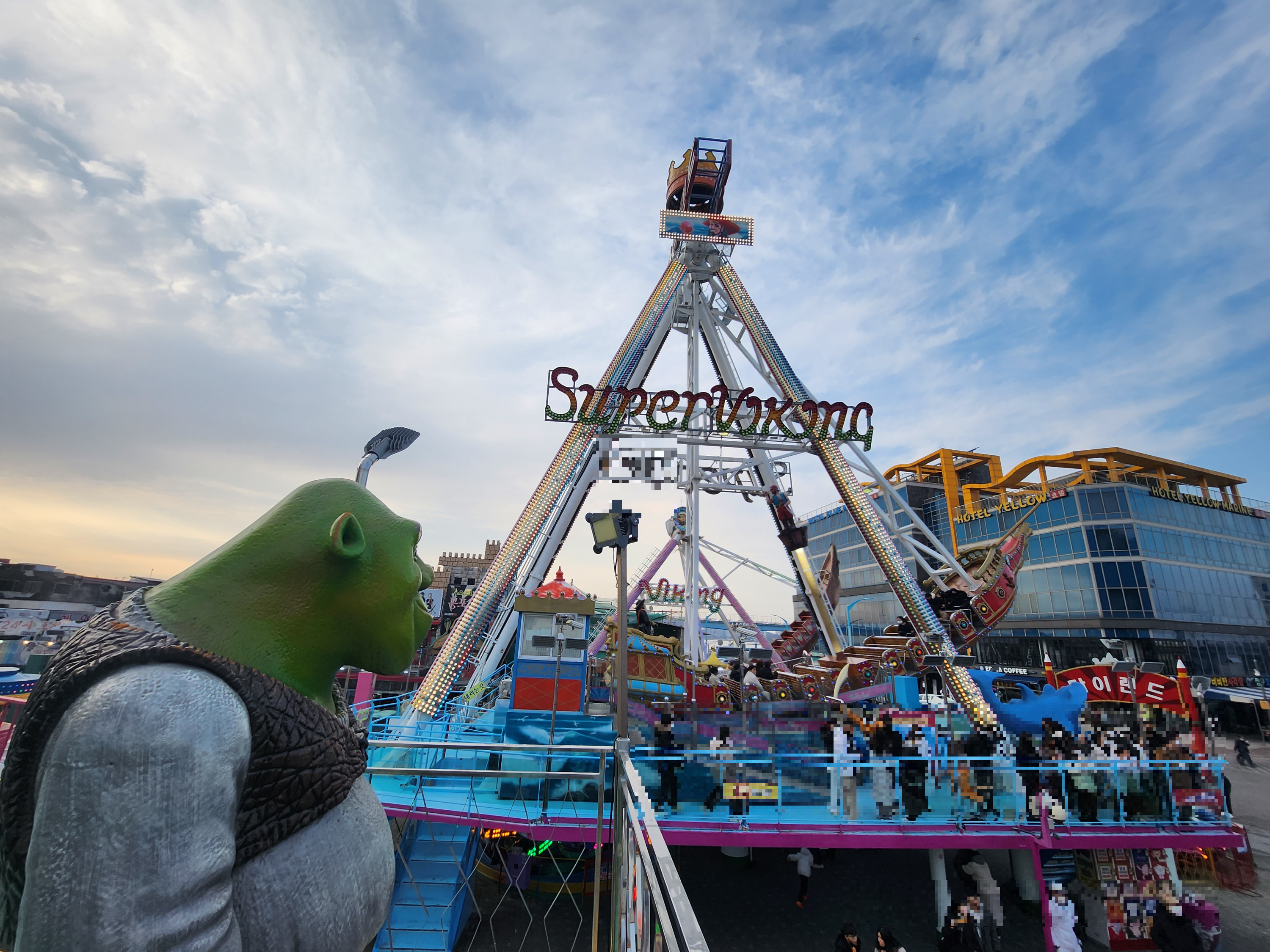 110도까지 올라간다는 월미도를 대표하는 바이킹을 슈렉이 흐뭇하게 바라보고 있습니다.ㅋㅋ