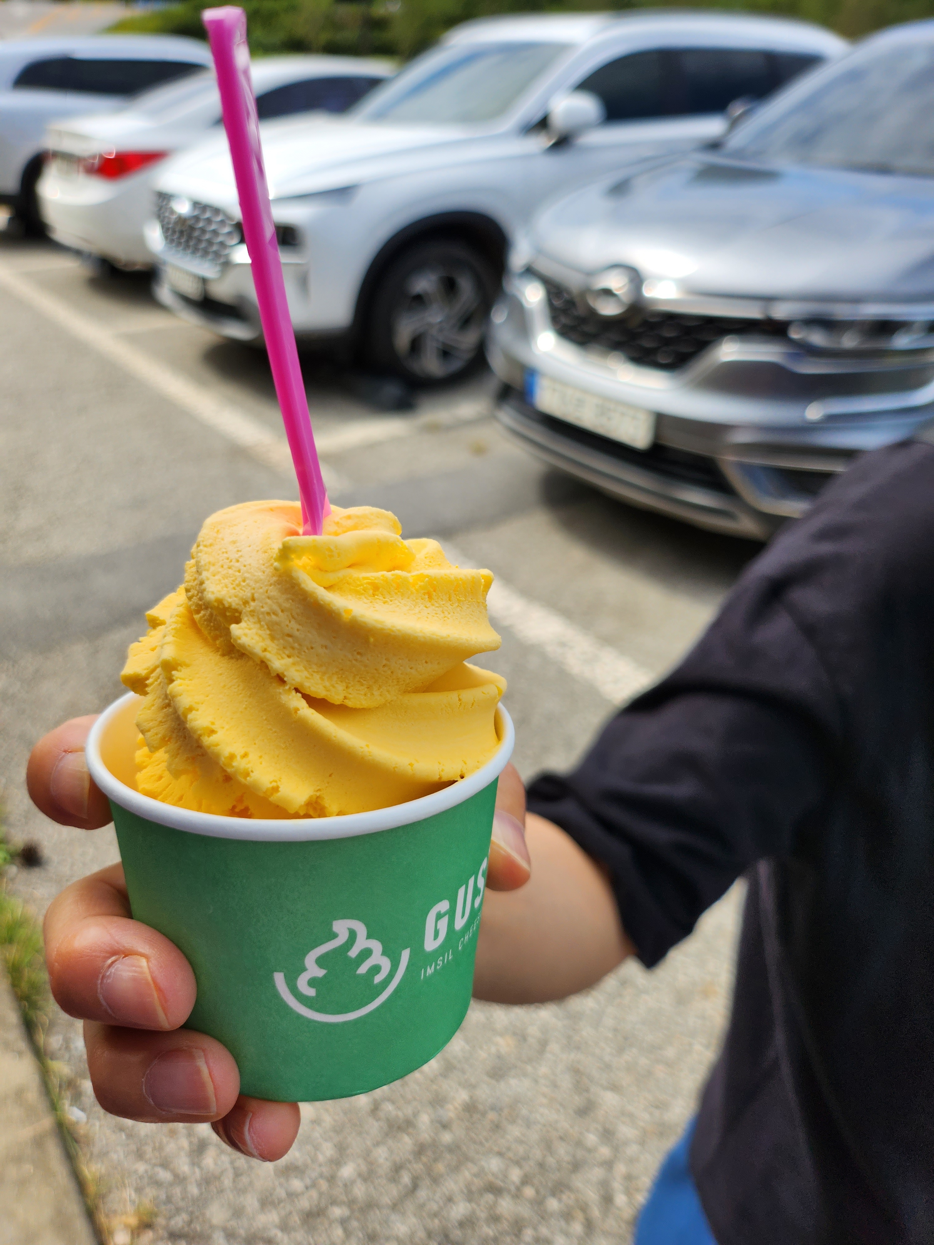 단연 인기 제품은 아이스크림입니다. 구스토아는 임실치즈 프리미엄 캡슐 아이스크림입니다.