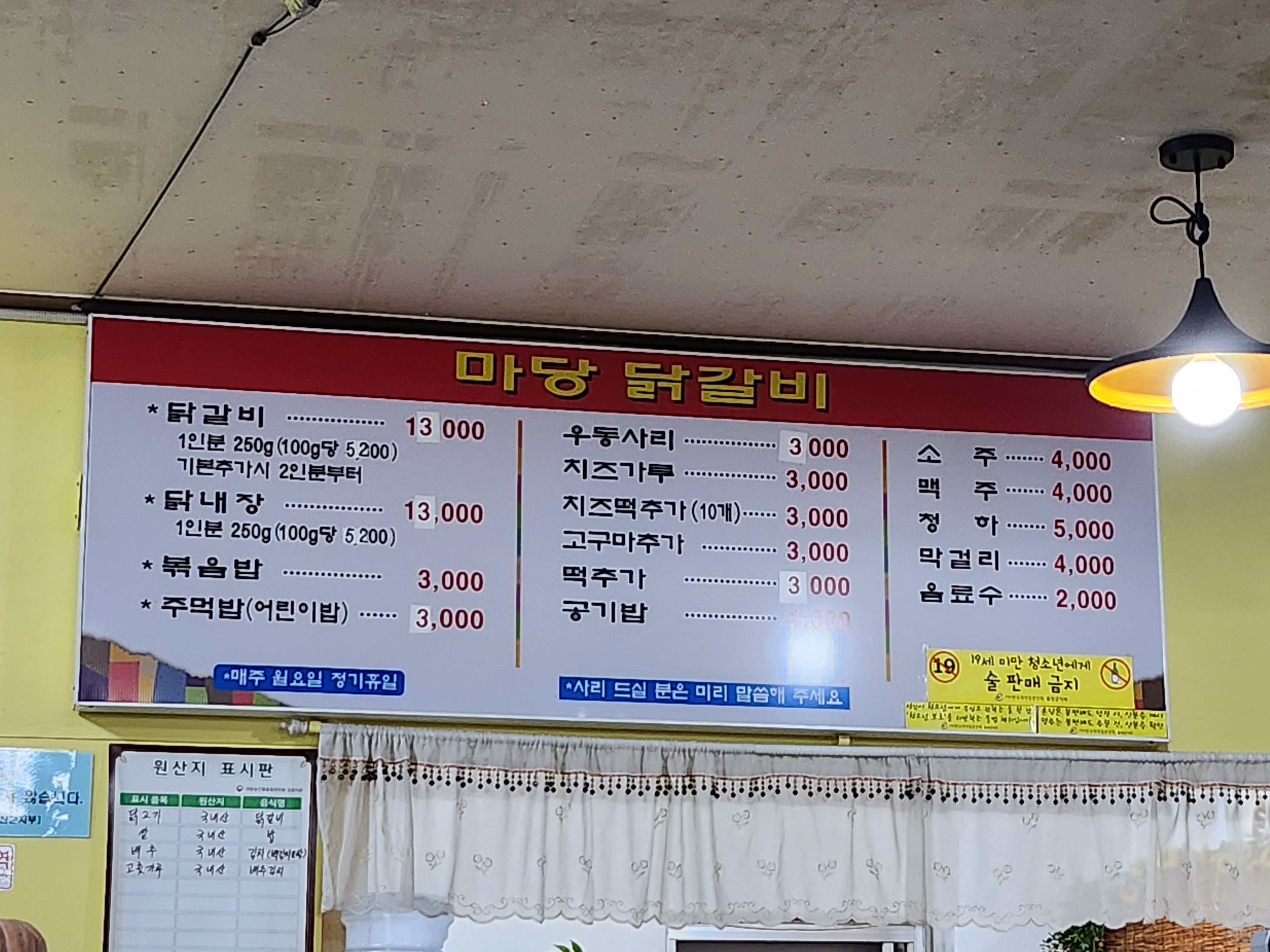 흔히 닭갈비는 춘천이 유명하다고 합니다. 하지만 홍천에도 로컬 맛집인 닭갈비집이 있어 소개해볼까 합니다. 철판 닭갈비와 닭내장 볶음을 전문으로 하고 있는 마당 닭갈비입니다. 예약을 받고 계시니 혹시 방문 계획이 있으시다면 미리 전화로 예약하고 가시는 게 좋습니다. 로컬맛집으로 유명한 마당 닭갈비는 특이한 점이 닭내장 볶음을 같이 판매하고 있습니다.