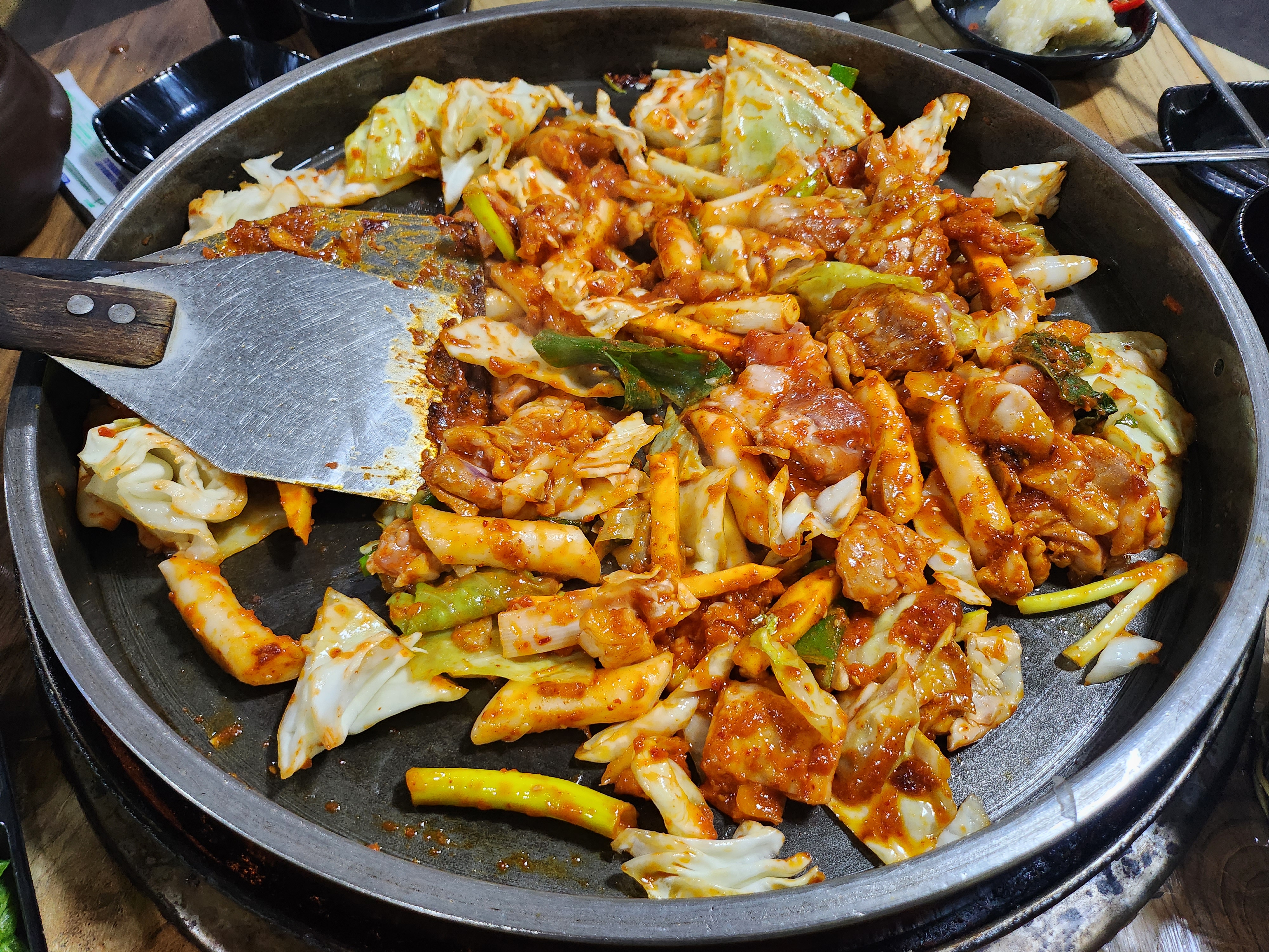 닭갈비는 사장님이 계속 돌아다니면서 현란한 손놀림으로 맛있게 볶아주시니 마무리되면 맛있게 드시면 됩니다.