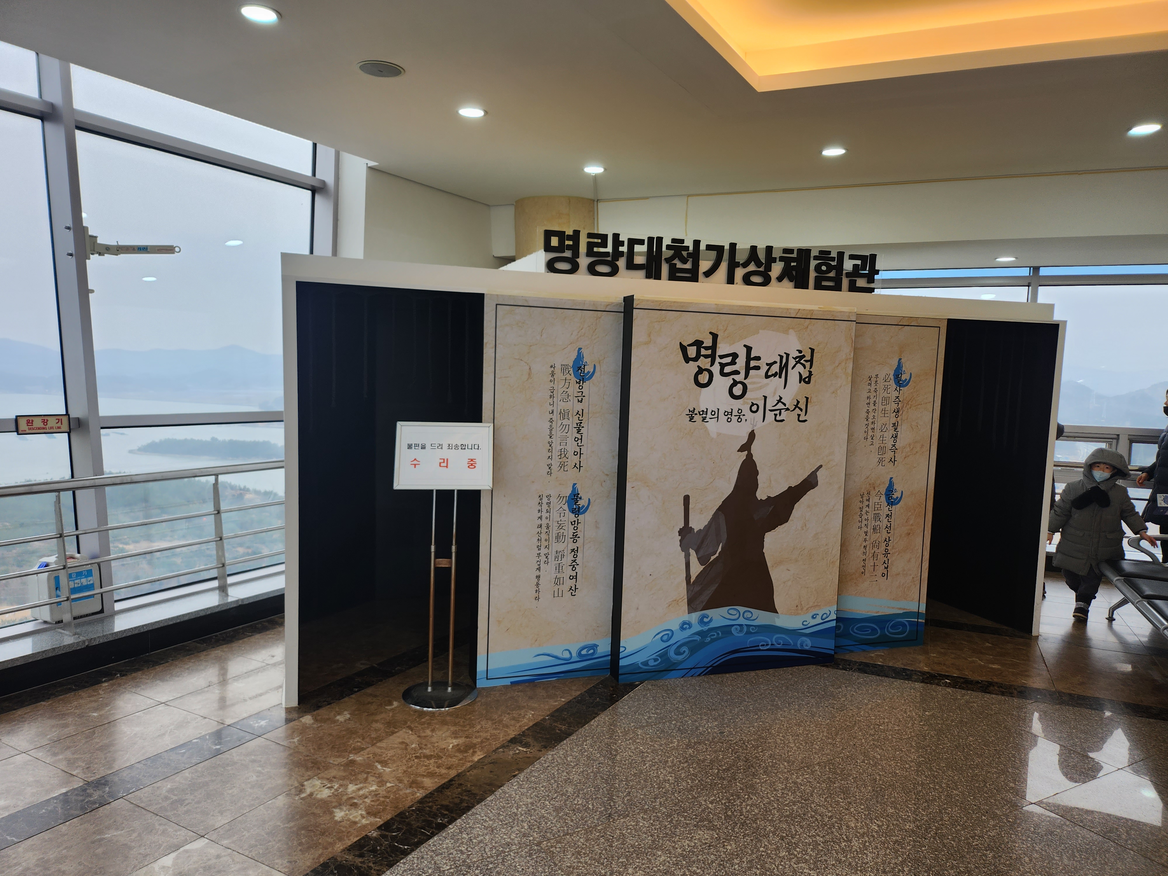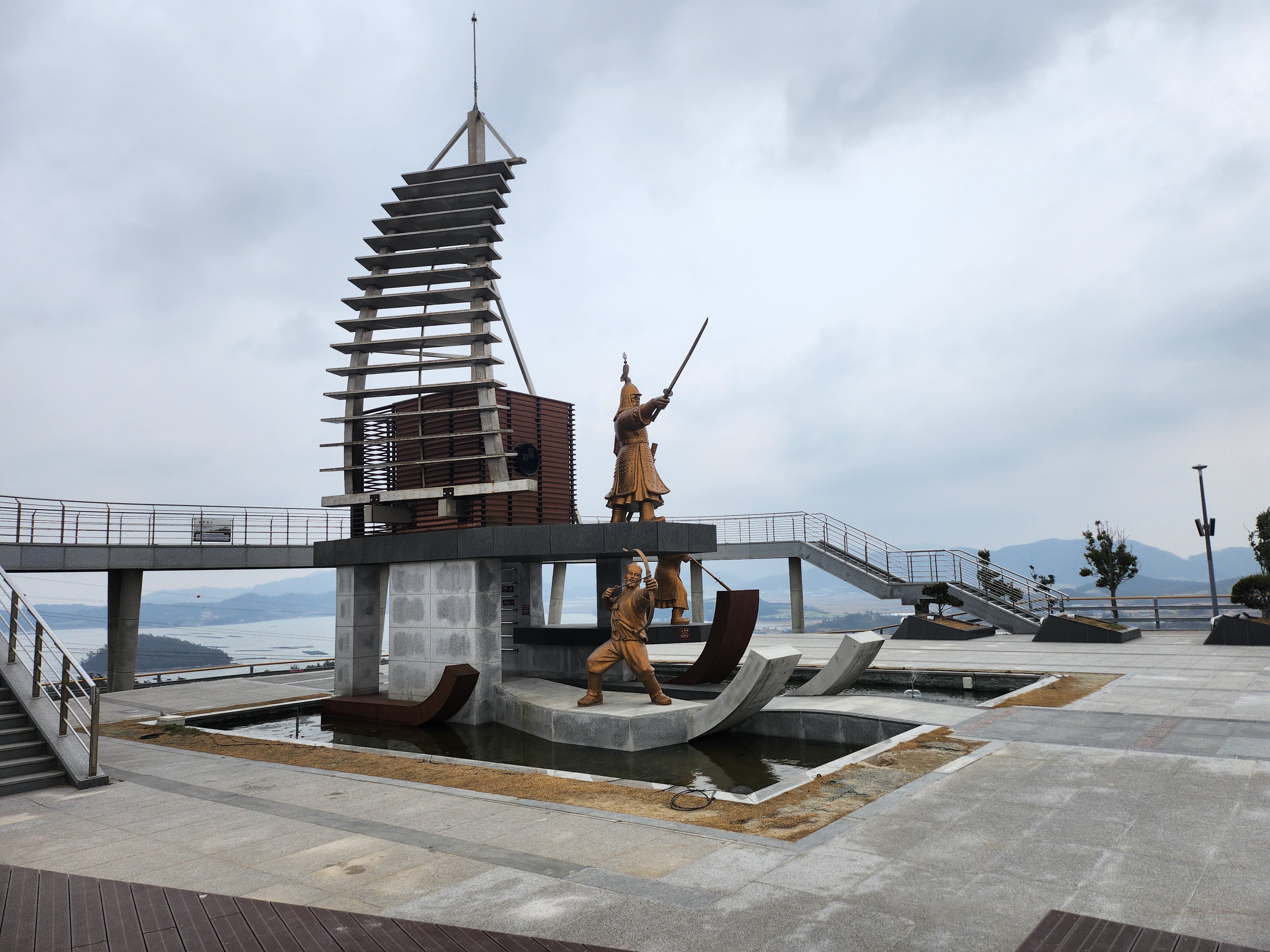 명량해전을 기념하는 조형물들이 야외에 설치되어 있으며, 근처의 경치들을 조망할 수 있습니다. 전망대 타워에 올라가지 않더라도 주변을 둘러보기에 부족함이 없었습니다.