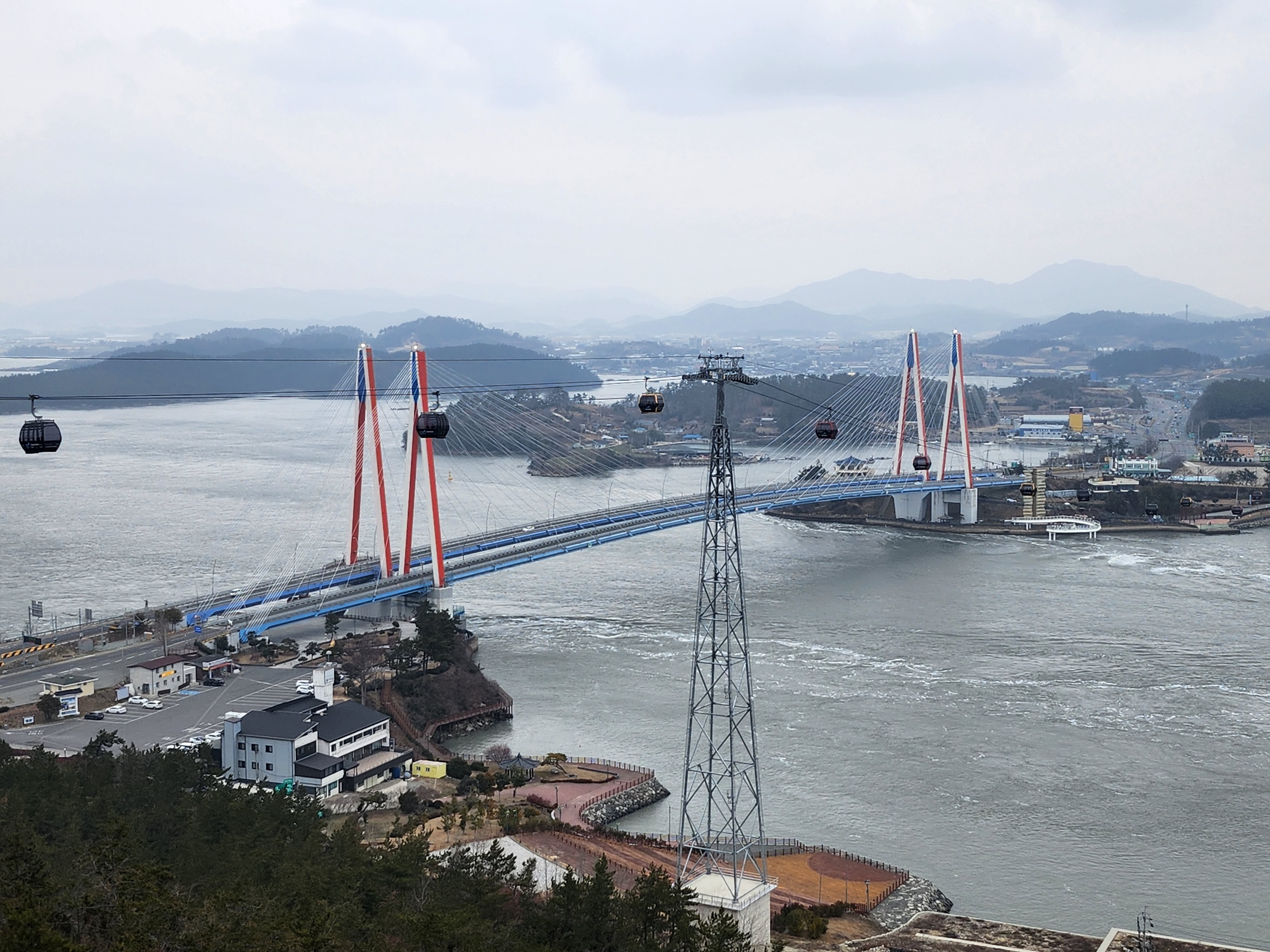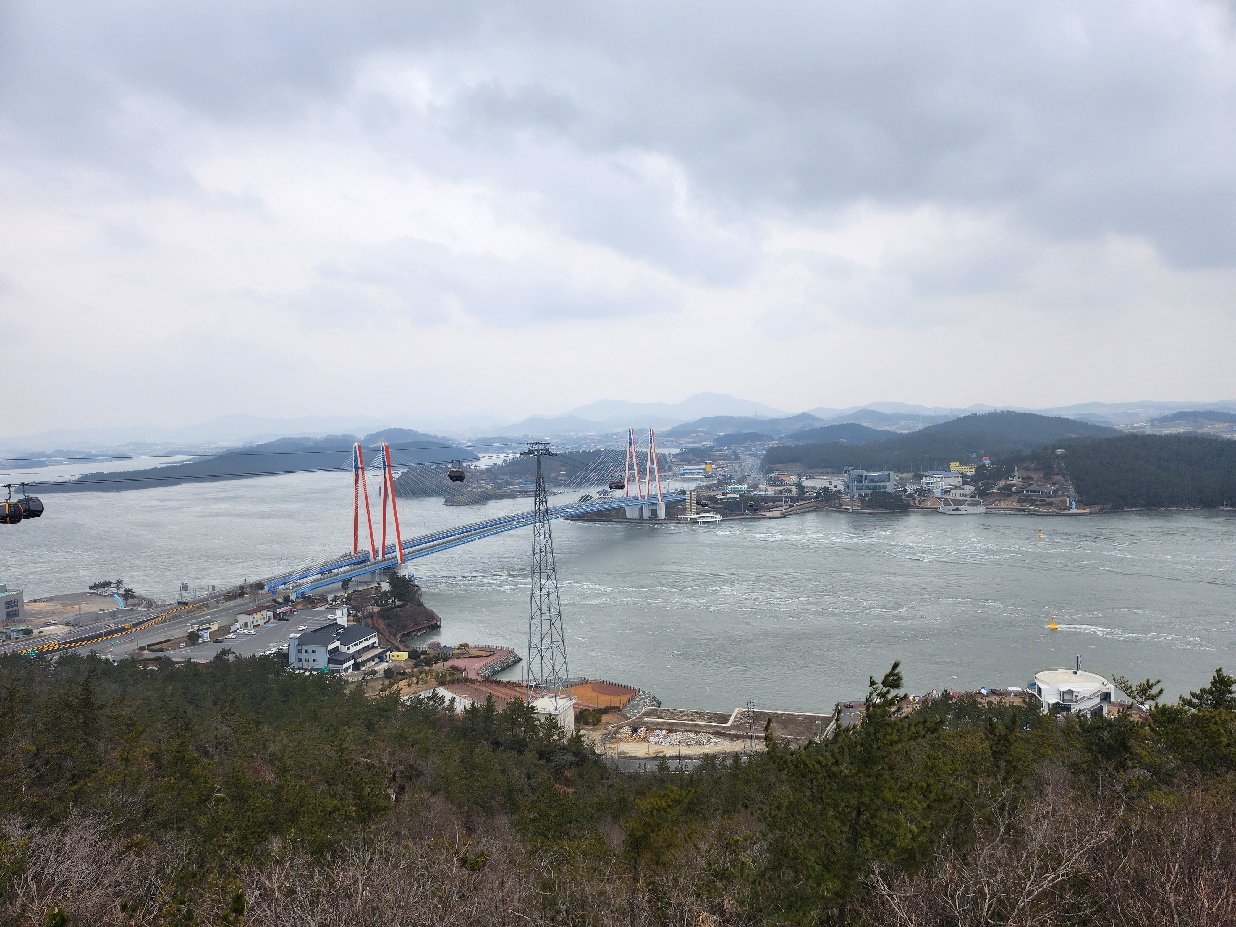 진도대교 부근에 울돌목에는 바다 물길들이 회오리치는 모습을 직관할 수 있습니다. 진도대교와 함께 멋진 뷰를 제공해 줍니다.