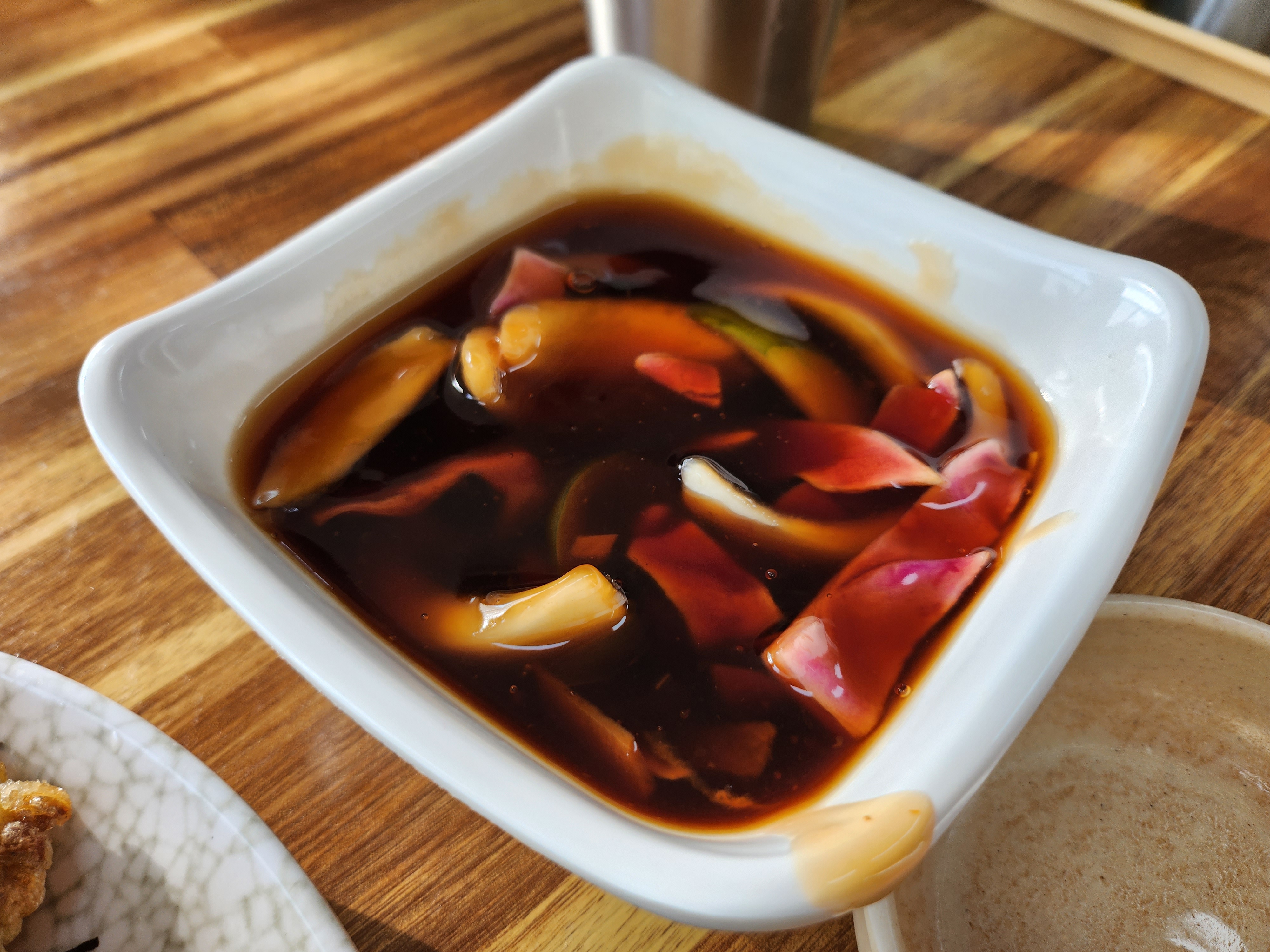 갑오징어 탕수육 소자를 주문했고 갑오징어를 큼지막하게 썰어서 튀겨낸 모양으로 얇은 튀김옷에 매우 바싹한 식감을 자랑합니다. 찍먹 스타일로 내어 주시고요. 양은 충분한 편이었고 맛있는 오징어튀김과 비슷한 맛이지만 갑오징어의 특유한 쫄깃함과 튀김의 고소한 맛이 잘 어우러져 있어 만족도가 높았습니다. 소스는 특별한 점은 없습니다.