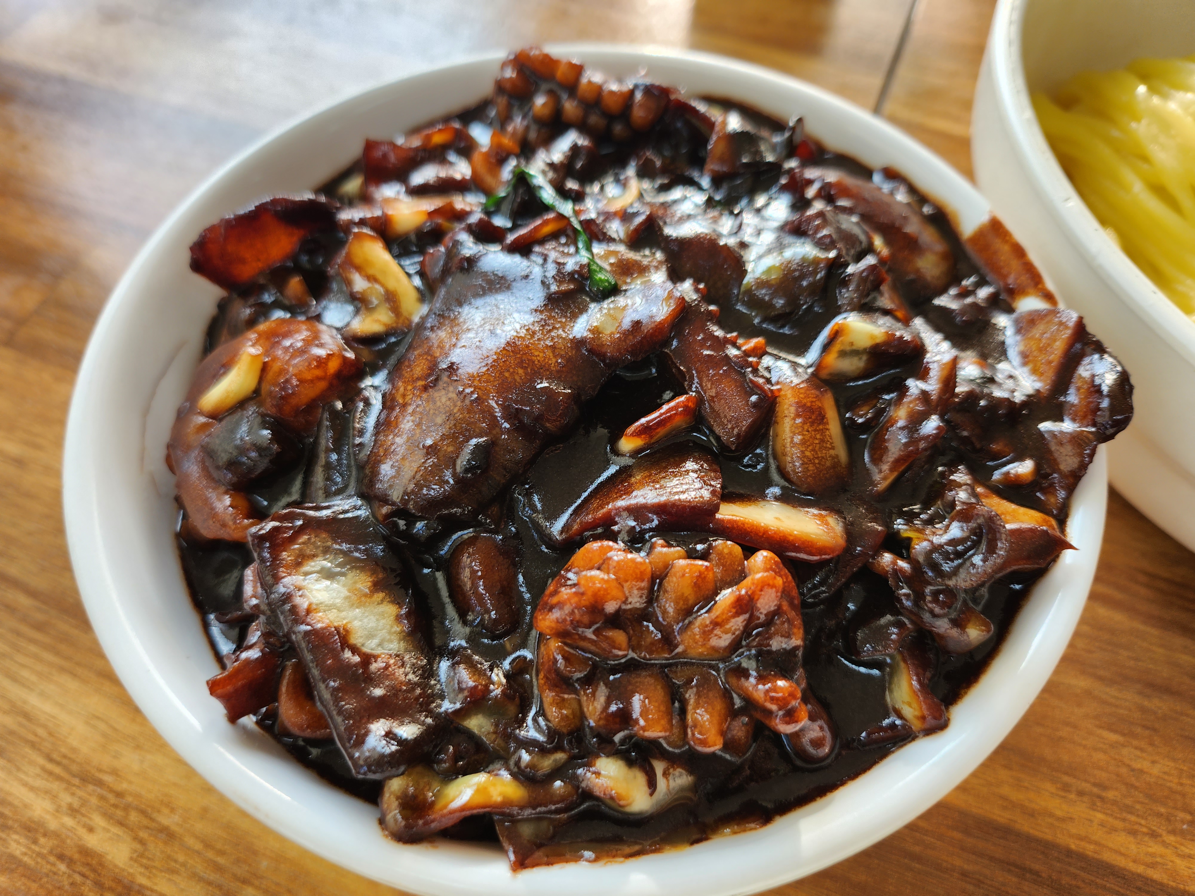 잘 비벼진 간짜장을 한입 먹어보니 싱싱한 해산물이 어우러져 고소하고 단짠단짠 맛입니다.