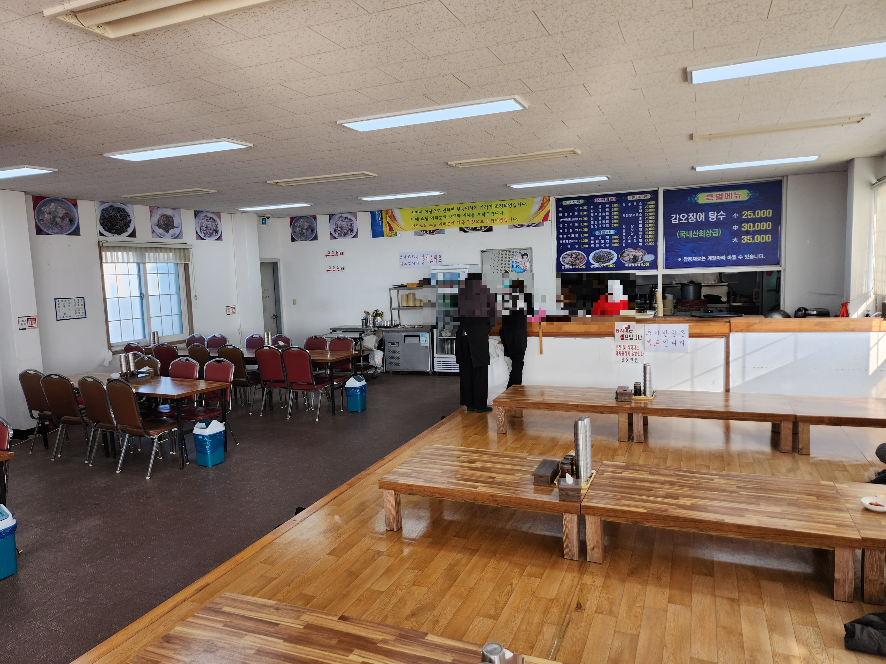 매장 내부는 매우 넓은 편이고 좌식테이블과 입식테이블이 같이 있고 단체석을 받을 수 있을 만큼 여유로운 편입니다.