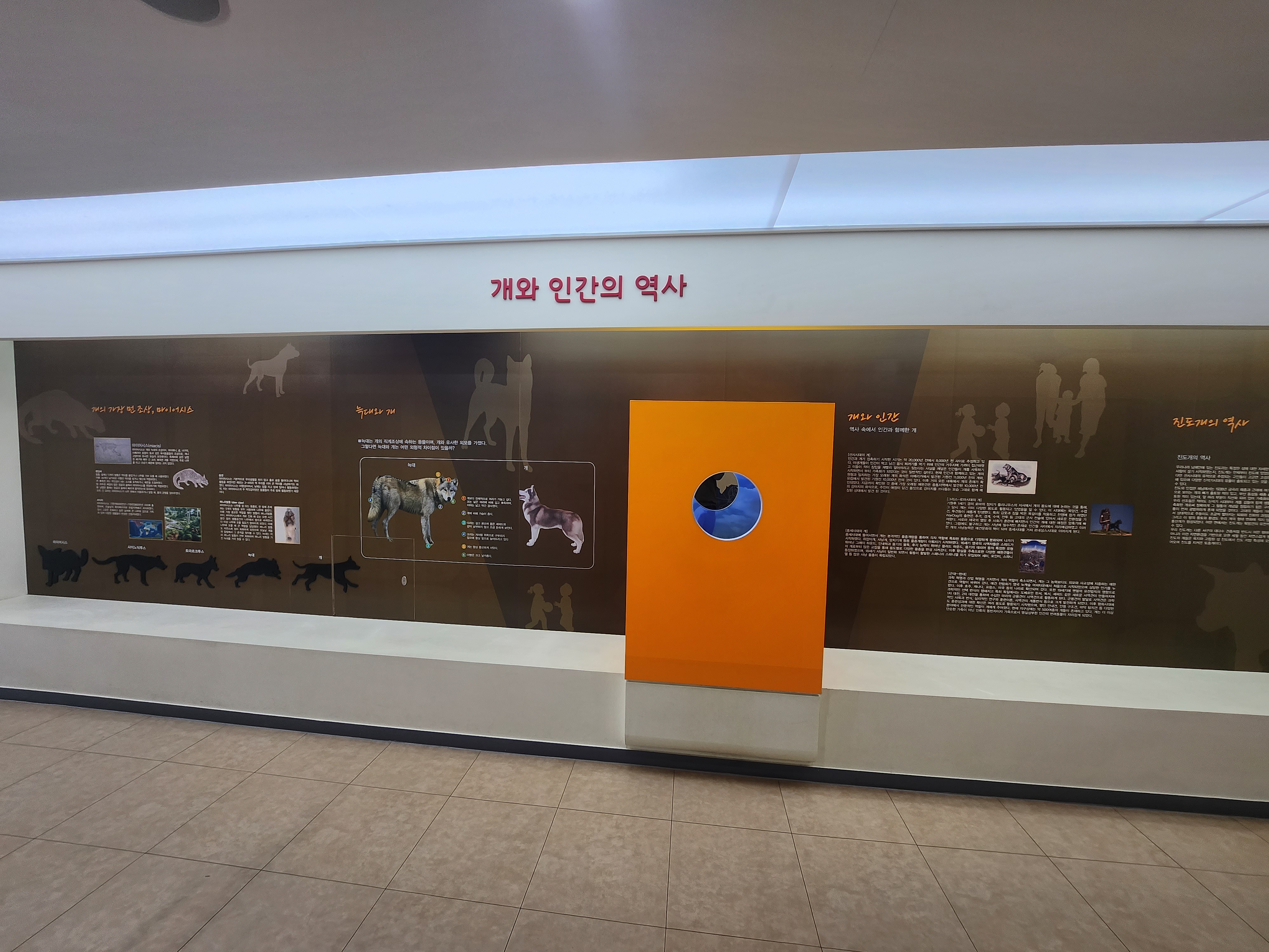 대한민국 고유 품종인 진도개, 삽살개, 풍산개, 동경이의 모습과 자세한 설명이 곁들여져 전시되어 있습니다.