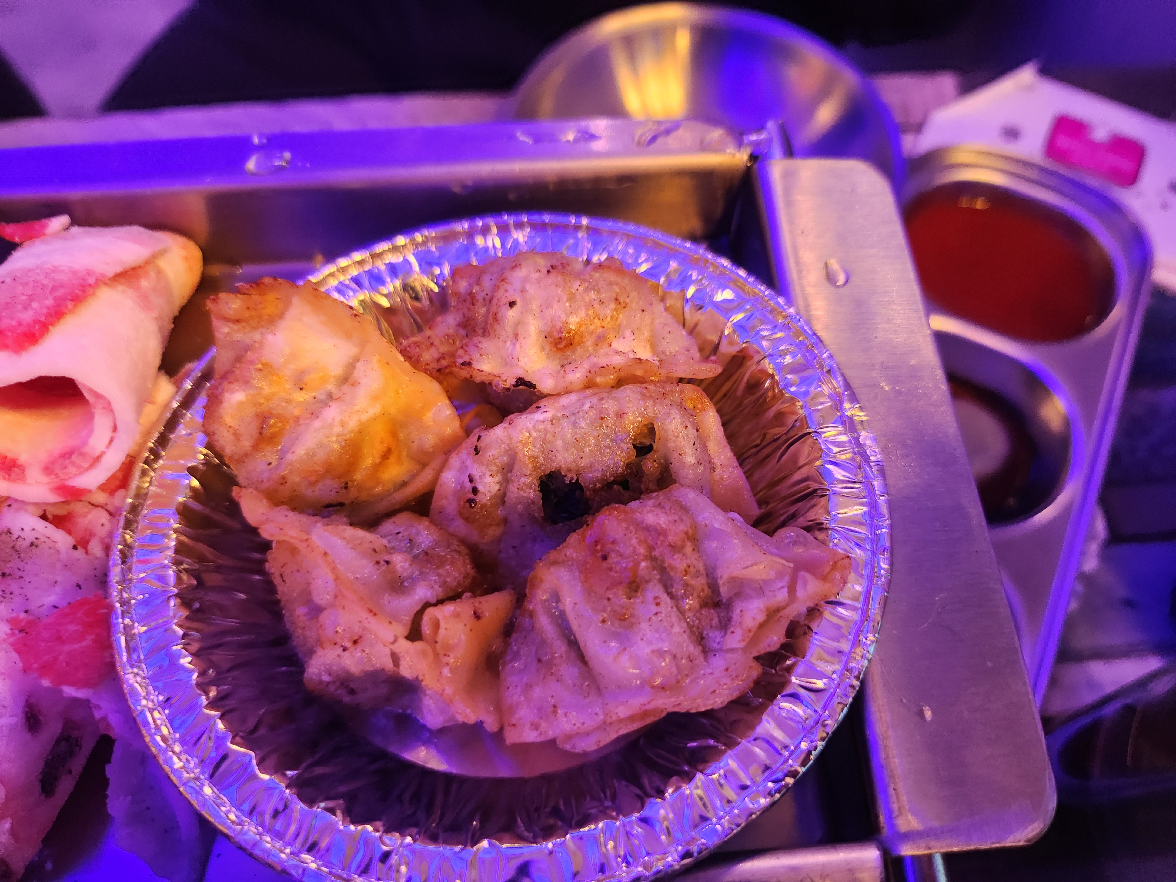 약간 생뚱맞은 조합이 아닌가 생각됐던 물만두 튀김입니다.