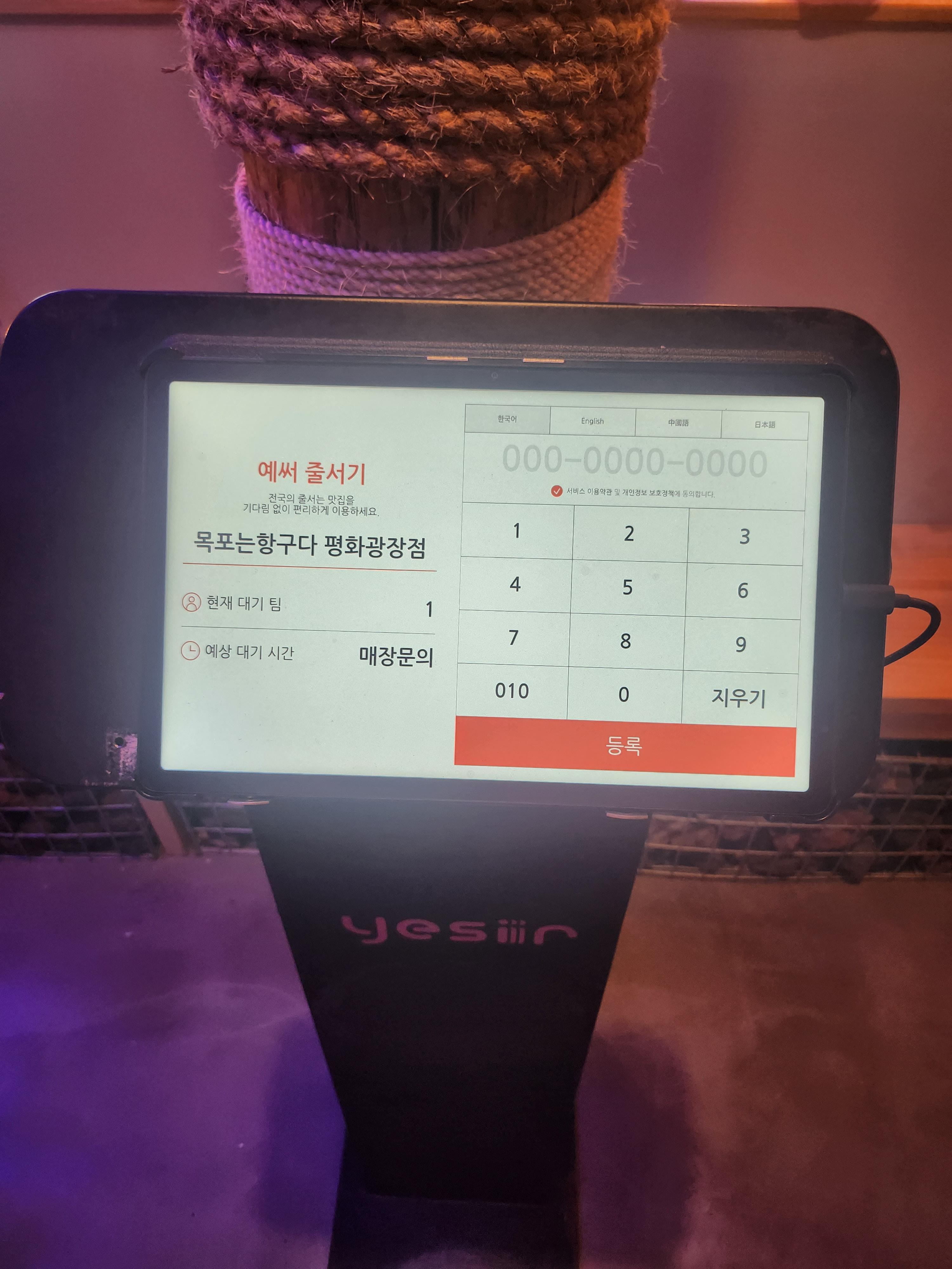 웨이팅은 예써 줄서기를 통해 등록하신 후 대기하시면 됩니다. 나올 때 사진을 찍었는데 1팀 대기가 있었네요.