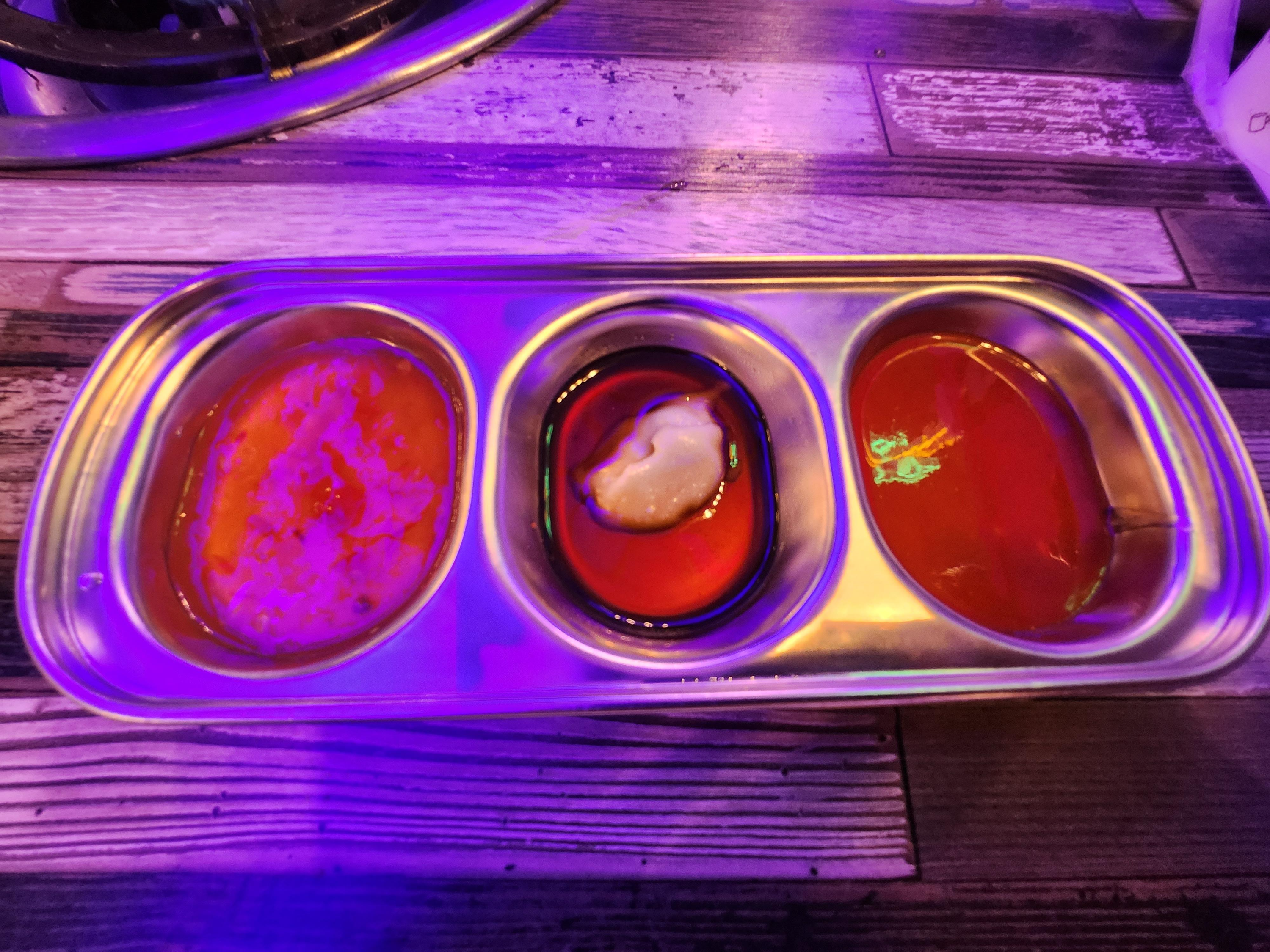 기본 찍먹 소스는 칠리, 고추냉이 간장, 초고추장이 준비되어 있습니다.