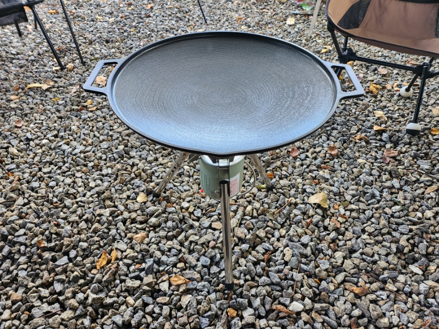 40cm 코팅 그리들인데 안정적으로 거치되었고 더 큰 사이즈의 그리들이나 조리도구도 충분히 올려놓을 수 있습니다.