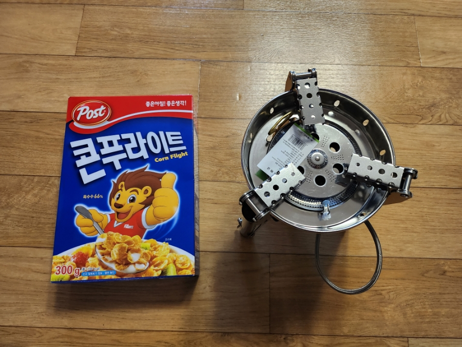 크기 확인용 두 번째 300g짜리 콘푸라이트와 비교한 모습입니다.