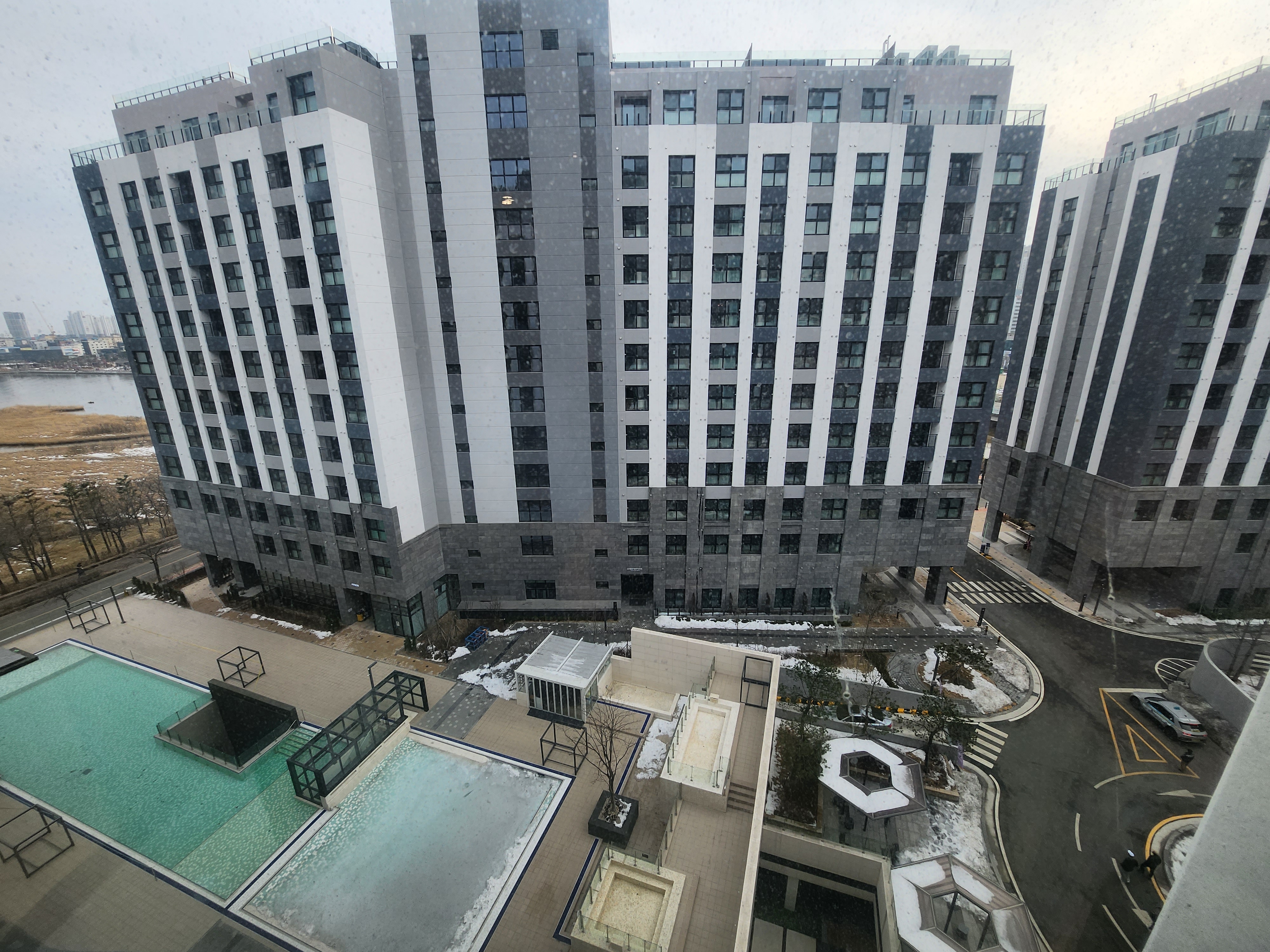 동마다 객실마다 바라보는 뷰는 모두 다르겠지만 저희 쪽 객실 뷰의 모습입니다. 왼쪽 편에 청초호가 살짝 보이고 왼쪽아래쪽에는 수영장이 보입니다. 이곳 수영장은 여름에 호텔사용하시는 분들에게 개방되는 곳으로 규모가 그리 큰 편은 아닙니다. 지난여름에 방문했을 때는 사람이 너무 많아서 사용이 힘들 정도로 인기였습니다.