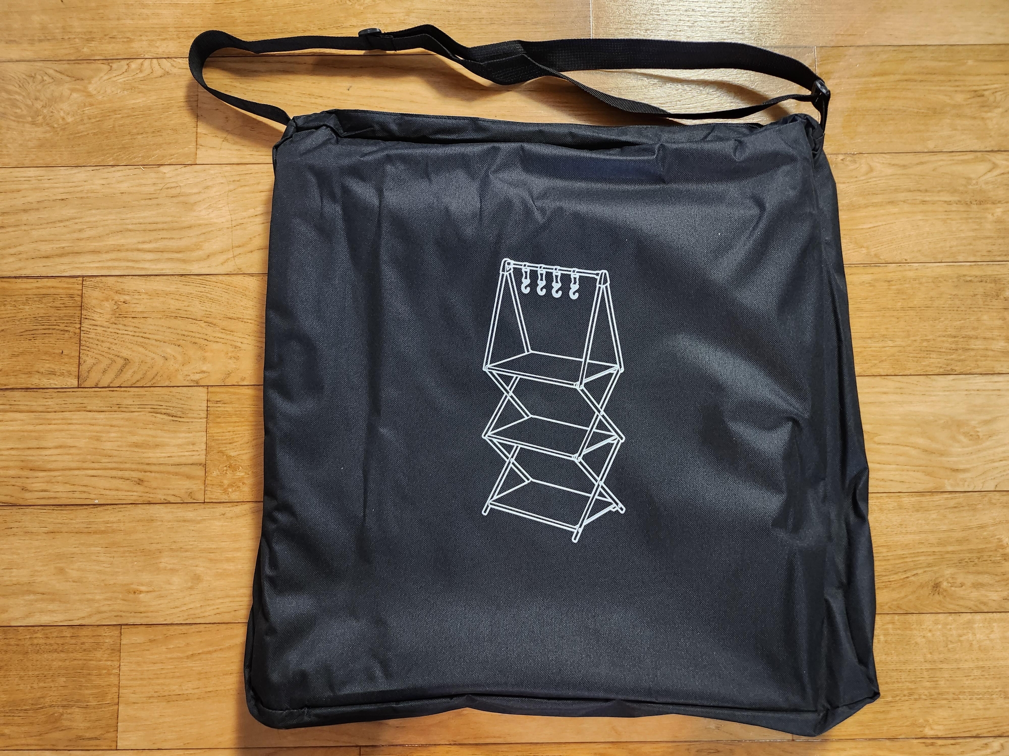 사진에 표현이 되는지 모르겠지만 쉘프 수납가방은 굉장히 얇은 재질로 되어 있습니다. 기본으로 수납가방이 제공되는 장점이 있지만 너무 얇아 금방 찢어지거나 구멍이 생길 거 같습니다. 기본구성이지만 두툼한 폼이 삽입되었다면 제품보호도 잘되고 여러 가지 측면에서 만족도가 높지 않았을까 생각됩니다.