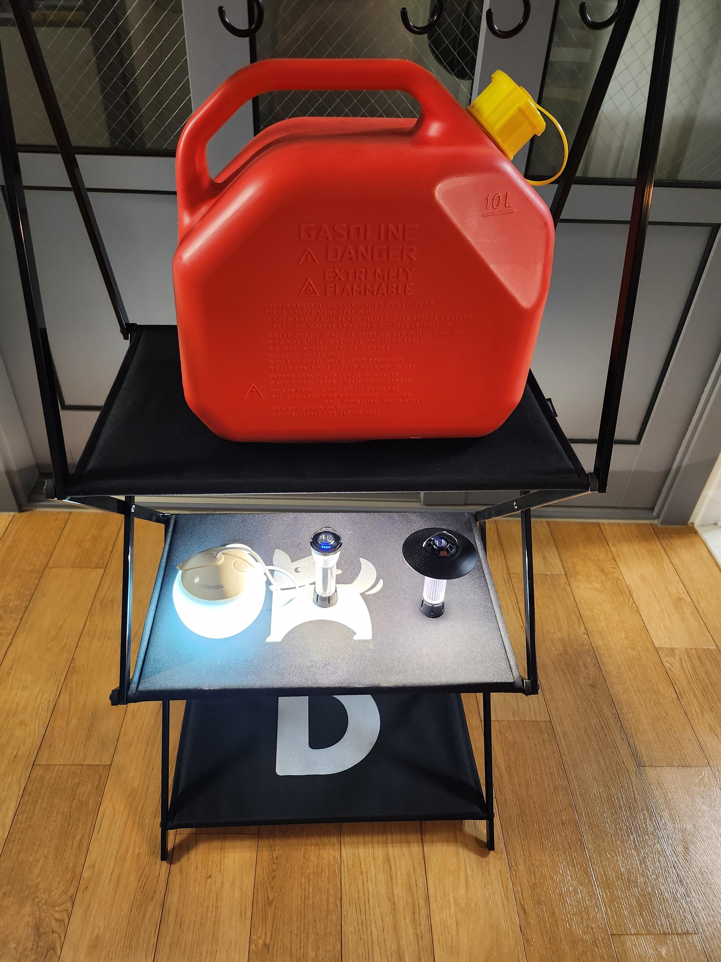 10리터용 등유통이고 등유가 가득 담긴 상태로 올려보았는데 안정적으로 거치가 잘됩니다.
