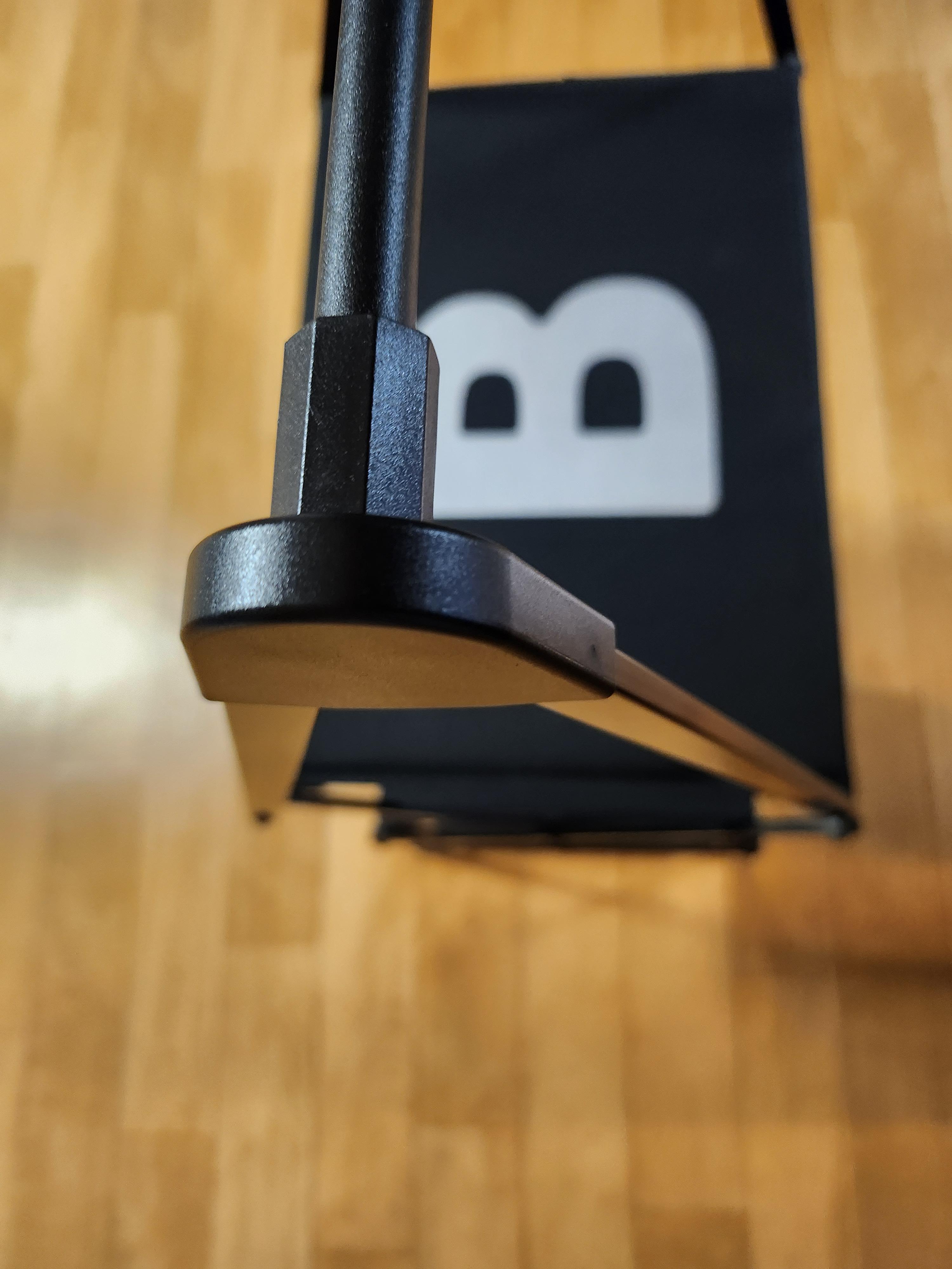 가방에서 제품을 꺼내 본모습입니다. 제품의 크기는 아주 작거나 크지도 않은 적당한 크기로 재질도 좋아 보이고 매끈한 마감도 깔끔합니다. 구성품은 본체와 상단봉이 있습니다.