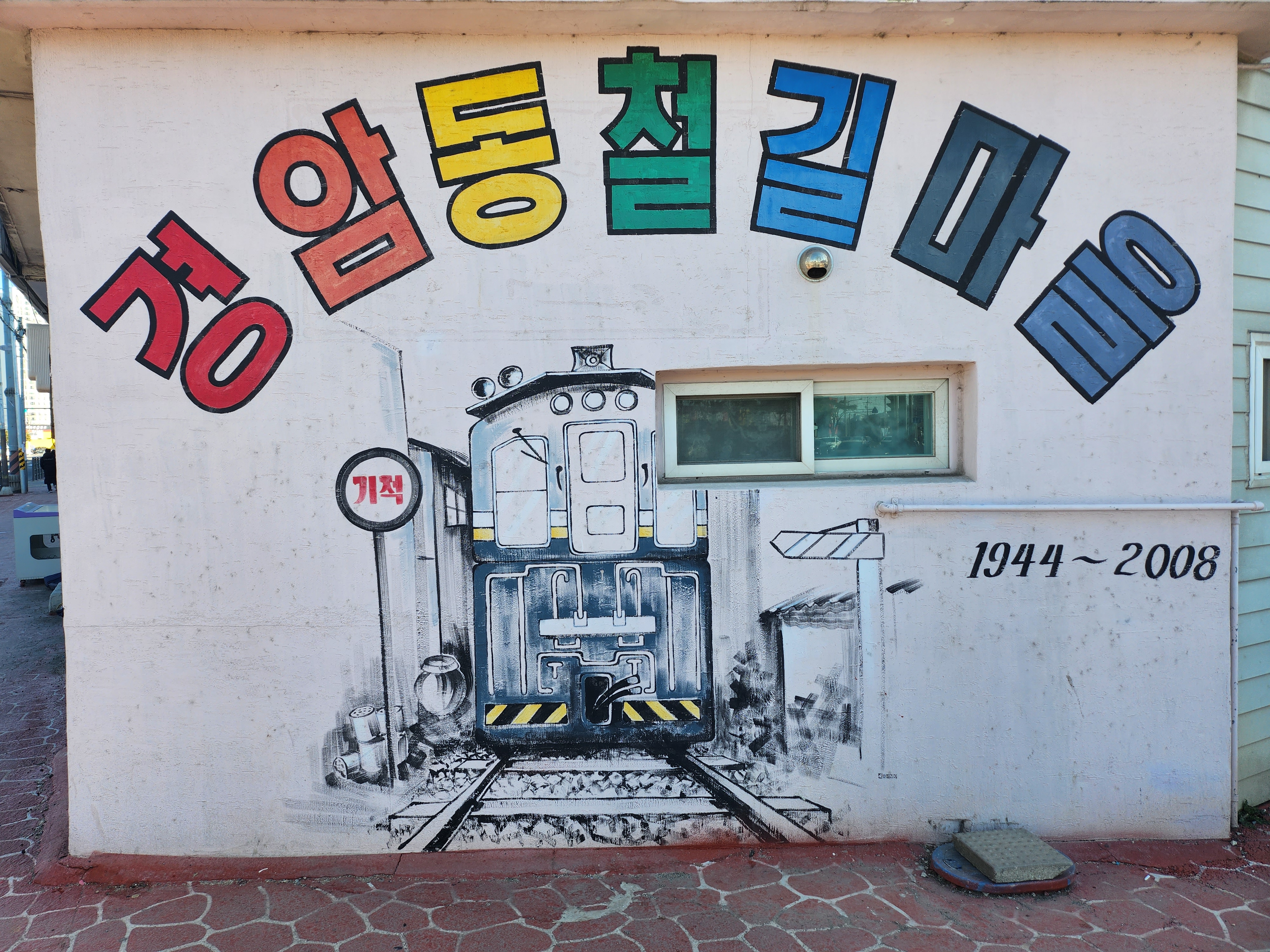 60년이 넘도록 운영되며 물품을 나르던 철로에서 서민들의 삶의 터전이었을 이곳에 그려져 있는 벽화를 보니 경암동철길마을의 역사를 엿볼 수 있네요.