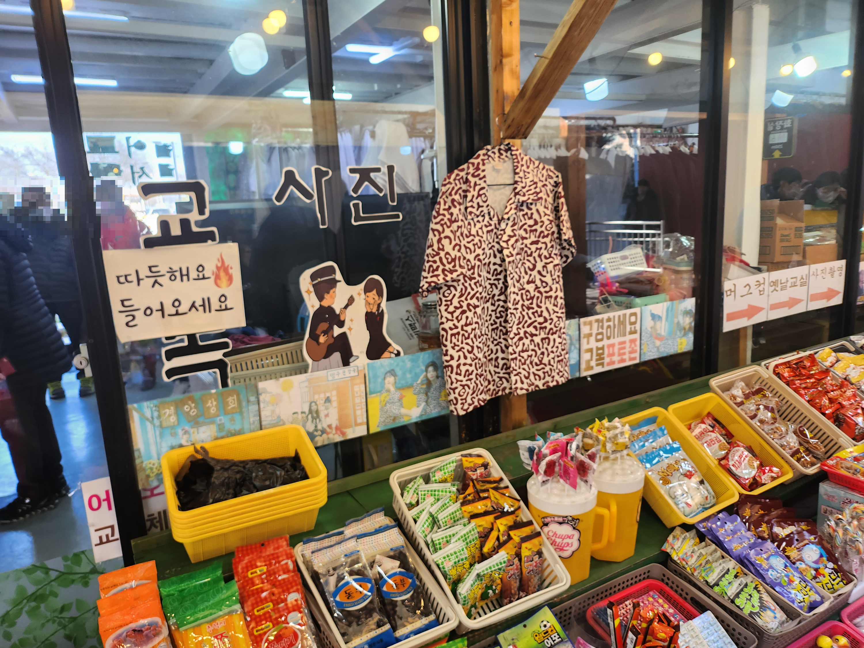 입구를 지나치면 옛 교복과 옛 추억이 떠오르는 간식(예전 불량식품)들이 많이 보입니다.