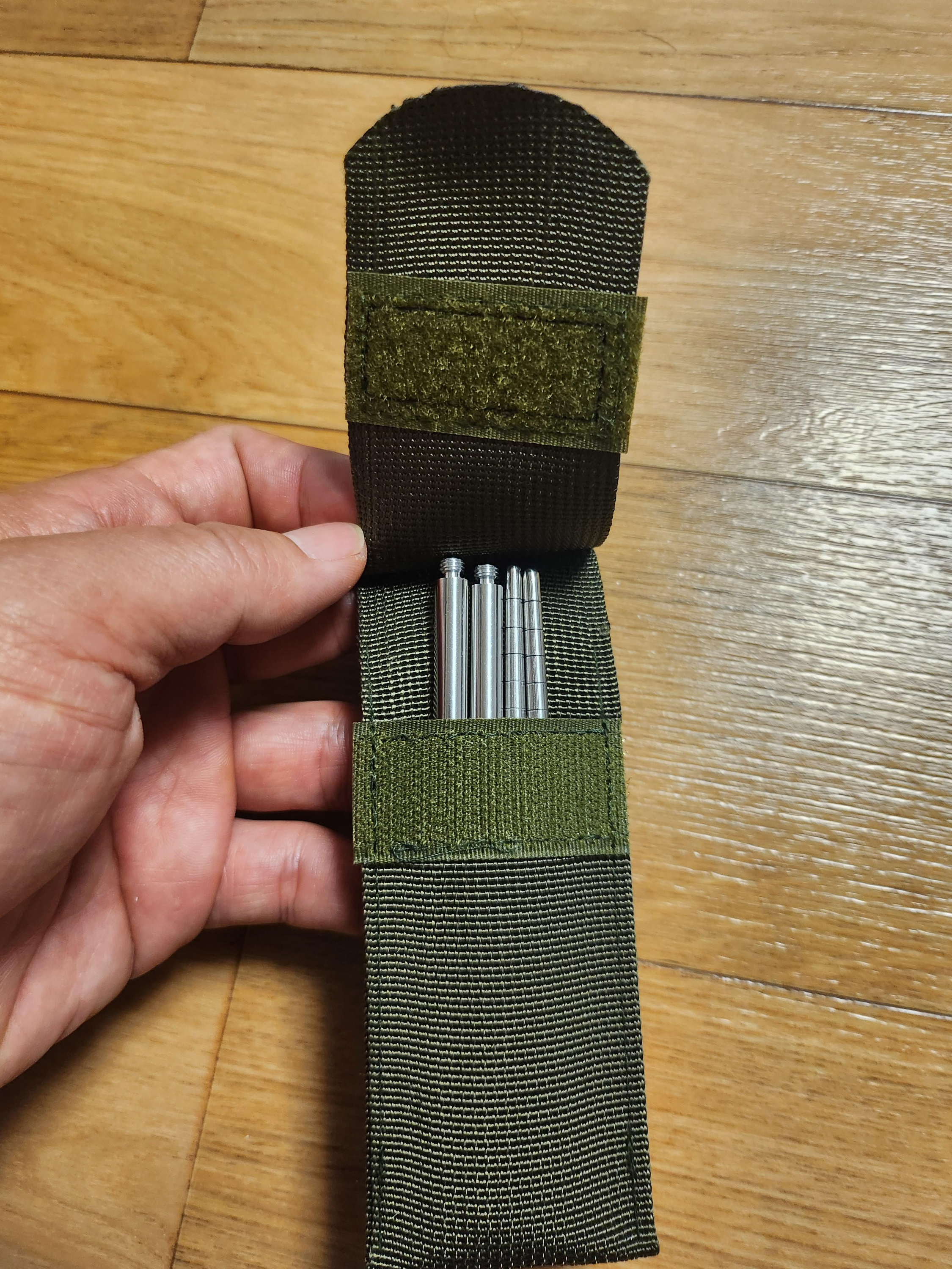 수납 모습인데 제품설명에 있듯이 젓가락뿐만 아니라 토치나 라이터 같은 물품도 수납할 수 있는 파우치입니다.