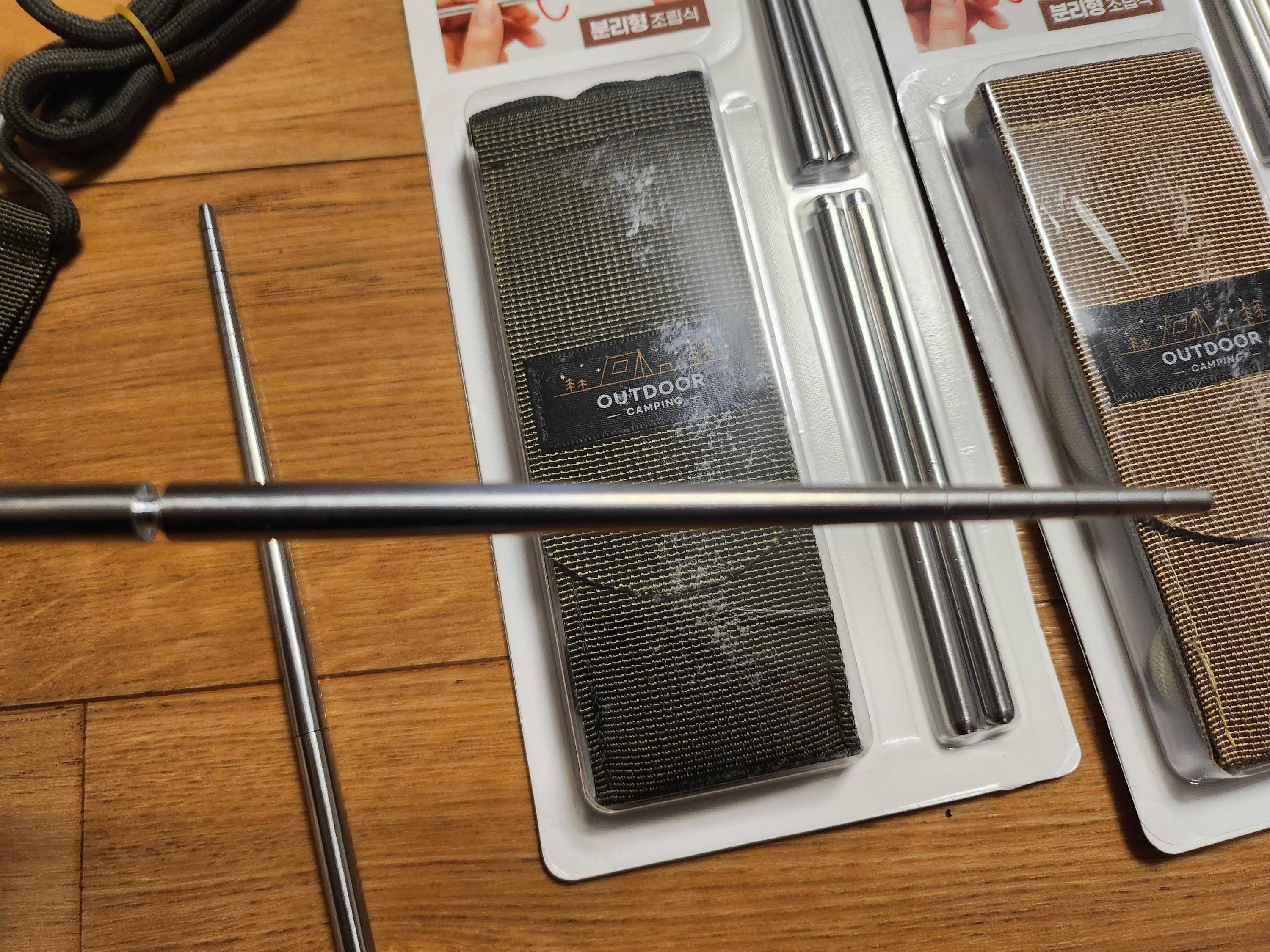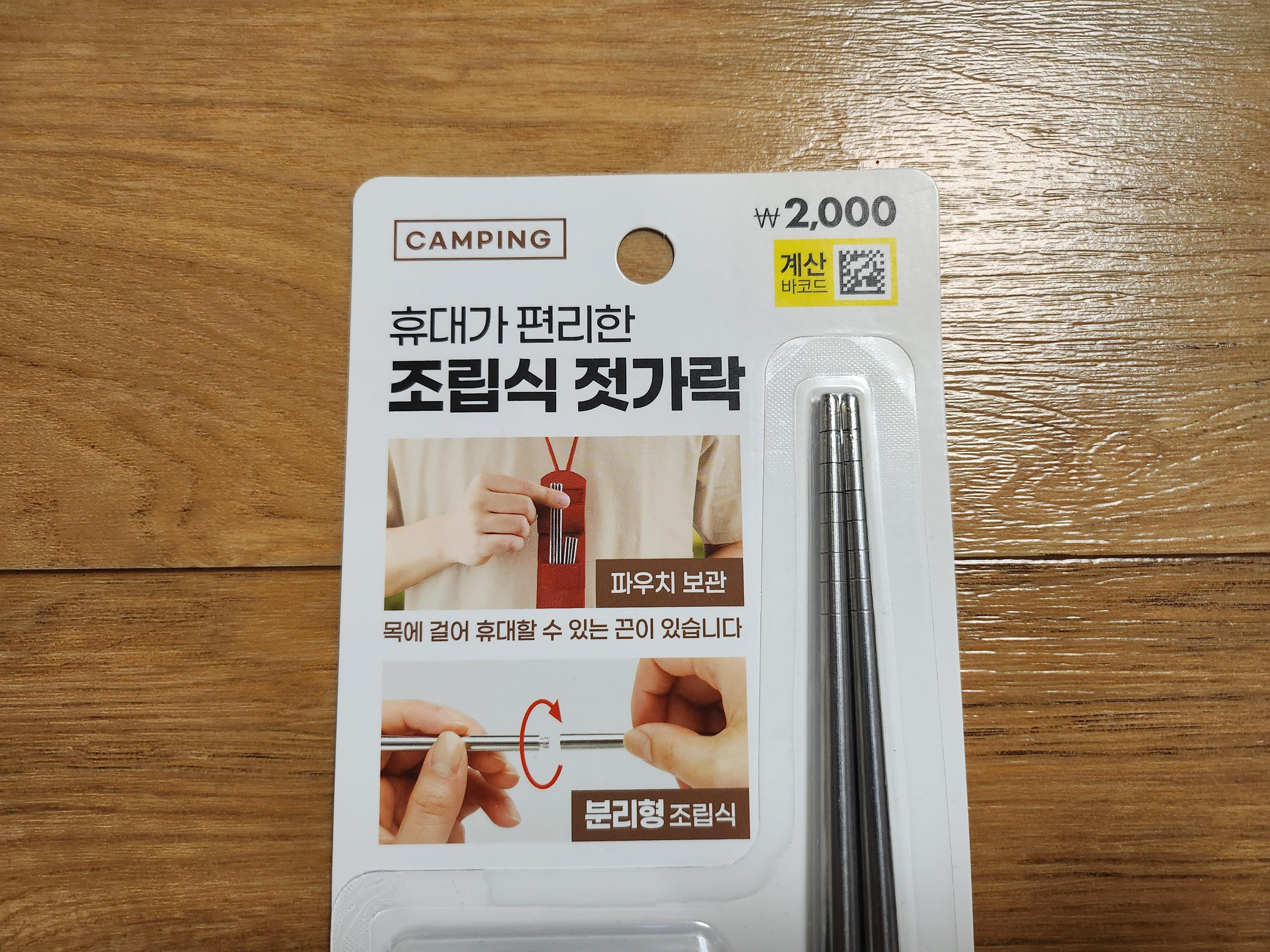 캠핑용품들은 히트 제품이 나오면 카피제품이 봇물 터지듯이 많이 나오는데 특허나 디자인에 대한 저작권이나 제재가 없는 건지 가끔 의문이 듭니다. 옳고 그름의 문제가 아니라 저 또한 좀 더 싸거나 가성비 좋은 제품을 구매하는 편이니 저의 입장에서만 보면 좋기는 하지만 제품을 개발하시는 분들은 분명 골치가 아프실 겁니다. 이번에 다이소에서 가져온 조립식 젓가락도 최초에는 스노우피크라는 일본 유명브랜드의 제품을 카피한 제품이 아닌가 생각이 듭니다. 물론 재질이나 마감에서 퀄리티 차이가 많이 나겠지만 근본적인 사용용도와 디자인 콘셉트는 동일한 형태입니다.
