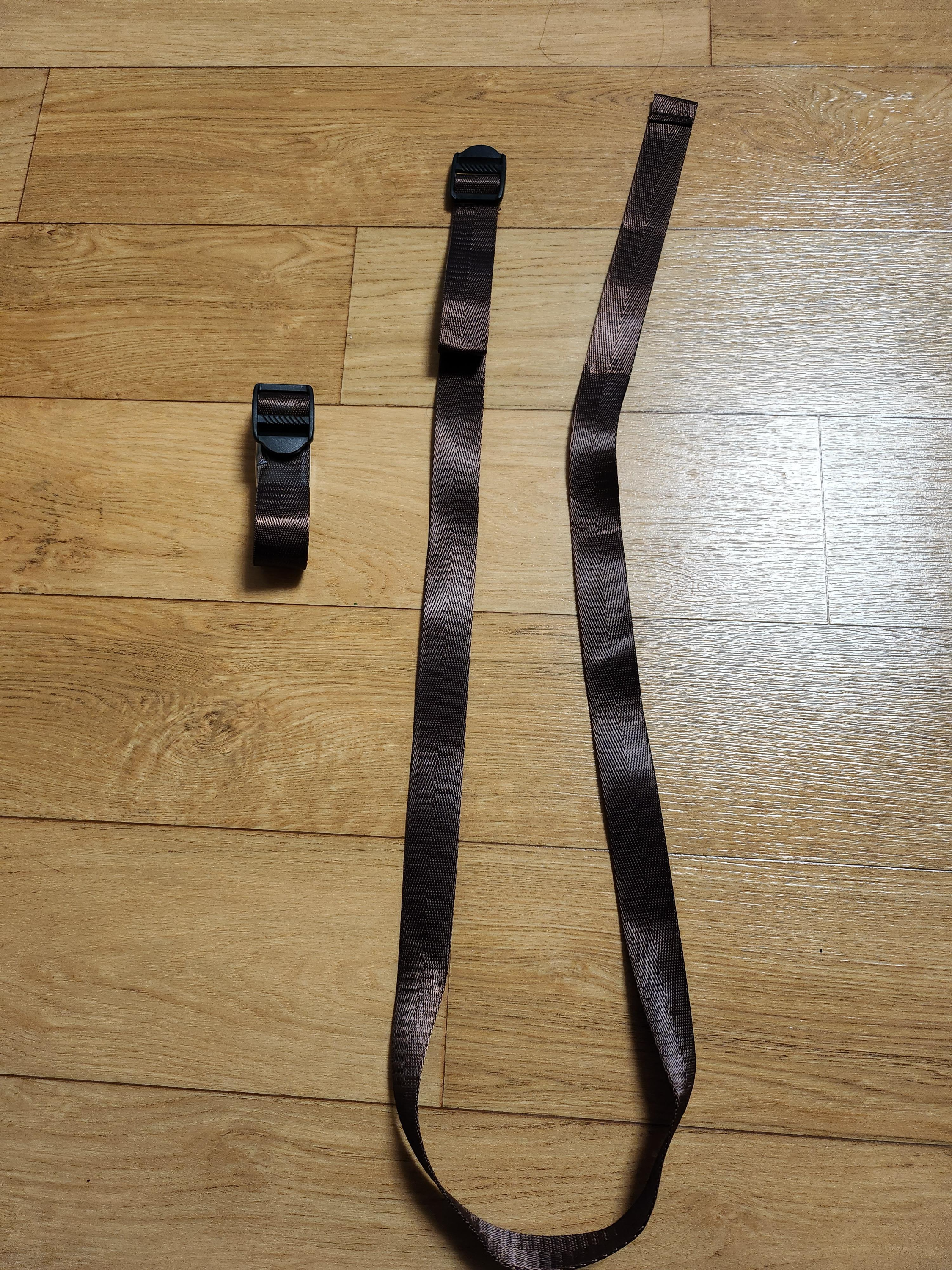 압축벨트는 텐트, 타프, 자충매트, 그라운드시트 등 다양한 물품에 사용할 수 있는 제품이니 활용성이 매우 좋은 제품입니다. 이 제품은 출시된 지 꽤 오래된 제품인데 1.2m 정도의 길이에 2개가 들어가 있는 구성입니다.