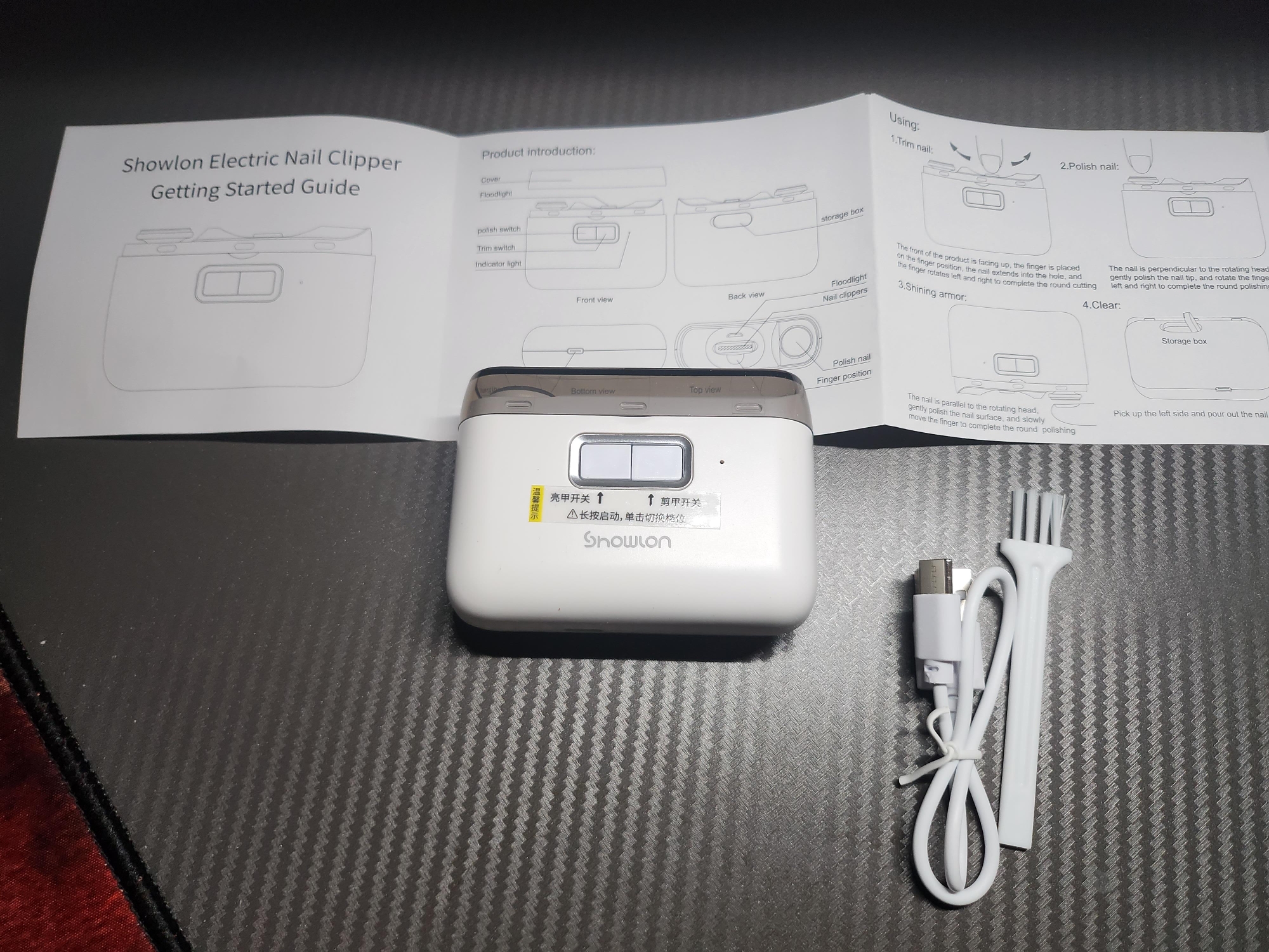 제품의 특징으로는 손톱을 깍을 수도 있고 광택도 낼 수 있는 제품이며, 저소음동작과 어두운 곳에서 사용할 수 있습니다.