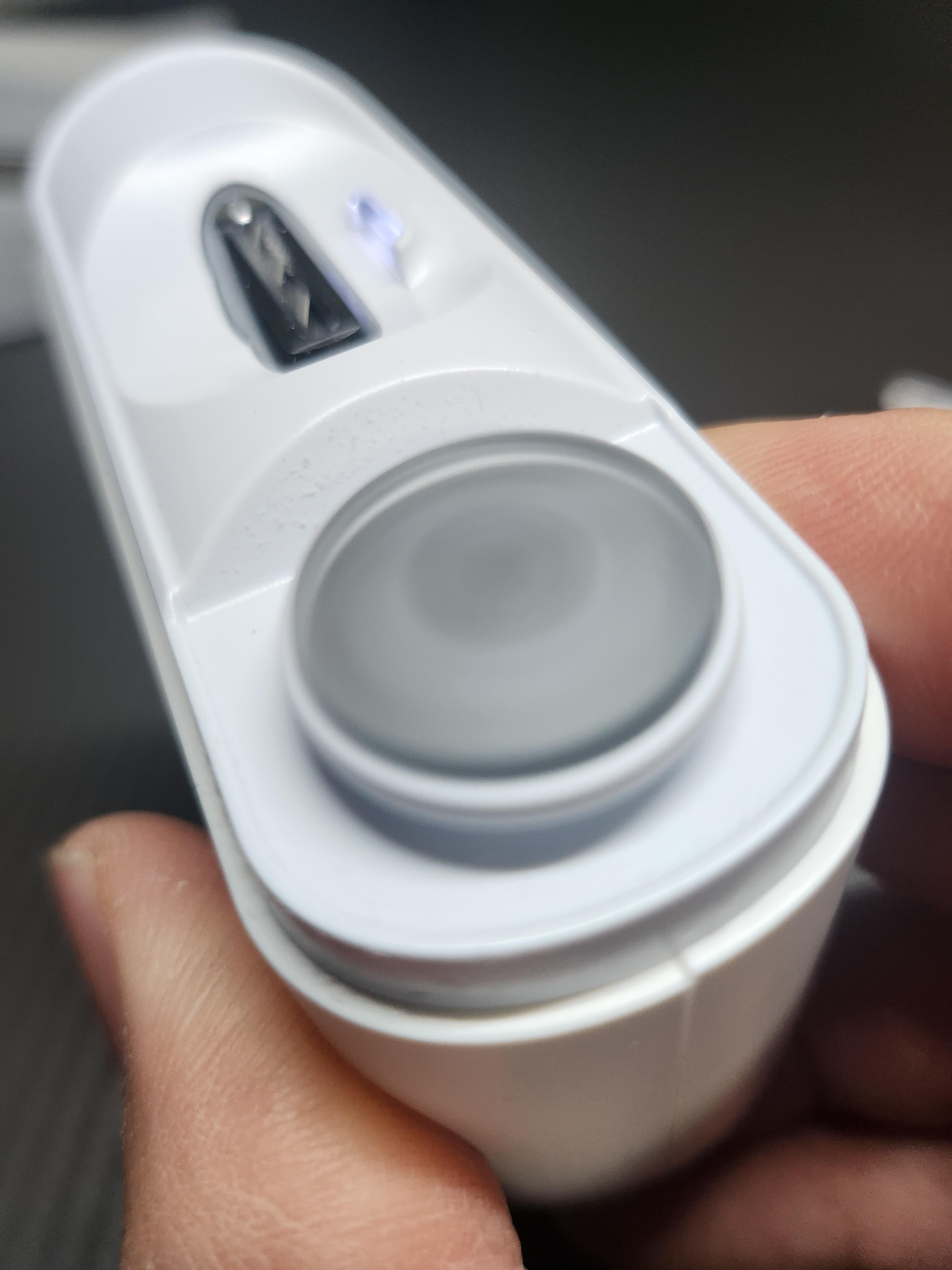 케이블을 연결하여 충전을 하면 버튼 오른쪽에 하얀색 불빛이 깜빡이면서 충전이 진행되고 충전이 완료되면 불빛이 꺼집니다. 충전을 완료하게 되면 약 40번 정도 사용이 가능하다고 합니다.
