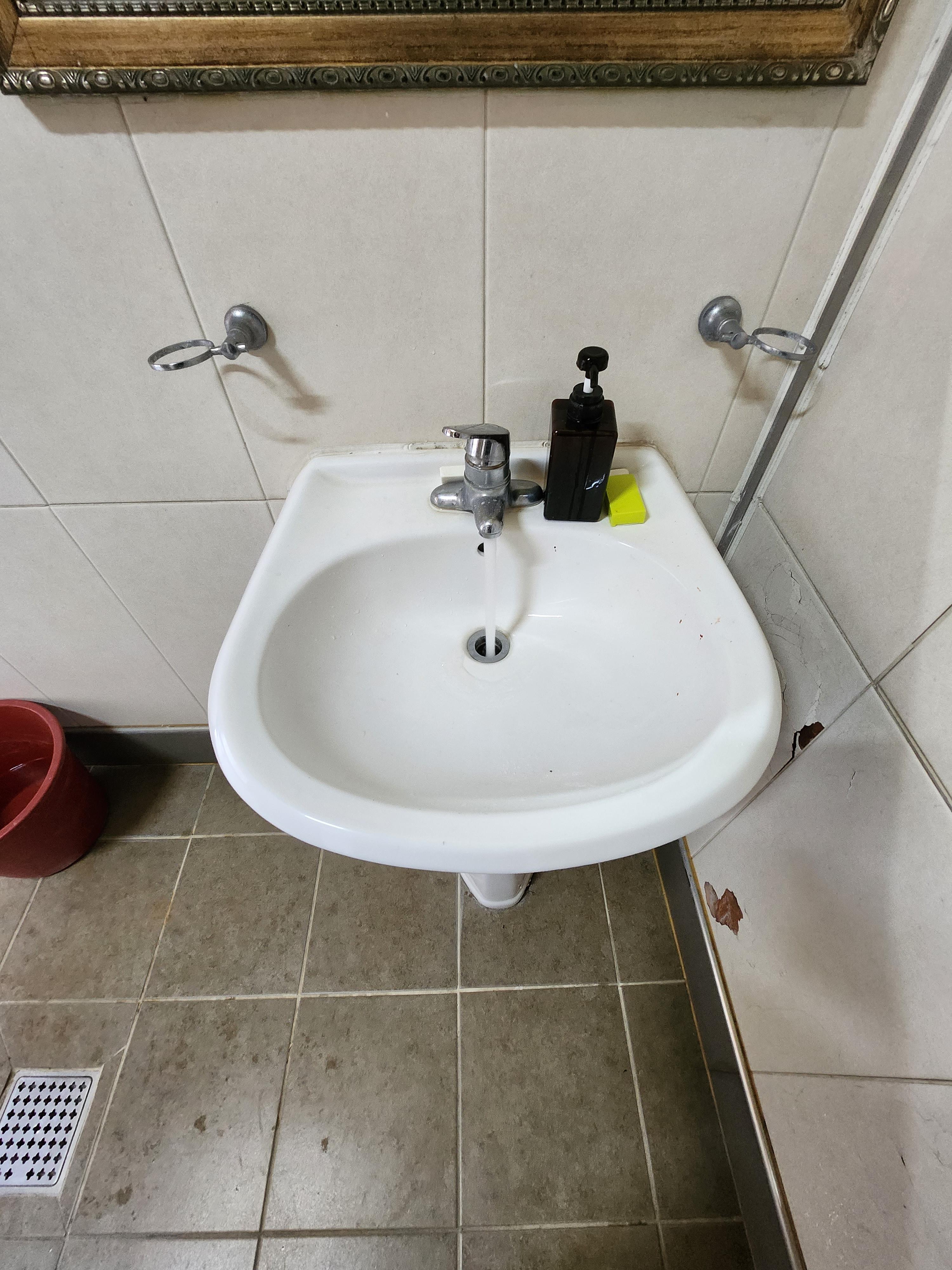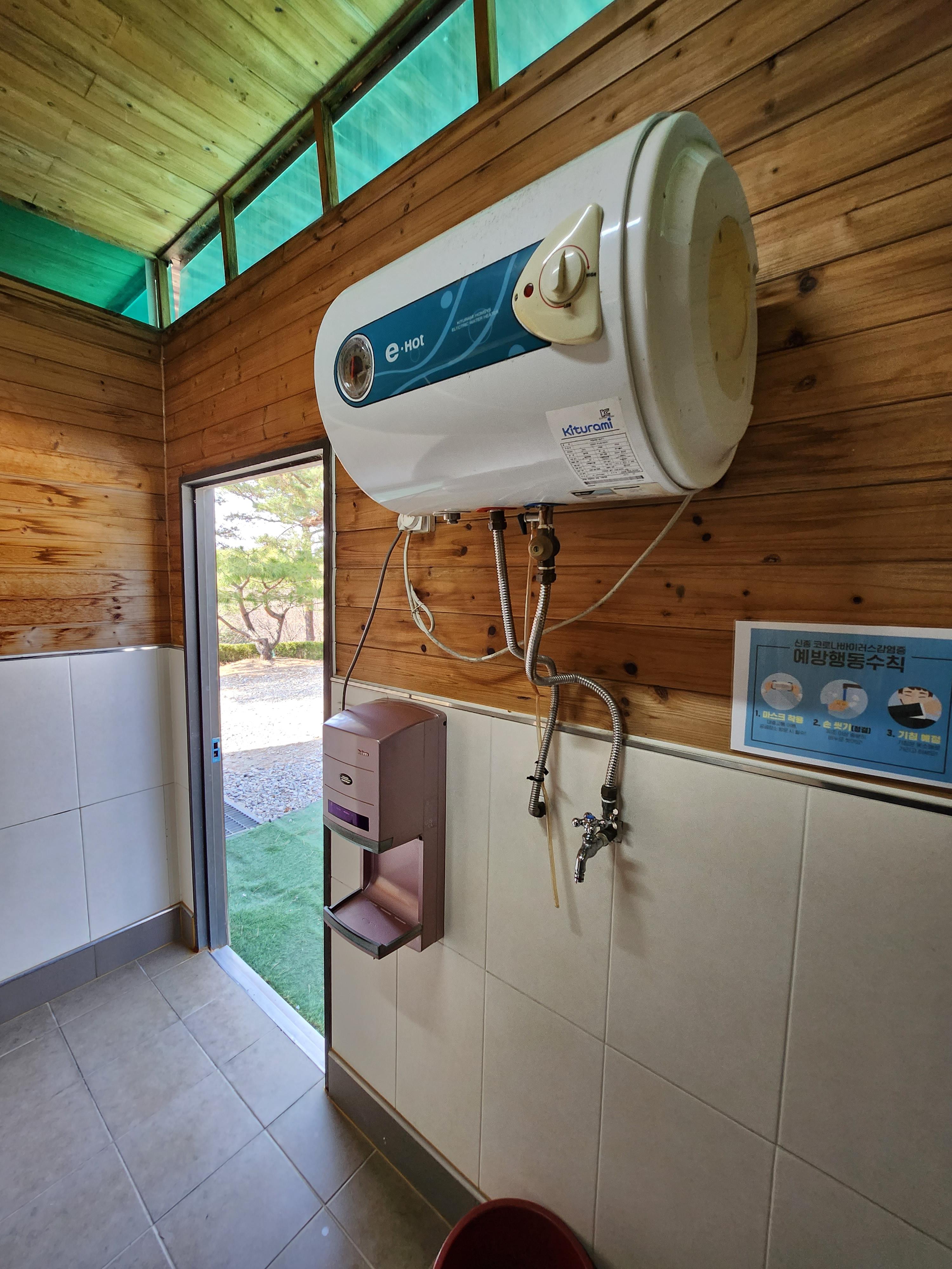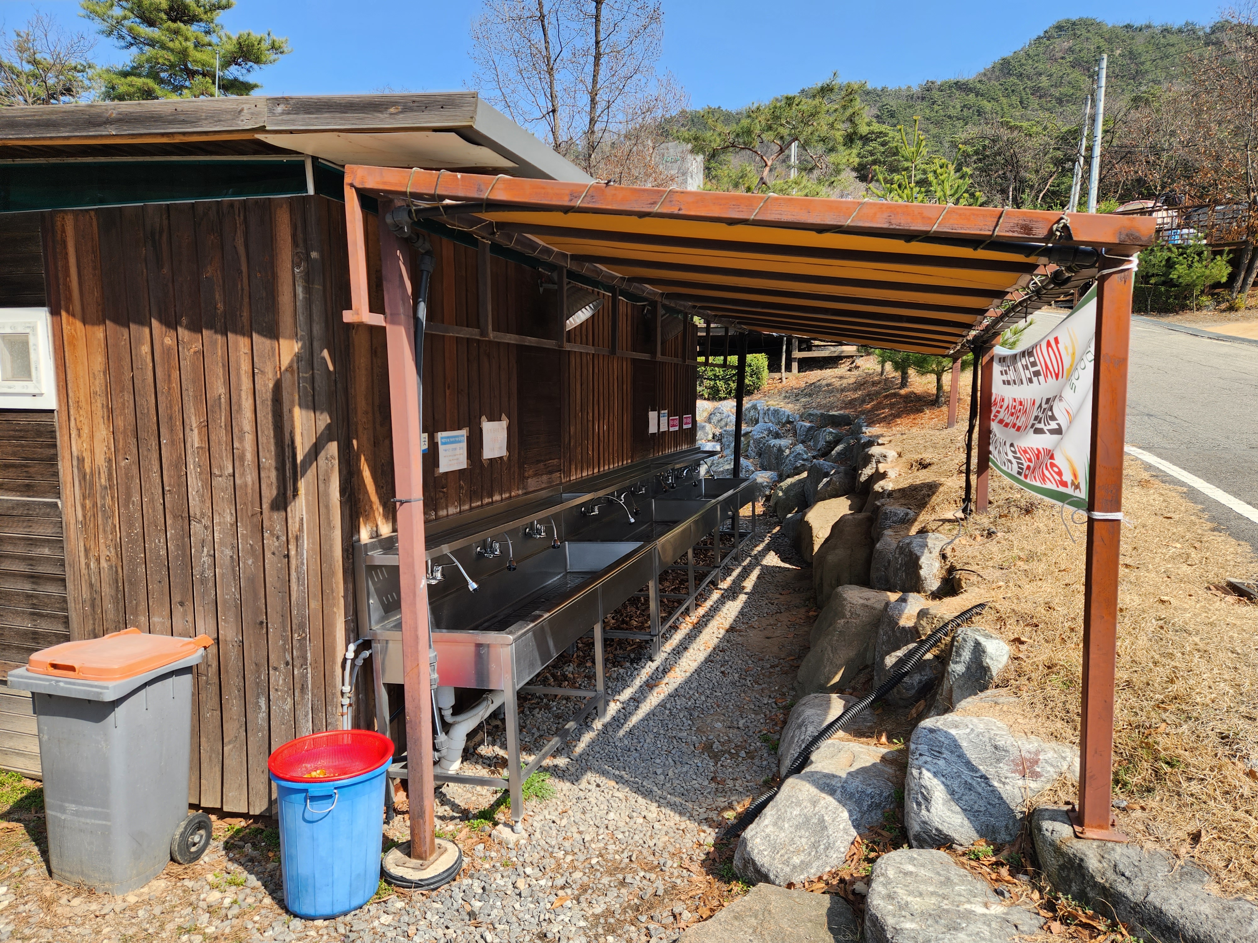화장실 뒤편으로는 개수대가 마련되어 있고 온수도 잘 나옵니다. 음식물 쓰레기통도 있고 시설도 깔끔하게 유지되고 있습니다.