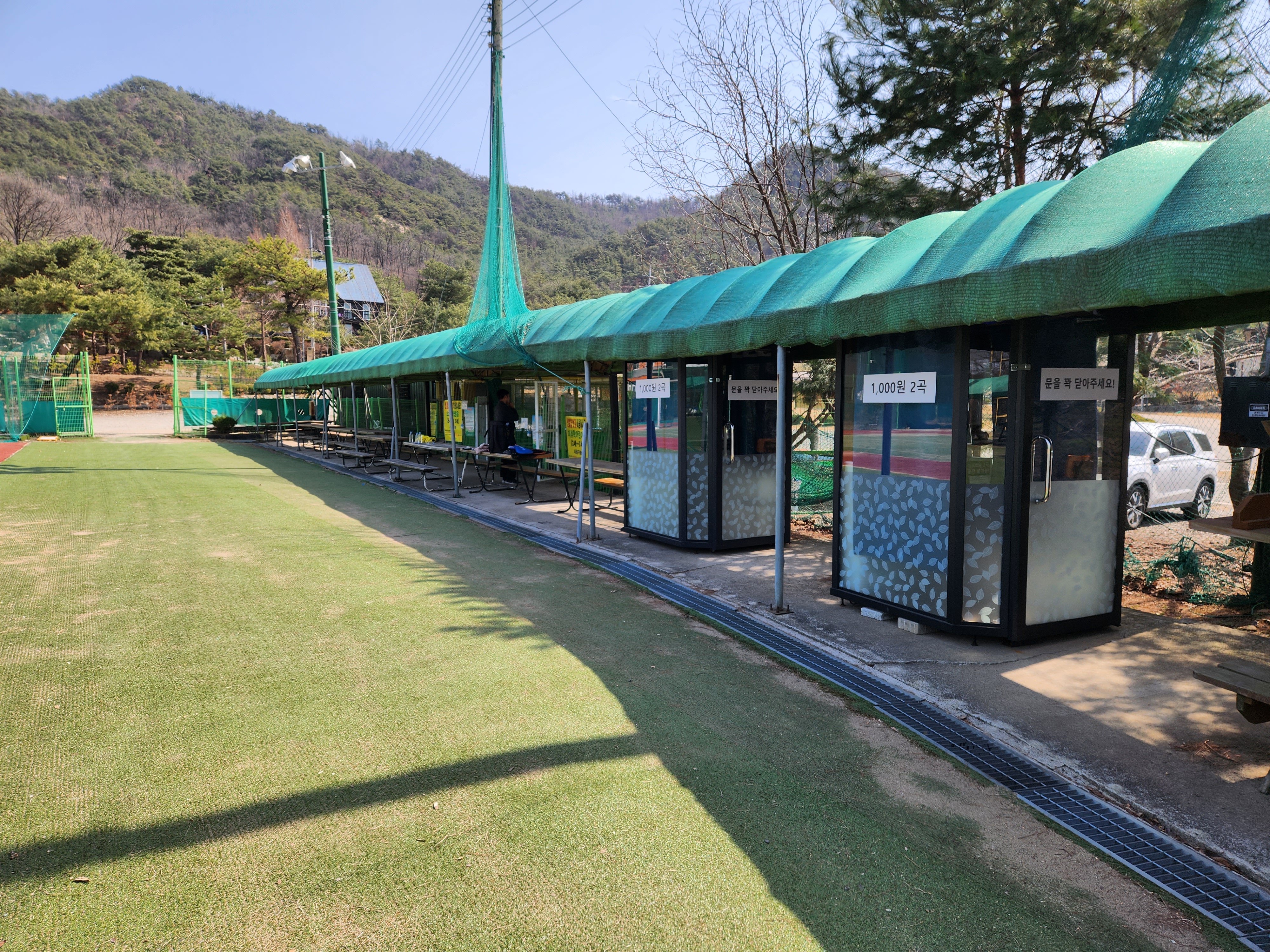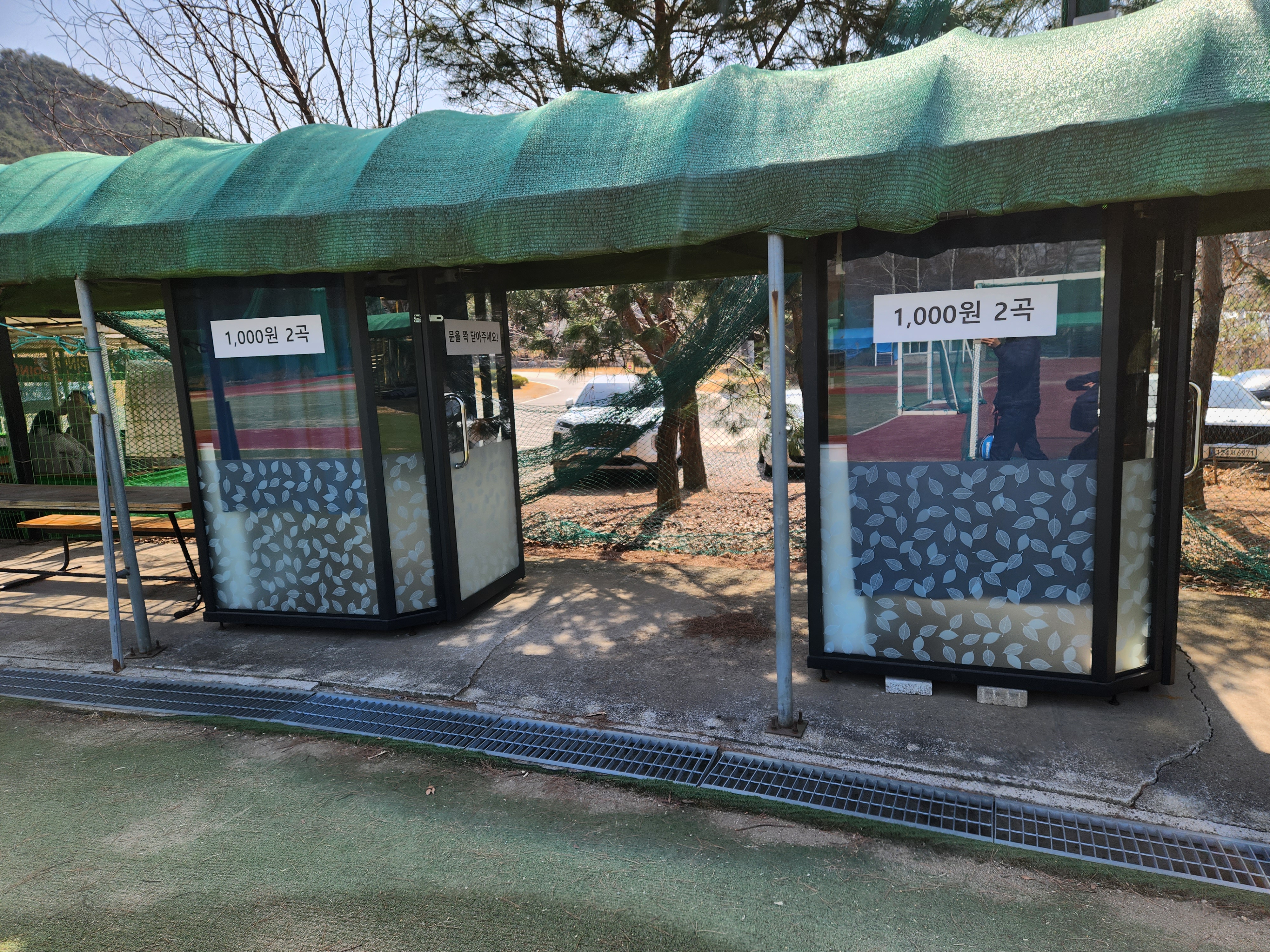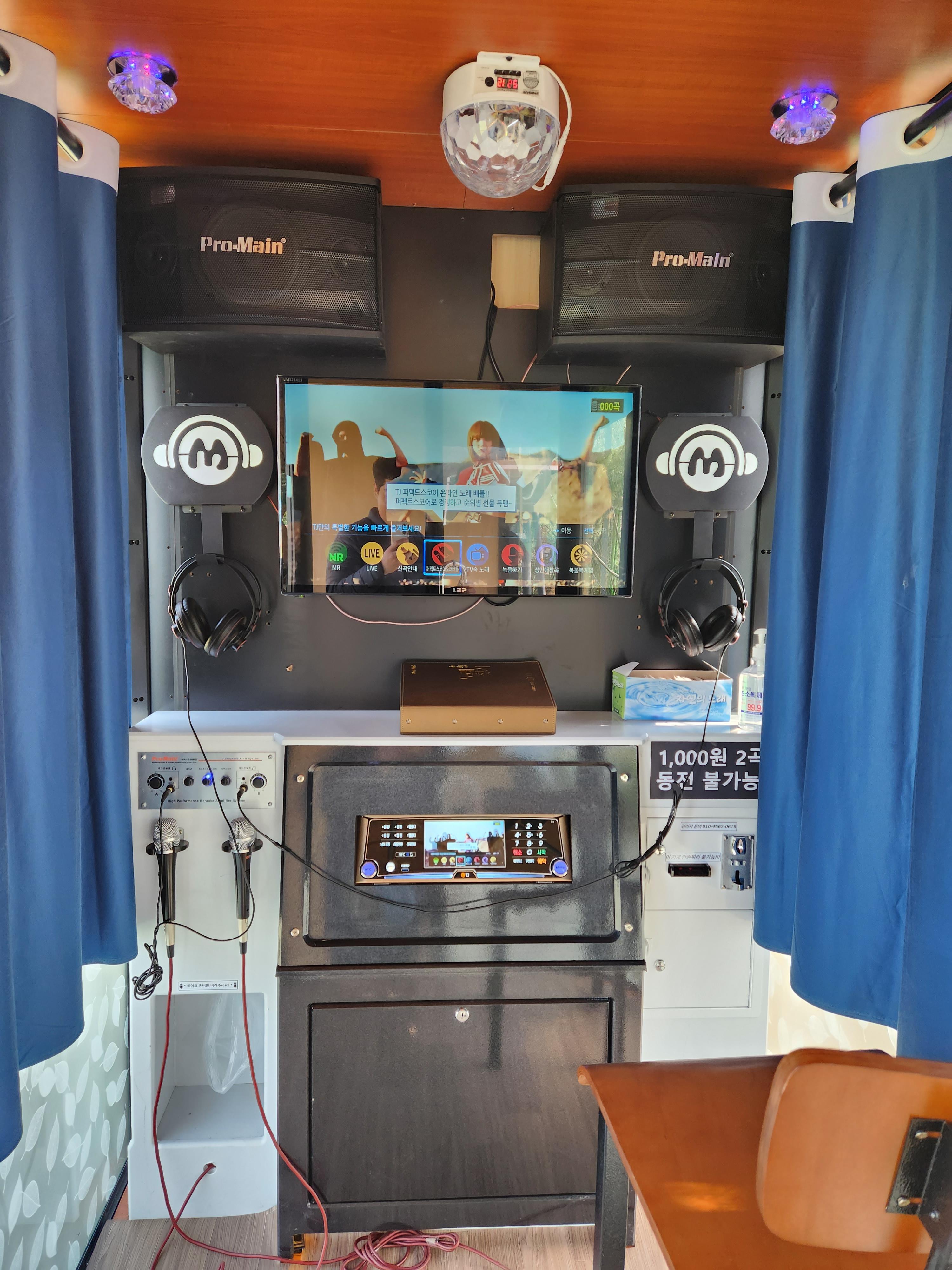 야외 체육시설 한쪽에는 코인노래방 시설도 2개 마련되어 있고 1000원에 2곡 부를 수 있네요. 안쪽 시설도 살펴보니 굉장히 깔끔하고 잘해놨습니다. 조그만 노래방 시설에 스피커도 큼직한 게 달려있어 재미있게 부를 수 있겠네요.