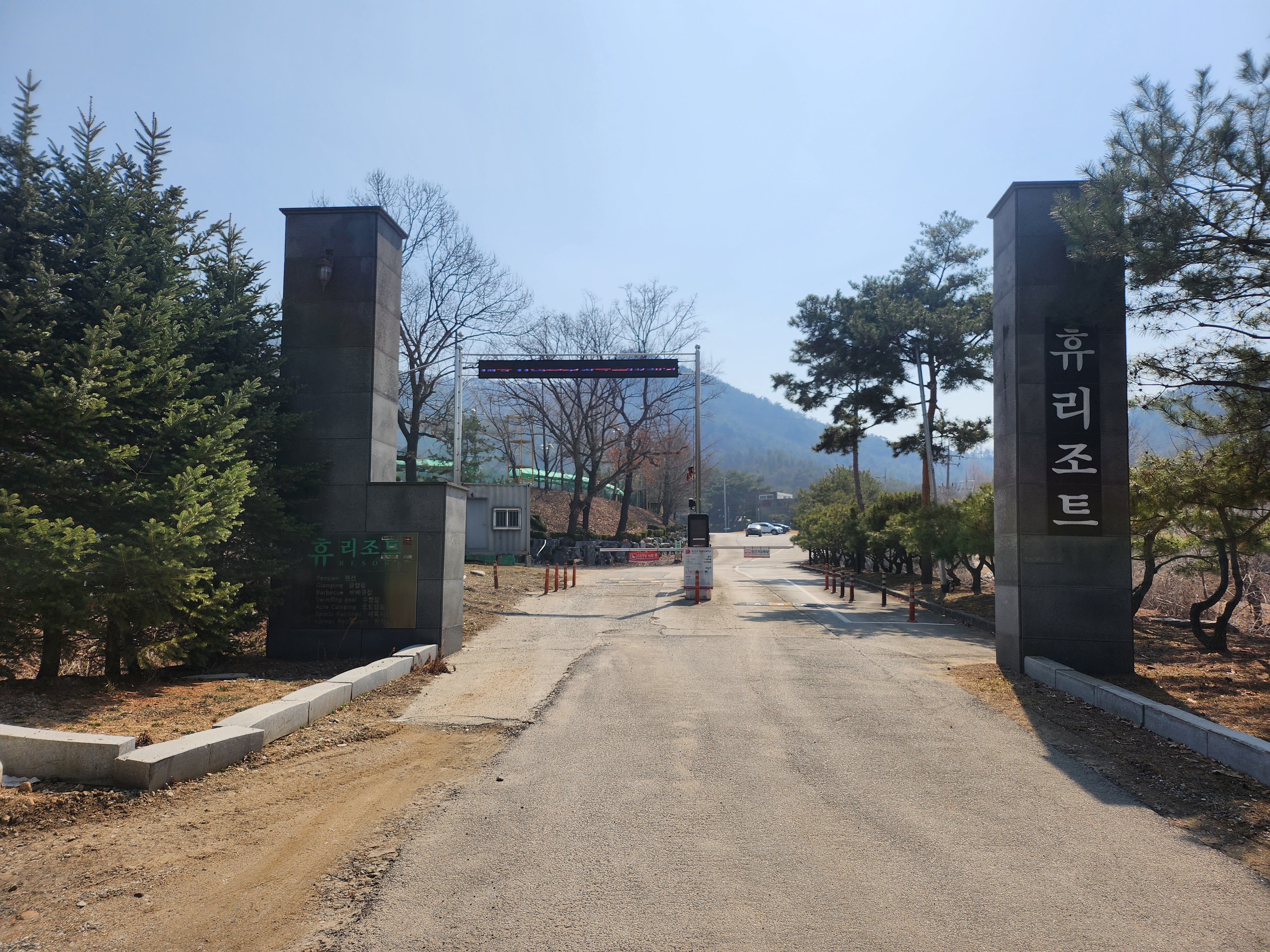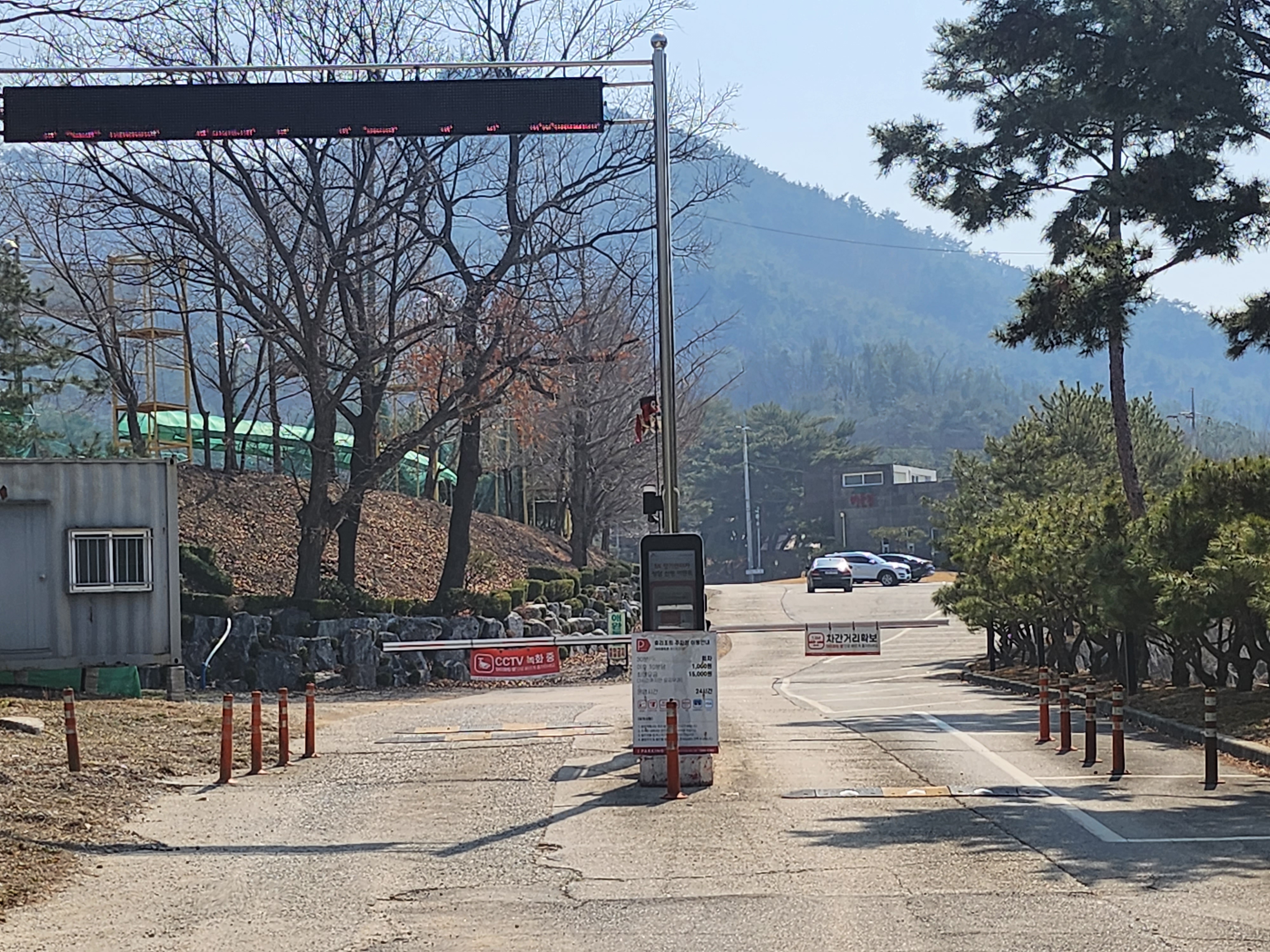 휴리조트는 양주에 위치해 있고 내비게이션을 따라 입구에 도착하면 차량 차단기가 설치되어 있습니다.