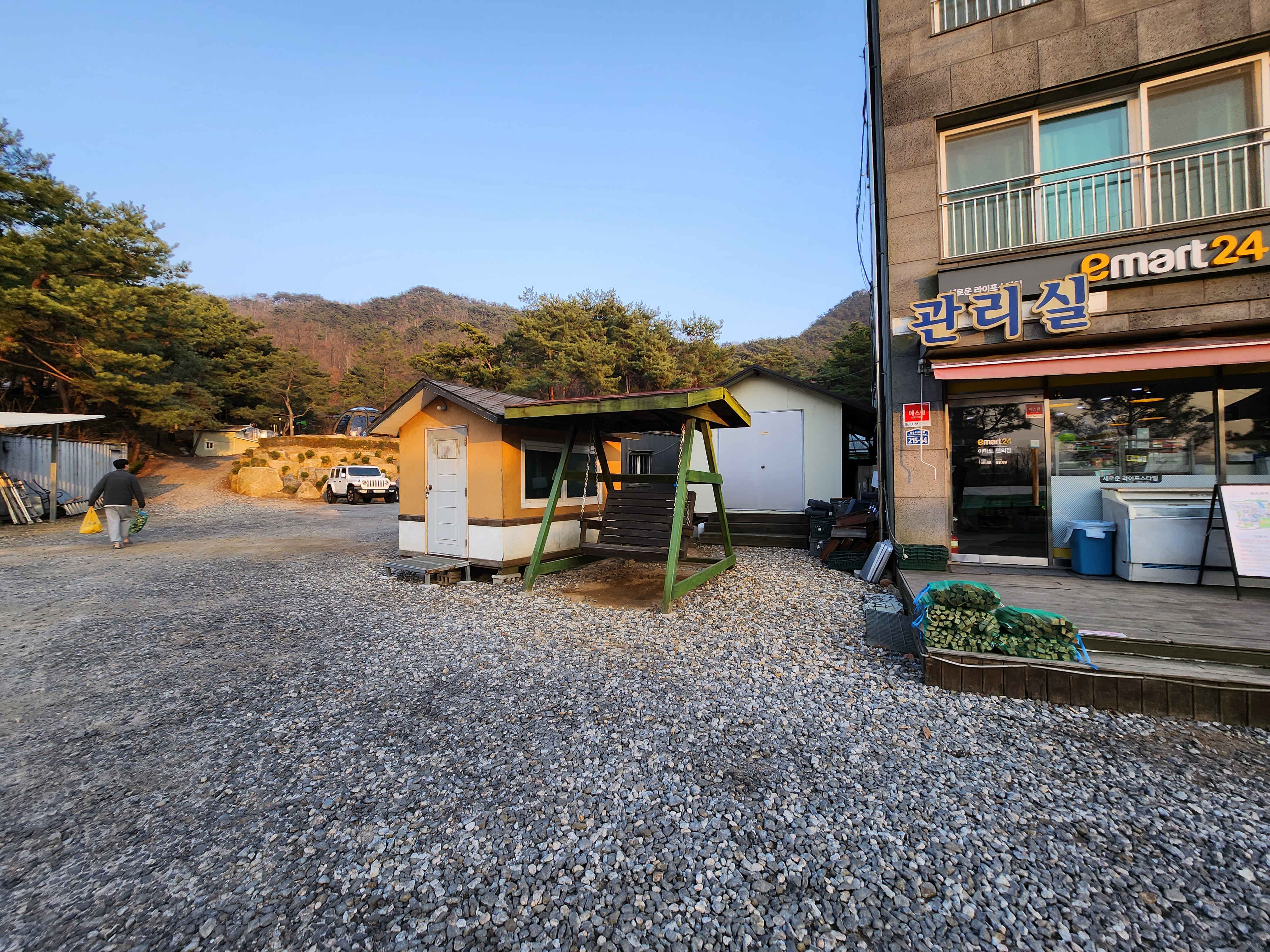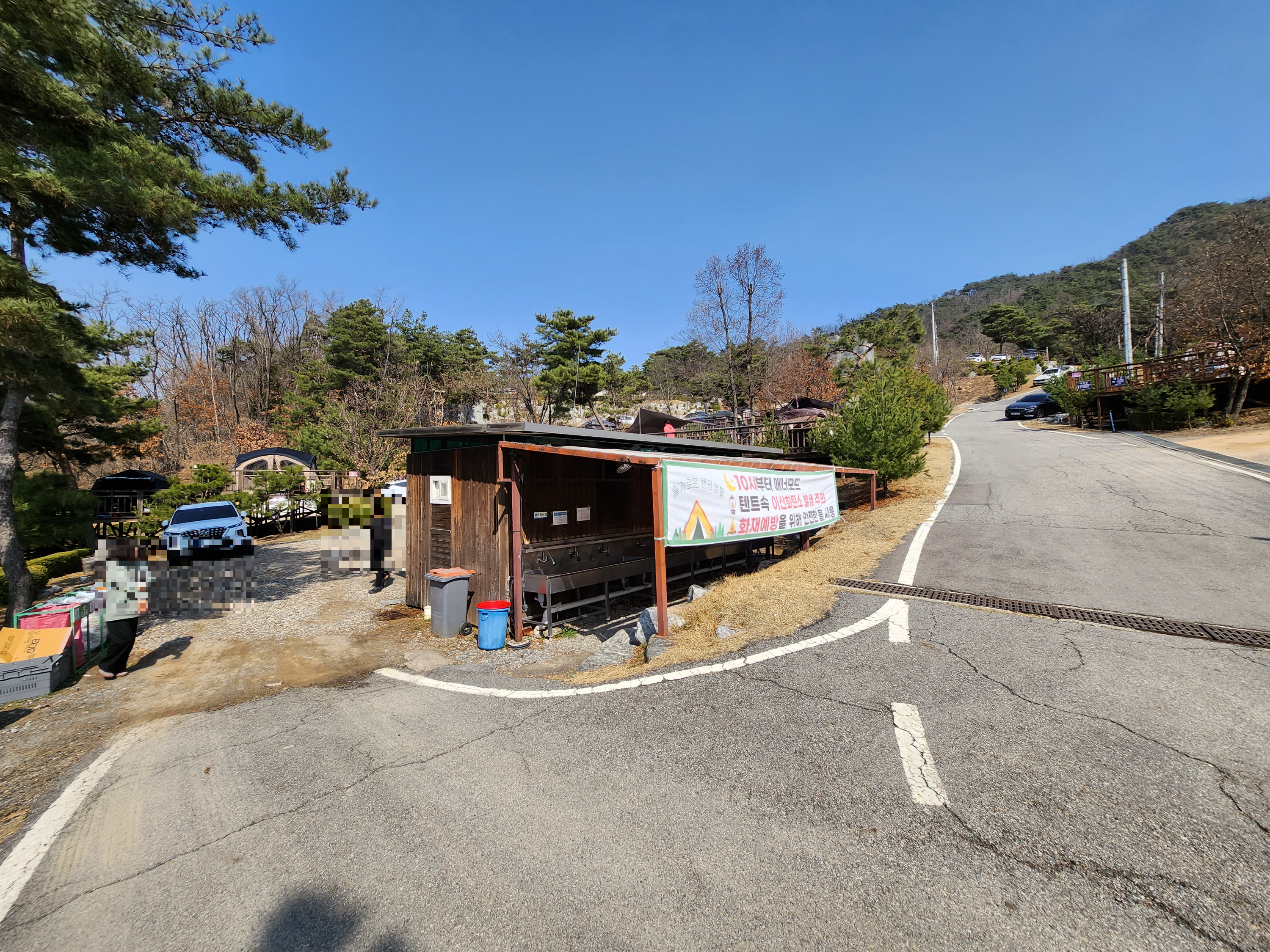 좀 더 올라가면 관리실이 나옵니다. 안으로 들어가서 체크인하시면 됩니다. 캠핑장은 1시부터 입실이 가능하며, 저희는 12시 정도 입장했는데 조금 더 일찍 입실할 경우 추가금이 발생한다고 안내받았습니다.
